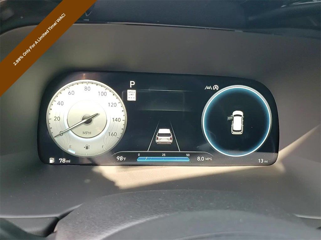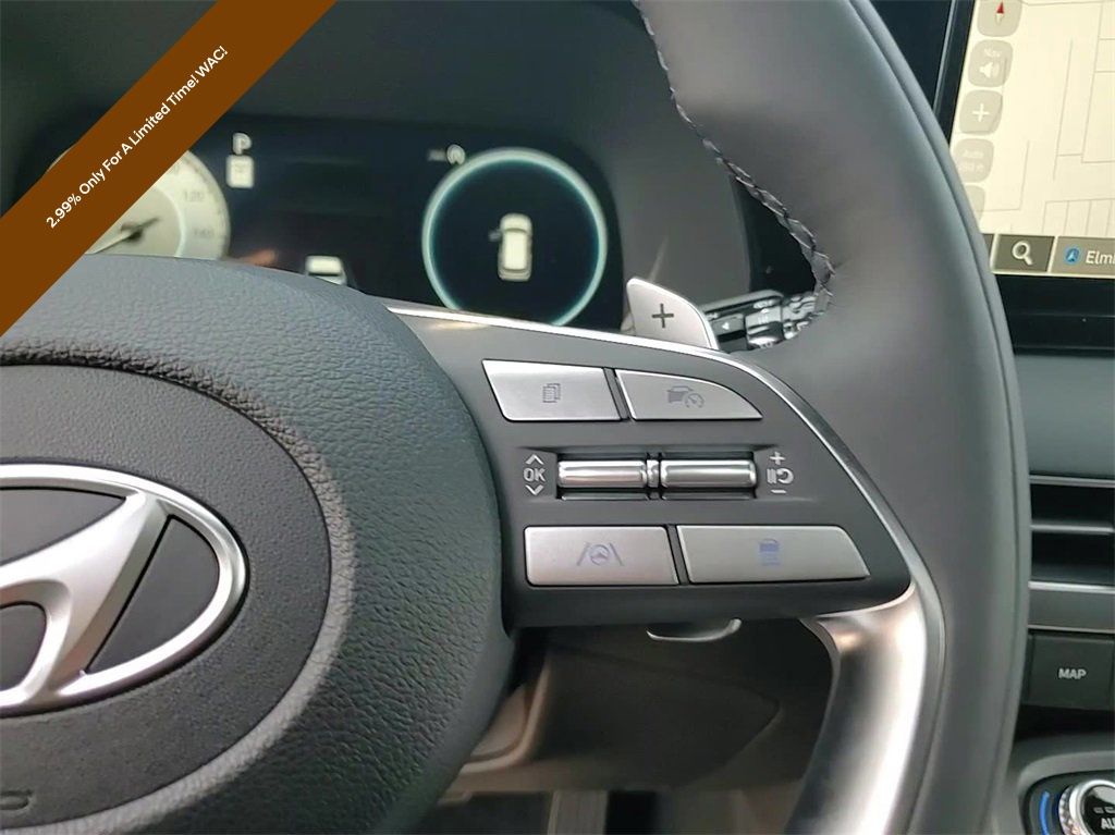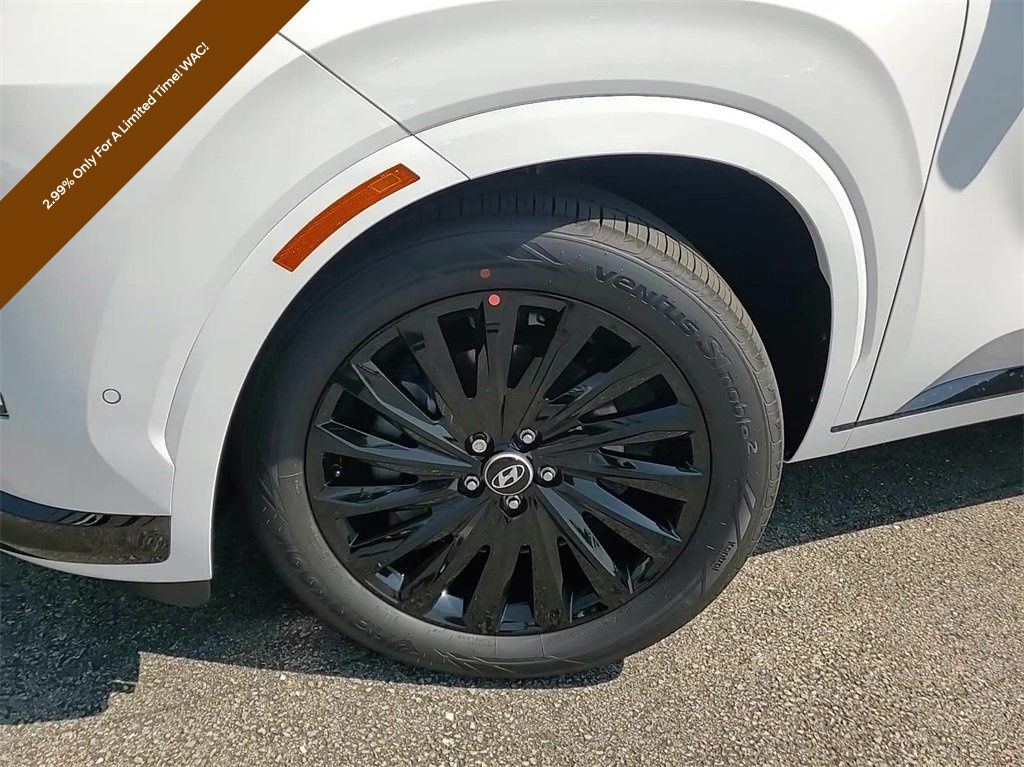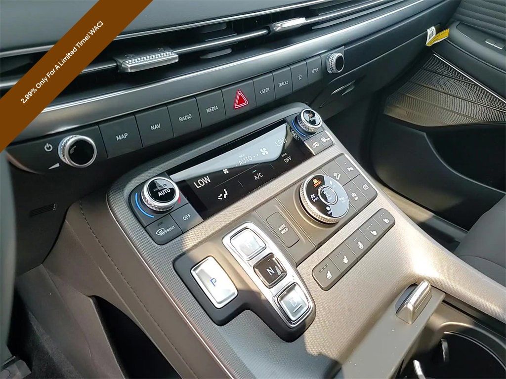 Option Group 01, Hyundai Certified Used Vehicles Certified, 12 Speakers, 3rd row seats: split-bench, 4-Wheel Disc Brakes, ABS brakes, Air Conditioning, All-Season Fitted Liners, Alloy wheels, AM/FM radio: SiriusXM, Apple CarPlay & Android Auto, Auto High-beam Headlights, Auto-dimming door mirrors, Auto-dimming Rear-View mirror, Auto-leveling suspension, Automatic temperature control, Brake assist, Bumpers: body-color, Cargo Net, Cargo Tray, Carpeted Floor Mats, Compass, Delay-off headlights, Driver door bin, Driver vanity mirror, Dual front impact airbags, Dual front side impact airbags, Electronic Stability Control, Emergency communication system, Exterior Parking Camera Rear, First Aid Kit, Four wheel independent suspension, Front anti-roll bar, Front Bucket Seats, Front Center Armrest, Front dual zone A/C, Front reading lights, Fully automatic headlights, Garage door transmitter: HomeLink, harman/kardon® Speakers, Heads-Up Display, Heated & Ventilated Front Bucket Seats, Heated door mirrors, Heated front seats, Heated rear seats, Heated steering wheel, Illuminated entry, Knee airbag, Leather steering wheel, Low tire pressure warning, Memory seat, Microfiber Suede Seat Trim, Navigation System, Occupant sensing airbag, Outside temperature display, Overhead airbag, Overhead console, Panic alarm, Passenger door bin, Passenger vanity mirror, Power door mirrors, Power driver seat, Power Liftgate, Power moonroof, Power passenger seat, Power steering, Power windows, Radio data system, Radio: AM/FM/MP3 Premium Audio System, Rain sensing wipers, Rear air conditioning, Rear anti-roll bar, Rear audio controls, Rear reading lights, Rear side impact airbag, Rear window defroster, Rear window wiper, Reclining 3rd row seat, Remote keyless entry, Roadside Assistance Kit, Roof rack, Security system, Speed control, Speed-sensing steering, Split folding rear seat, Spoiler, Steering wheel mounted audio controls, Tachometer, Telescoping steering wheel, Tilt steering wheel, Traction control, Trip computer, Turn signal indicator mirrors, Variably intermittent wipers, Ventilated front seats, Ventilated rear seats, Wheel Locks, and Wheels: 20" x 7.5J Black Liquid Paint Alloy.