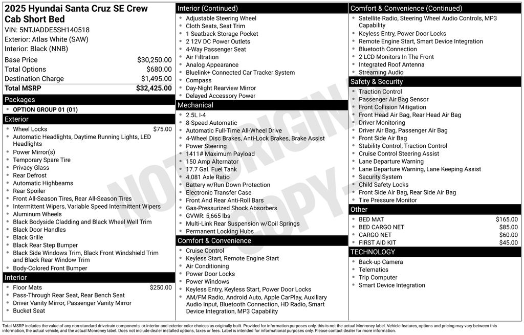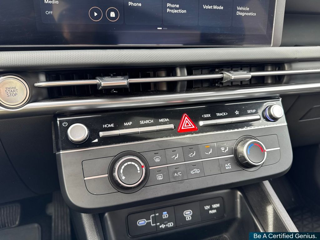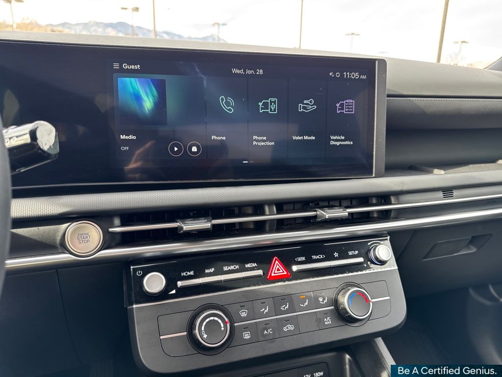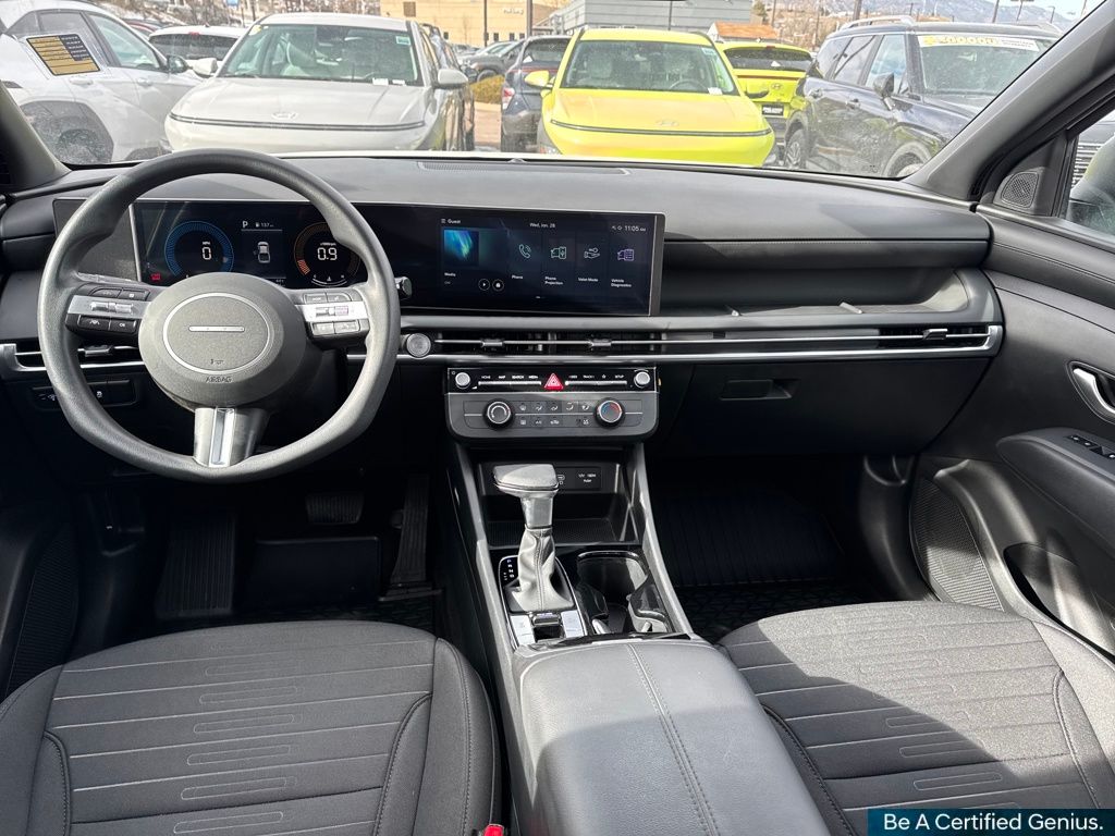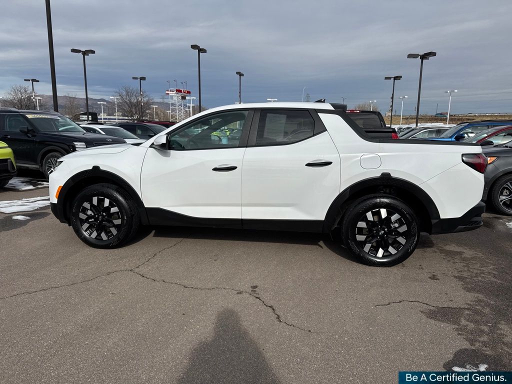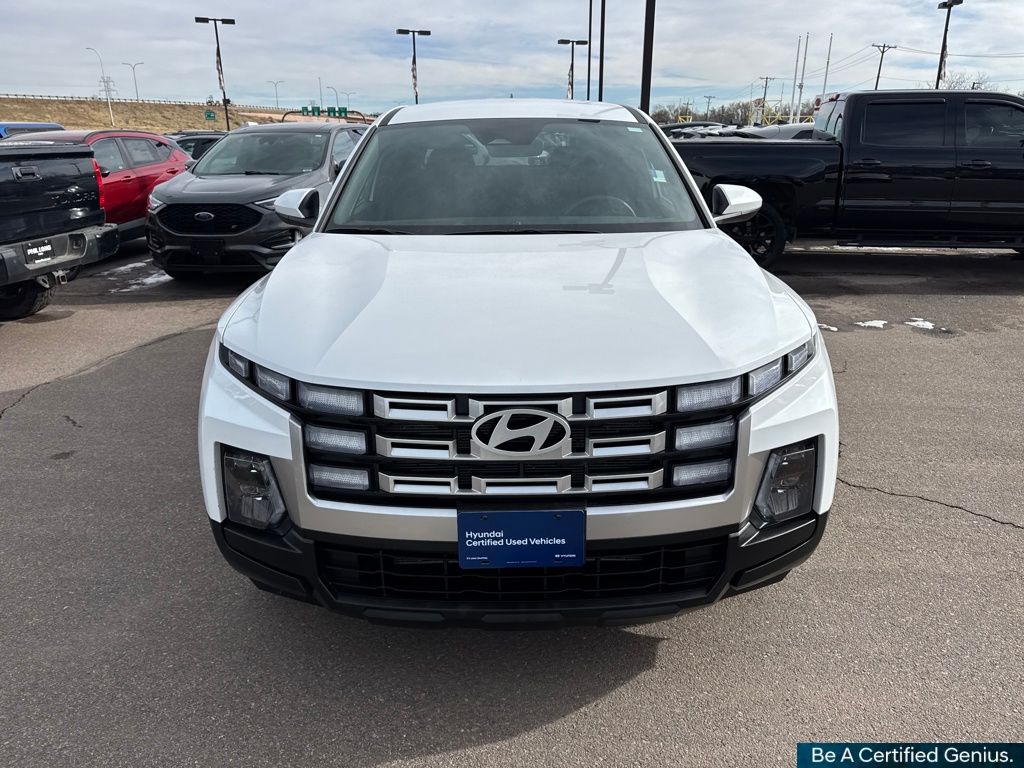 Option Group 01, Hyundai Certified Used Vehicles Certified, 18" x 7.5J Alloy Wheels, 4-Wheel Disc Brakes, 4.081 Axle Ratio, 6 Speakers, ABS brakes, Air Conditioning, All Season Fitted Liners, Alloy wheels, AM/FM radio: SiriusXM, Apple CarPlay & Android Auto, Auto High-beam Headlights, Auto-leveling suspension, Bed Cargo Net, Bed Mat, Brake assist, Bumpers: body-color, Cargo Net, Compass, Delay-off headlights, Driver door bin, Driver vanity mirror, Dual front impact airbags, Dual front side impact airbags, Electronic Stability Control, Emergency communication system: Bluelink+, Exterior Parking Camera Rear, First Aid Kit, Four wheel independent suspension, Front anti-roll bar, Front Bucket Seats, Front Center Armrest, Front reading lights, Fully automatic headlights, Illuminated entry, Low tire pressure warning, Occupant sensing airbag, Outside temperature display, Overhead airbag, Overhead console, Panic alarm, Passenger door bin, Passenger vanity mirror, Power door mirrors, Power steering, Power windows, Radio data system, Radio: AM/FM/HD Audio System, Rear anti-roll bar, Rear seat center armrest, Rear side impact airbag, Rear step bumper, Rear window defroster, Remote keyless entry, Security system, Speed control, Speed-sensing steering, Split folding rear seat, Spoiler, Stain & Odor Resistant Cloth Seat Trim, Steering wheel mounted audio controls, Tachometer, Telescoping steering wheel, Tilt steering wheel, Traction control, Trip computer, Variably intermittent wipers, and Wheel Locks.