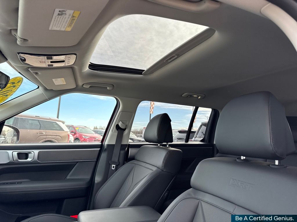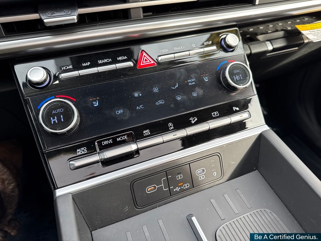 Option Group 01, Hyundai Certified Used Vehicles Certified, AWD, Black Premium Synthetic, 3rd row seats: bench, 4-Wheel Disc Brakes, 6 Speakers, ABS brakes, Air Conditioning, Alloy wheels, AM/FM radio: SiriusXM, Apple CarPlay & Android Auto, Auto High-beam Headlights, Automatic temperature control, Brake assist, Bumpers: body-color, Delay-off headlights, Driver door bin, Driver vanity mirror, Dual front impact airbags, Dual front side impact airbags, Electronic Stability Control, Emergency communication system, Exterior Parking Camera Rear, Four wheel independent suspension, Front anti-roll bar, Front Bucket Seats, Front Center Armrest, Front dual zone A/C, Front reading lights, Fully automatic headlights, H-Tex Leatherette Seat Trim, Heated door mirrors, Heated Front Bucket Seats, Heated front seats, Illuminated entry, Knee airbag, Leather steering wheel, Low tire pressure warning, Navigation System, Occupant sensing airbag, Outside temperature display, Overhead airbag, Overhead console, Panic alarm, Passenger door bin, Passenger vanity mirror, Power door mirrors, Power driver seat, Power Liftgate, Power moonroof, Power steering, Power windows, Radio: AM/FM/HD Display Audio, Rear anti-roll bar, Rear seat center armrest, Rear side impact airbag, Rear window defroster, Rear window wiper, Remote keyless entry, Security system, Speed control, Speed-sensing steering, Split folding rear seat, Spoiler, Steering wheel mounted audio controls, Tachometer, Telescoping steering wheel, Tilt steering wheel, Traction control, Trip computer, Turn signal indicator mirrors, Variably intermittent wipers, and Wheels: 18" x 7.5J Dark Alloy.