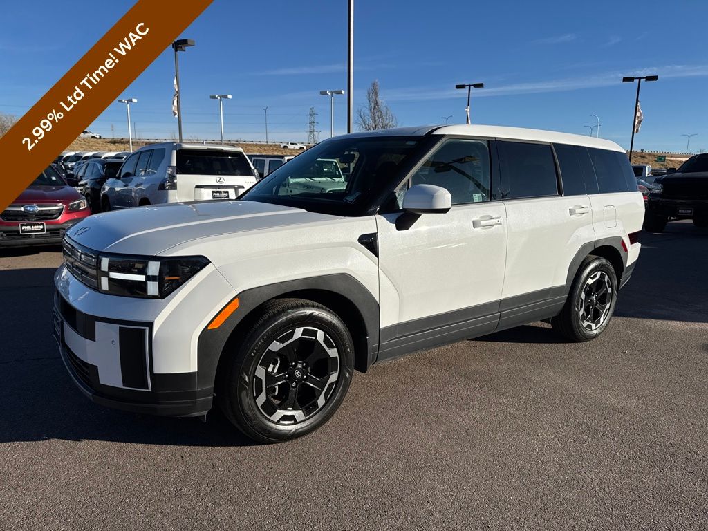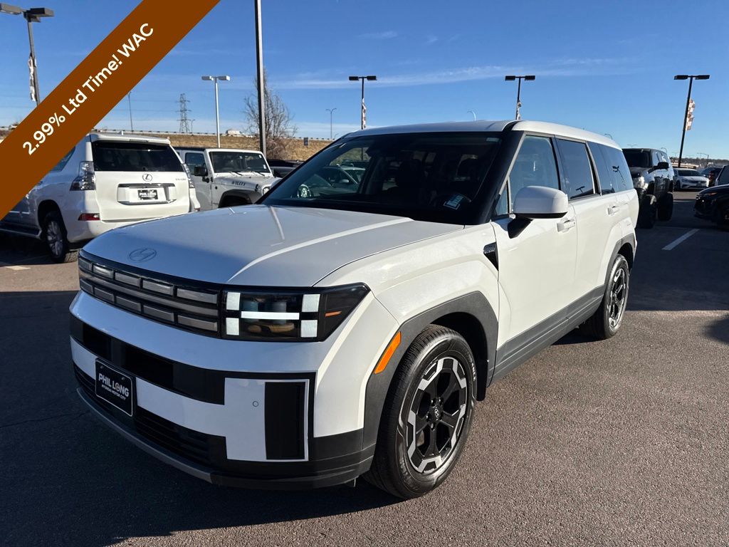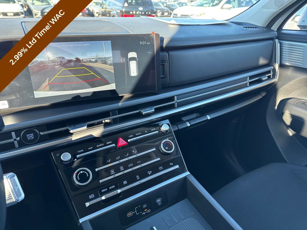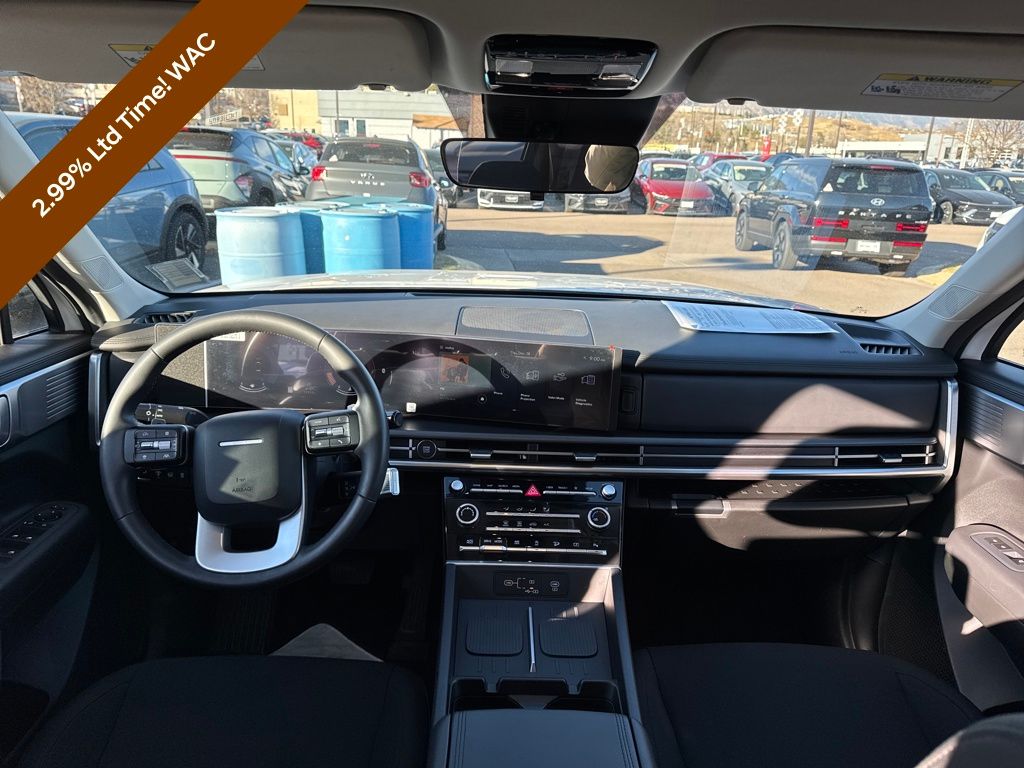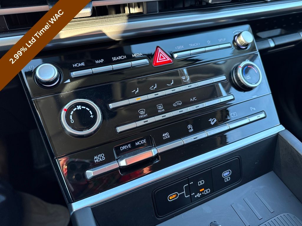 Option Group 01, Hyundai Certified Used Vehicles Certified, AWD, Black Cloth, 18" x 7.5J Alloy Wheels, 3rd row seats: bench, 4-Wheel Disc Brakes, 6 Speakers, ABS brakes, Air Conditioning, All Season Fitted Liners, Alloy wheels, AM/FM radio: SiriusXM, Apple CarPlay & Android Auto, Auto High-beam Headlights, Brake assist, Bumpers: body-color, Cargo Blocks, Delay-off headlights, Driver door bin, Driver vanity mirror, Dual front impact airbags, Dual front side impact airbags, Electronic Stability Control, Emergency communication system, Exterior Parking Camera Rear, First Aid Kit, Four wheel independent suspension, Front anti-roll bar, Front Bucket Seats, Front Center Armrest, Front reading lights, Fully automatic headlights, Heated door mirrors, Illuminated entry, Knee airbag, Leather steering wheel, Low tire pressure warning, Mudguards, Occupant sensing airbag, Outside temperature display, Overhead airbag, Overhead console, Panic alarm, Passenger door bin, Passenger vanity mirror, Power door mirrors, Power Liftgate, Power steering, Power windows, Radio: AM/FM/HD Display Audio, Rear anti-roll bar, Rear seat center armrest, Rear side impact airbag, Rear window defroster, Rear window wiper, Remote keyless entry, Security system, Speed control, Speed-sensing steering, Split folding rear seat, Spoiler, Steering wheel mounted audio controls, Tachometer, Telescoping steering wheel, Tilt steering wheel, Traction control, Trip computer, Variably intermittent wipers, Wheel Locks, and YES Essentials Stain-Resistant Cloth Seat Trim.