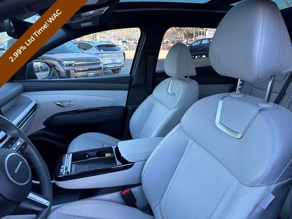 Option Group 01, Hyundai Certified Used Vehicles Certified, 1.6L I4 DGI Hybrid Turbocharged DOHC 16V LEV3-SULEV30, 19" Alloy Wheels, 4-Wheel Disc Brakes, 8 Speakers, ABS brakes, Air Conditioning, All Season Fitted Liners, Alloy wheels, AM/FM radio: SiriusXM, Apple CarPlay & Android Auto, Auto High-beam Headlights, Auto-dimming Rear-View mirror, Automatic temperature control, Brake assist, Bumpers: body-color, Cargo Net, Carpeted Floor Mats, Delay-off headlights, Driver door bin, Driver vanity mirror, Dual front impact airbags, Dual front side impact airbags, Electronic Stability Control, Emergency communication system: Bluelink+, First Aid Kit, Four wheel independent suspension, Front anti-roll bar, Front Bucket Seats, Front Center Armrest, Front dual zone A/C, Front reading lights, Fully automatic headlights, Garage door transmitter: HomeLink, Heads-Up Display, Heated & Ventilated Front Bucket Seats, Heated door mirrors, Heated front seats, Heated rear seats, Heated steering wheel, Illuminated entry, Leather steering wheel, Leather-Trimmed Seat Trim, Low tire pressure warning, Memory seat, Navigation System, Occupant sensing airbag, Outside temperature display, Overhead airbag, Overhead console, Panic alarm, Passenger door bin, Passenger vanity mirror, Power door mirrors, Power driver seat, Power Liftgate, Power moonroof, Power passenger seat, Power steering, Power windows, Radio data system, Radio: Bose Premium w/AM/FM/HD Audio System, Rain sensing wipers, Rear anti-roll bar, Rear reading lights, Rear seat center armrest, Rear side impact airbag, Rear window defroster, Rear window wiper, Remote keyless entry, Security system, Speed control, Split folding rear seat, Spoiler, Steering wheel mounted audio controls, Tachometer, Telescoping steering wheel, Tilt steering wheel, Traction control, Trip computer, Turn signal indicator mirrors, Variably intermittent wipers, Ventilated front seats, and Wheel Locks.