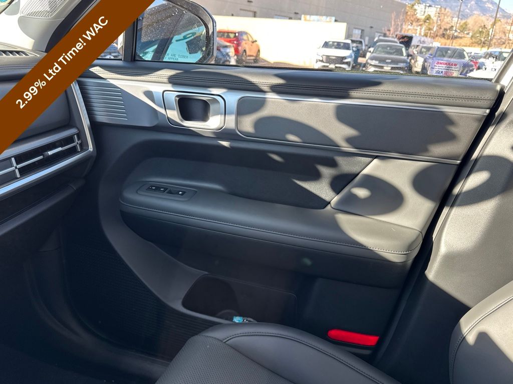 Option Group 01, Hyundai Certified Used Vehicles Certified, I4, 18" x 7.5J Alloy Wheels, 3rd row seats: bench, 4-Wheel Disc Brakes, 6 Speakers, ABS brakes, Air Conditioning, Alloy wheels, AM/FM radio: SiriusXM, Apple CarPlay & Android Auto, Auto High-beam Headlights, Automatic temperature control, Brake assist, Bumpers: body-color, Cargo Net, Cargo Tray, Carpeted Floor Mats, Delay-off headlights, Driver door bin, Driver vanity mirror, Dual front impact airbags, Dual front side impact airbags, Electronic Stability Control, Emergency communication system, Exterior Parking Camera Rear, First Aid Kit, Four wheel independent suspension, Front anti-roll bar, Front Bucket Seats, Front Center Armrest, Front dual zone A/C, Front reading lights, Fully automatic headlights, H-Tex Leatherette Seat Trim, Heated door mirrors, Heated Front Bucket Seats, Heated front seats, Illuminated entry, Knee airbag, Leather steering wheel, Low tire pressure warning, Occupant sensing airbag, Outside temperature display, Overhead airbag, Overhead console, Panic alarm, Passenger door bin, Passenger vanity mirror, Power door mirrors, Power driver seat, Power Liftgate, Power steering, Power windows, Radio: AM/FM/HD Display Audio, Rear anti-roll bar, Rear seat center armrest, Rear side impact airbag, Rear window defroster, Rear window wiper, Remote keyless entry, Security system, Speed control, Speed-sensing steering, Split folding rear seat, Spoiler, Steering wheel mounted audio controls, Tachometer, Telescoping steering wheel, Tilt steering wheel, Tow Hitch, Traction control, Trip computer, Turn signal indicator mirrors, and Variably intermittent wipers.