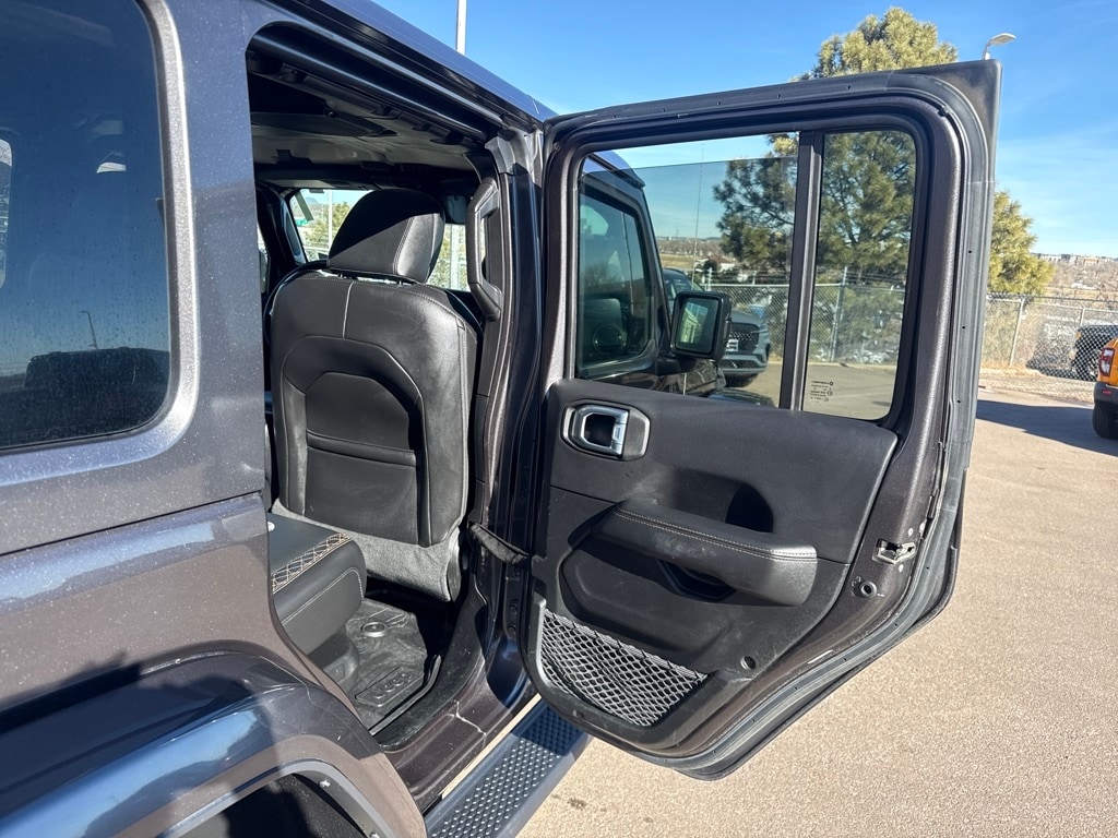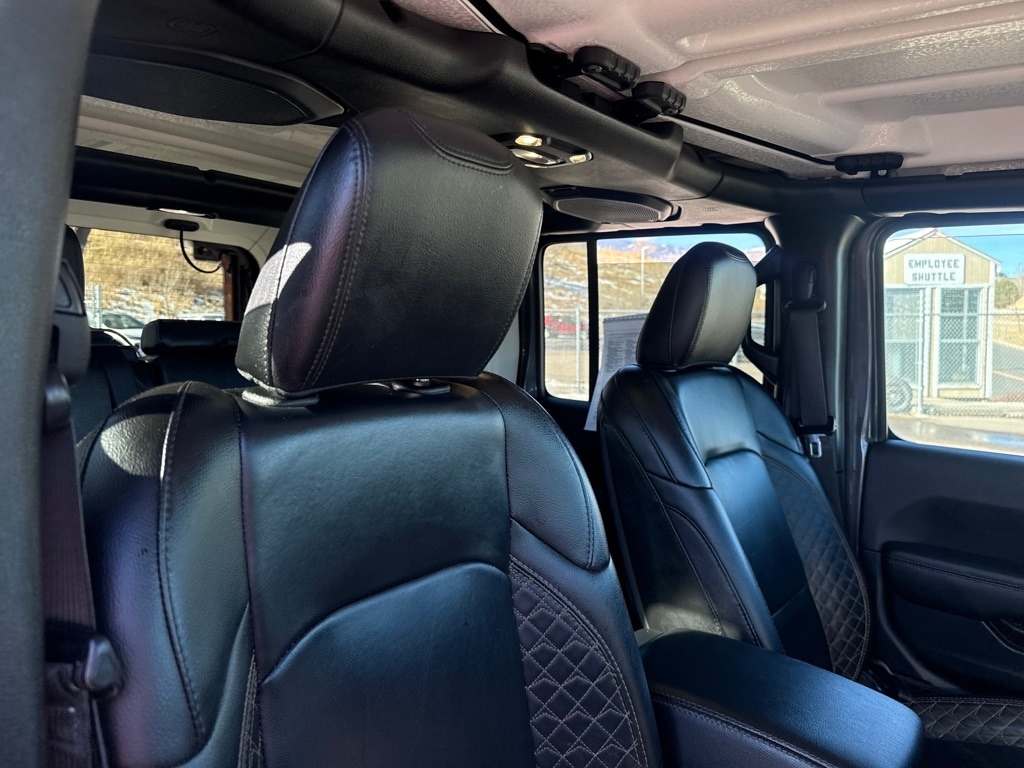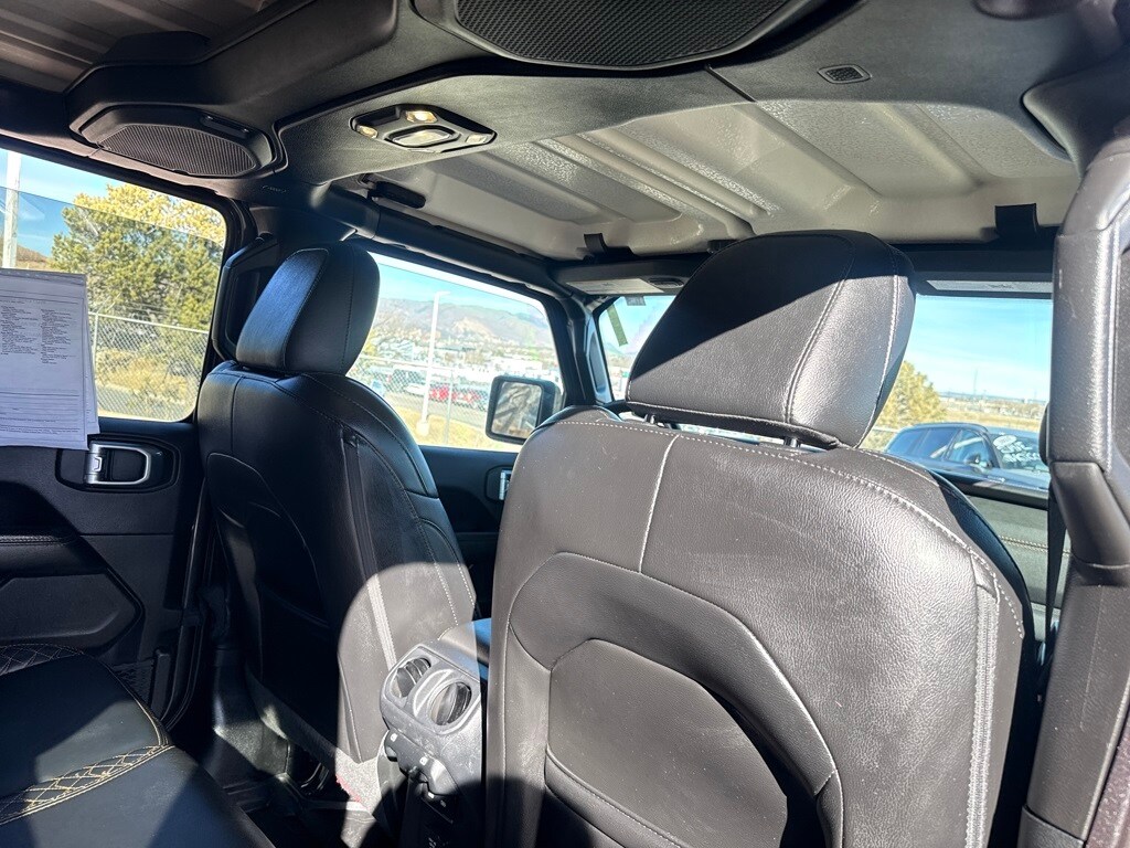 Advanced Safety Group (Adaptive Cruise Control w/Stop, Advanced Brake Assist, Auto High Beam Headlamp Control, and Full Speed Forward Collision Warning Plus), Cold Weather Group (Heated Front Seats, Heated Steering Wheel, and Remote Start System), High Altitude Package, Quick Order Package 29N High Altitude (Blue Tow Hooks, Body Color 3-Piece Hard Top, Body Color Door Handles, Body Color Exterior Mirrors, Body Color Front Bumper, Body Color Grille w/Gloss Black Rings, Body Color Power Locking Fuel Filler Door, Body Color Rear Bumper w/Step Pads, Caramel Interior Accents, Freedom Panel Storage Bag, Leather Trimmed Bucket Seats, Leather Wrapped Park Brake Handle, Premium Dark Exterior Accents, Rear Window Defroster, Rear Window Wiper/Washer, Remote Proximity Keyless Entry, Summit Badging, and Wrapped I/P Bezel w/Caramel Stitch), Safety Group (Blind Spot & Cross Path Detection and ParkSense Rear Park Assist System), Jeep Certified, 2.0L I4 DOHC, 3.73 Rear Axle Ratio, 4-Wheel Disc Brakes, 9 Speakers, ABS brakes, Air Conditioning, Alloy wheels, AM/FM radio, Apple CarPlay/Android Auto, Auto-dimming Rear-View mirror, Automatic temperature control, Brake assist, Compass, Delay-off headlights, Driver door bin, Driver vanity mirror, Dual front impact airbags, Dual front side impact airbags, Electronic Stability Control, Emergency communication system: SiriusXM Guardian, Front anti-roll bar, Front Bucket Seats, Front Center Armrest w/Storage, Front dual zone A/C, Front fog lights, Front License Plate Bracket, Front reading lights, Fully automatic headlights, Garage door transmitter, Heated door mirrors, Illuminated entry, Integrated roll-over protection, Leather Shift Knob, Leather steering wheel, Leather Trimmed Seats w/Sahara Logo, Low tire pressure warning, MOPAR All-Weather Floor Mats (DISC), Navigation System, Occupant sensing airbag, Outside temperature display, Panic alarm, ParkView Rear Back-Up Camera, Passenger door bin, Passenger vanity mirror, Power door mirrors, Power steering, Power windows, Radio data system, Radio: Uconnect 4C Nav w/8.4" Display, Rear anti-roll bar, Rear reading lights, Rear seat center armrest, Remote keyless entry, Security system, Speed control, Split folding rear seat, Sport Suspension, Steering wheel mounted audio controls, Tachometer, Telescoping steering wheel, Tilt steering wheel, Traction control, Trip computer, Variably intermittent wipers, Voltmeter, and Wheels: 20" x 8" Fully Painted Aluminum.