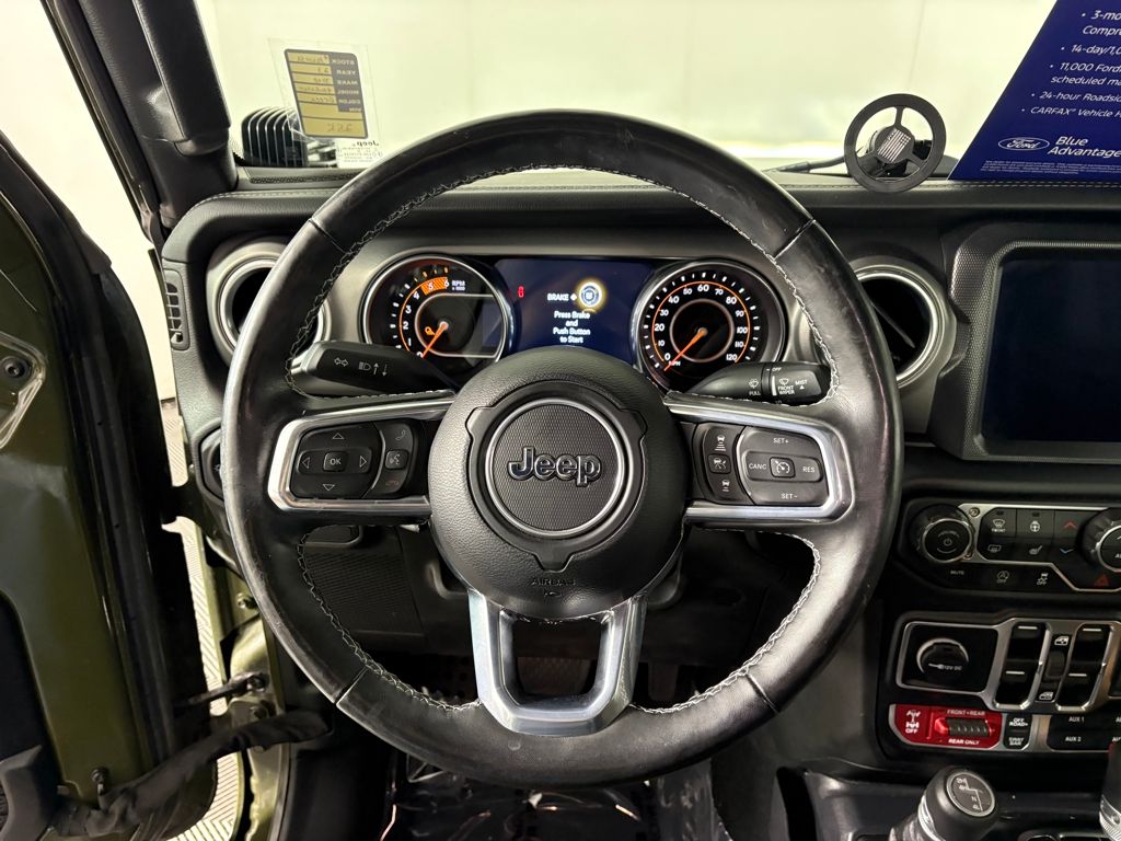 Safety is paramount in the Gladiator, exemplified by the blind spot warning system that alerts drivers of vehicles in their blind spots. Additionally, the heated steering wheel and heated seats from the Cold Weather Group offer a touch of luxury and comfort, especially during chilly mornings.