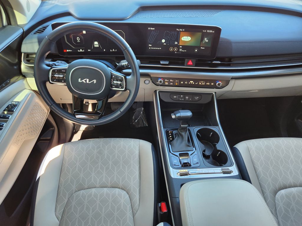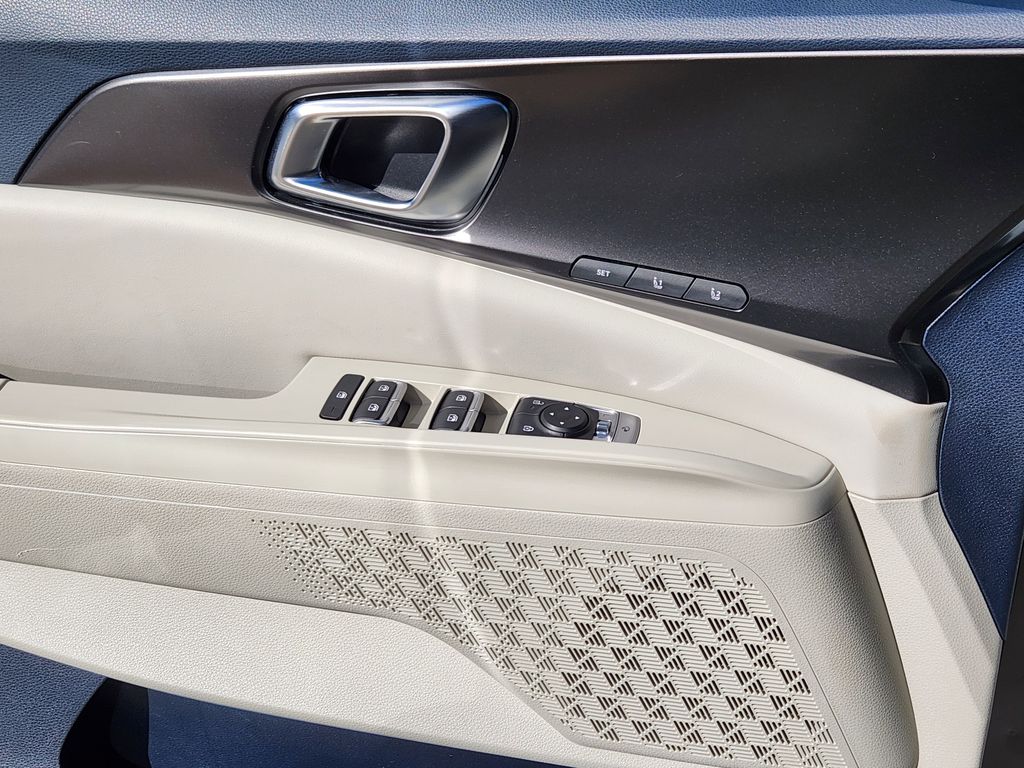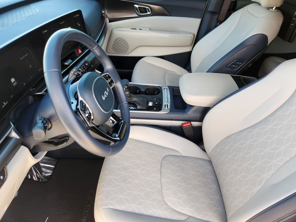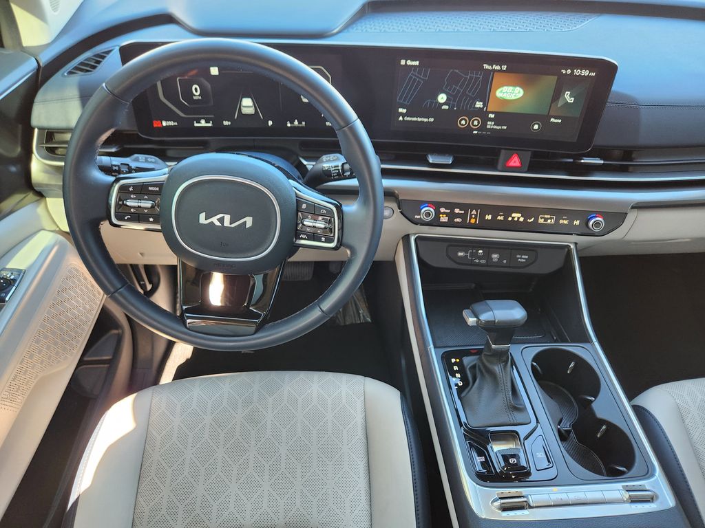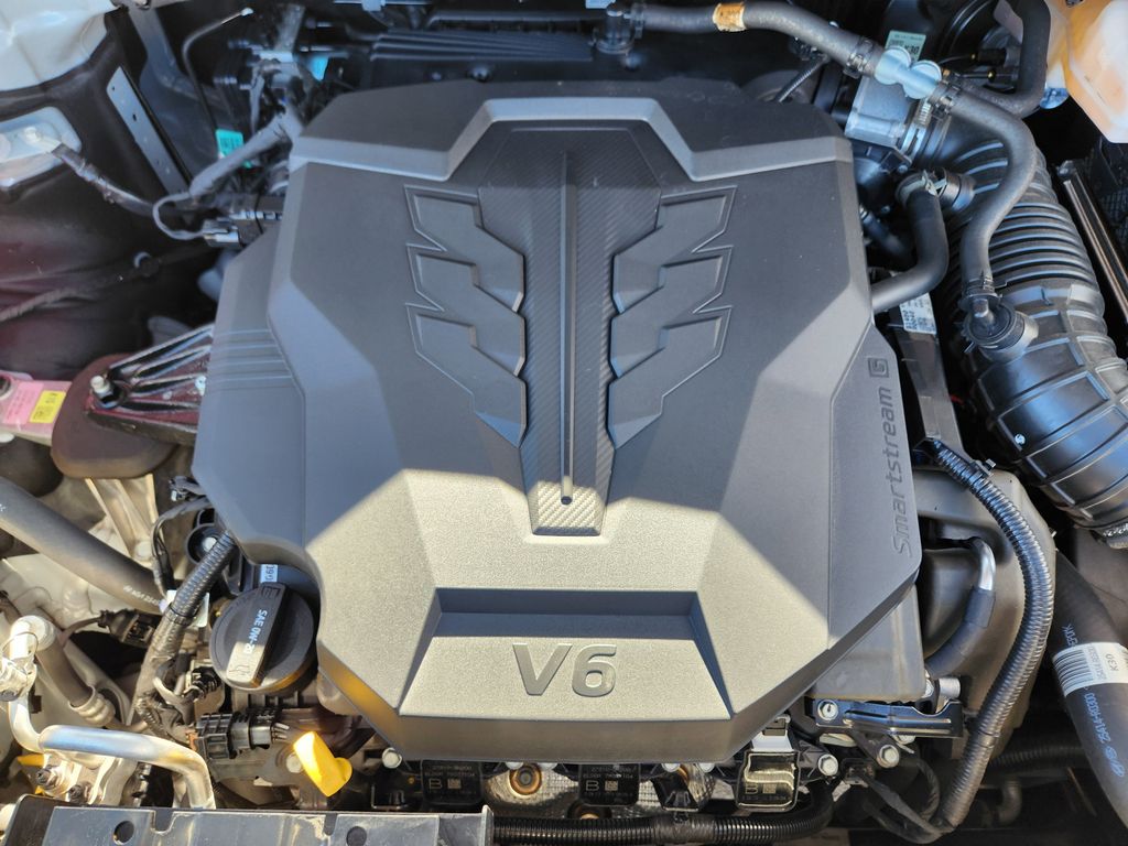 REAR SEAT ENTERTAINMENT PACKAGE Dual Screen Rear Seat Entertainment System, SX DARK EDITION PACKAGE Wheels: 7.5J x 19 Alloy Dark Edition, Black customizing, Dark Edition Exterior Design, dark edition skid plates and C-pillar, Dark Edition Front Grille Trim, Dark Edition Mirror Caps, CARPETED FLOOR MATS (8-PASSENGER). Kia SX with Ivory Silver exterior and Navy/Gray interior features a V6 Cylinder Engine with 287 HP at 6400 RPM*.