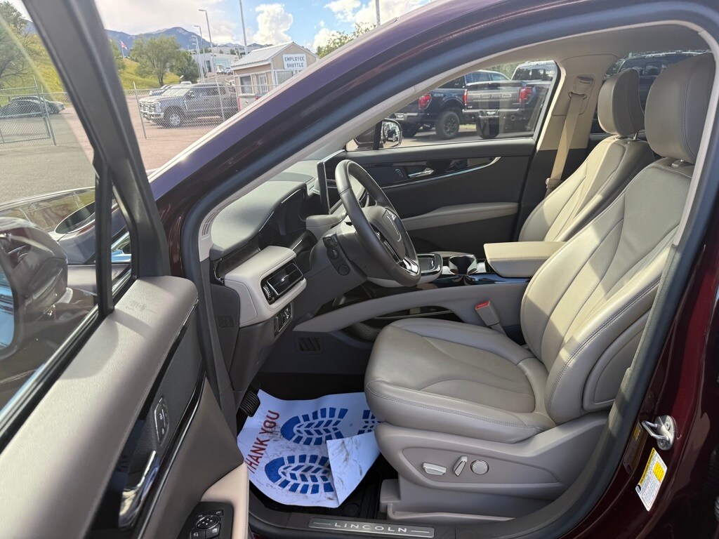 Equipment Group 200A, Lincoln Co-Pilot360 1.0 Plus Package (360 Degree Camera w/Rear Camera Wash, Active Park Assist 2.0, Adaptive Cruise Control, Distance Indication & Alert, Evasive Steering Assist, and Forward-Side-Rear Parking Sensors), Lincoln Certified Pre-Owned Certified, 10 Speakers, 3.80 Axle Ratio, 4-Wheel Disc Brakes, ABS brakes, Air Conditioning, Alexa Built-In, Alloy wheels, AM/FM radio: SiriusXM with 360L, Auto High-beam Headlights, Auto tilt-away steering wheel, Auto-dimming door mirrors, Auto-dimming Rear-View mirror, Automatic temperature control, Brake assist, Bumpers: body-color, Compass, Delay-off headlights, Driver door bin, Driver vanity mirror, Dual front impact airbags, Dual front side impact airbags, Electronic Stability Control, Emergency communication system: 911 Assist, Four wheel independent suspension, Front anti-roll bar, Front Bucket Seats, Front Center Armrest w/Storage, Front dual zone A/C, Front reading lights, Fully automatic headlights, Garage door transmitter: HomeLink, Heated door mirrors, Heated front seats, Heated rear seats, Heated steering wheel, Illuminated entry, Knee airbag, Leather steering wheel, Low tire pressure warning, Memory seat, Navigation System, Occupant sensing airbag, Outside temperature display, Overhead airbag, Overhead console, Panic alarm, Passenger door bin, Passenger vanity mirror, Power door mirrors, Power driver seat, Power Liftgate, Power moonroof: Panoramic Vista Roof, Power passenger seat, Power steering, Power windows, Prem Lthr-Trimmed Heated/Ventilated Captain Seats, Radio data system, Radio: AM/FM/HD Audio System, Rain sensing wipers, Rear anti-roll bar, Rear reading lights, Rear seat center armrest, Rear window defroster, Rear window wiper, Remote keyless entry, Satin Roof Rack Side Rails w/o Crossbars, Security system, Speed control, Speed-sensing steering, Speed-Sensitive Wipers, Split folding rear seat, Spoiler, Steering wheel memory, Steering wheel mounted A/C controls, Steering wheel mounted audio controls, SYNC 4 w/Enhanced Voice Recognition, Tachometer, Telescoping steering wheel, Tilt steering wheel, Traction control, Trip computer, Turn signal indicator mirrors, Variably intermittent wipers, Ventilated front seats, Wheels: 18" Premium Painted Bright Machined Alum, and Wheels: 20" Prem Painted Bright Machined Aluminum.