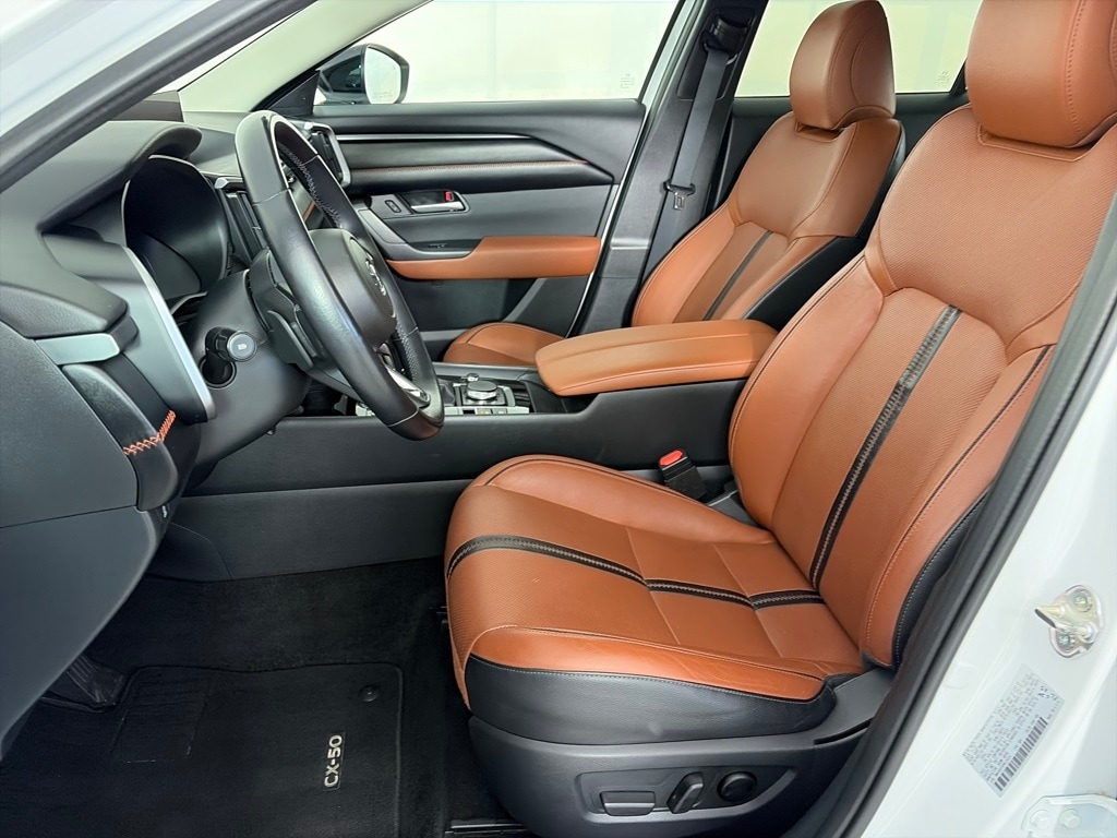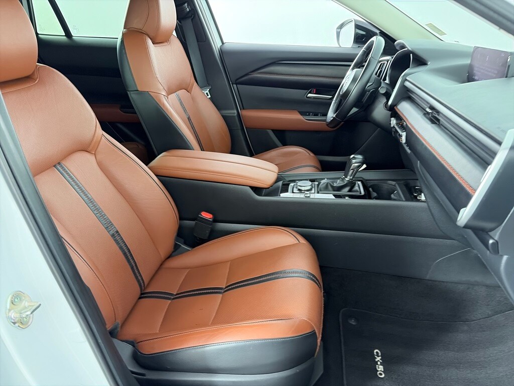 Wind Chill Pearl exterior and Terracotta interior, CX-50 2.5 Turbo trim. Ford Blue Certified. EPA 29 MPG Hwy/23 MPG City! Heated Leather Seats, Sunroof, Lane Keeping Assist, Back-Up Camera, Blind Spot Alert, WiFi Hotspot, Turbo, AWD, Alloy Wheels, RETRACTABLE CARGO COVER, Apple CarPlay®. SEE MORE!