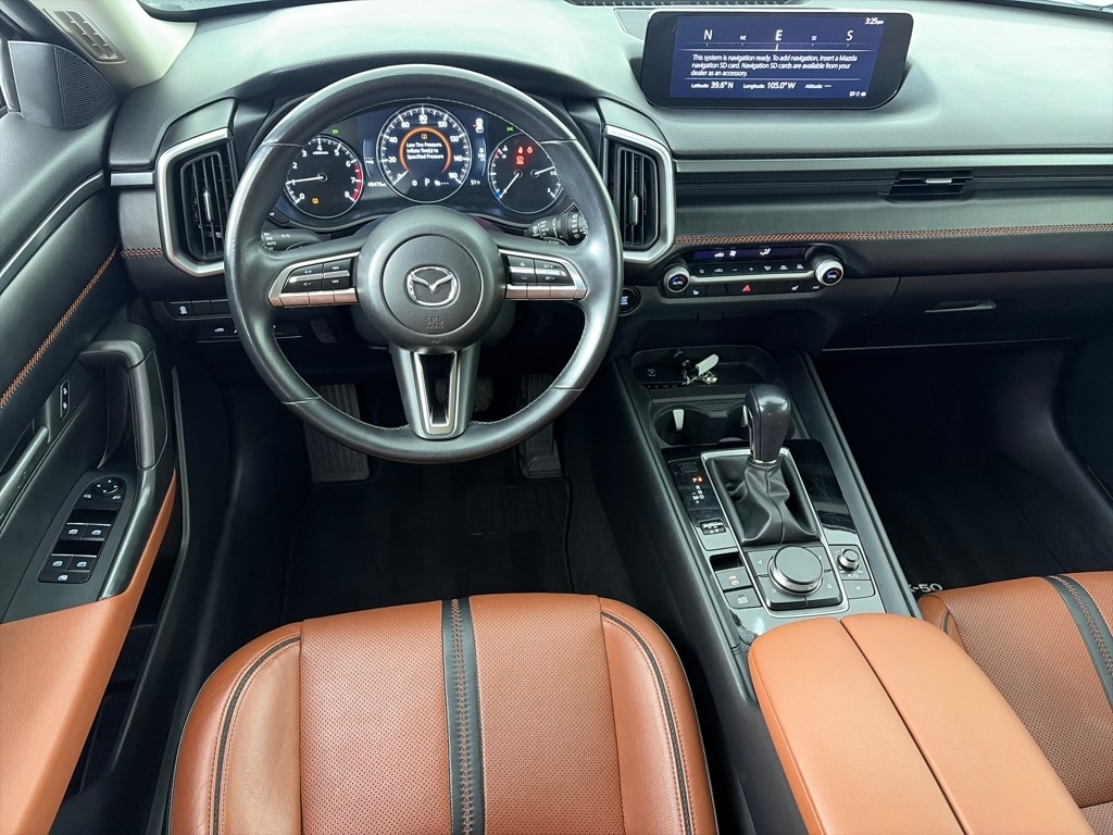 RETRACTABLE CARGO COVER. Mazda CX-50 2.5 Turbo with Wind Chill Pearl exterior and Terracotta interior features a 4 Cylinder Engine with 227 HP at 5000 RPM*.