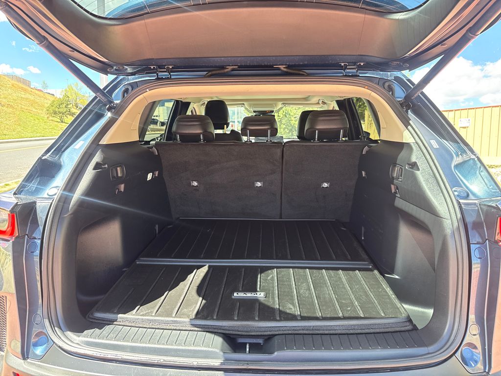 Mazda Certified, Navigation system: MAZDA CONNECT, 12 Speakers, 4-Wheel Disc Brakes, ABS brakes, Air Conditioning, Alloy wheels, AM/FM radio: SiriusXM, AppLink/Apple CarPlay and Android Auto, Auto High-beam Headlights, Auto-dimming door mirrors, Auto-dimming Rear-View mirror, Automatic temperature control, Black Lug Nuts and Black Wheel Locks, Brake assist, Bumpers: body-color, Carpet Cargo Mat, Compass, Delay-off headlights, Driver door bin, Driver vanity mirror, Dual front impact airbags, Dual front side impact airbags, Electronic Stability Control, Emergency communication system: MAZDA CONNECT, Front and Rear Splash Guards, Front anti-roll bar, Front Bucket Seats, Front Center Armrest, Front dual zone A/C, Front reading lights, Front wheel independent suspension, Fully automatic headlights, Garage door transmitter: HomeLink, Heads-Up Display, Heated and Ventilated Front Seats with 3 Level Adjustment, Heated door mirrors, Heated front seats, Heated rear seats, Heated steering wheel, Illuminated entry, Knee airbag, Leather Seat Trim, Leather Shift Knob, Leather steering wheel, Low tire pressure warning, Memory seat, Occupant sensing airbag, Outside temperature display, Overhead airbag, Overhead console, Panic alarm, Passenger door bin, Passenger vanity mirror, Power door mirrors, Power driver seat, Power Liftgate, Power moonroof, Power passenger seat, Power steering, Power windows, Radio data system, Radio: AM/FM/HD Bose 12-Speaker Audio Sound System and Navigation, Rain sensing wipers, Rear seat center armrest, Rear window defroster, Rear window wiper, Remote keyless entry, Speed control, Speed-sensing steering, Split folding rear seat, Spoiler, Steering wheel mounted audio controls, Tachometer, Telescoping steering wheel, Tilt steering wheel, Traction control, Trip computer, Turn signal indicator mirrors, Variably intermittent wipers, Ventilated front seats, and Wheels: 20" x 8J Aluminum Alloy Black Metallic with Machining Cut.