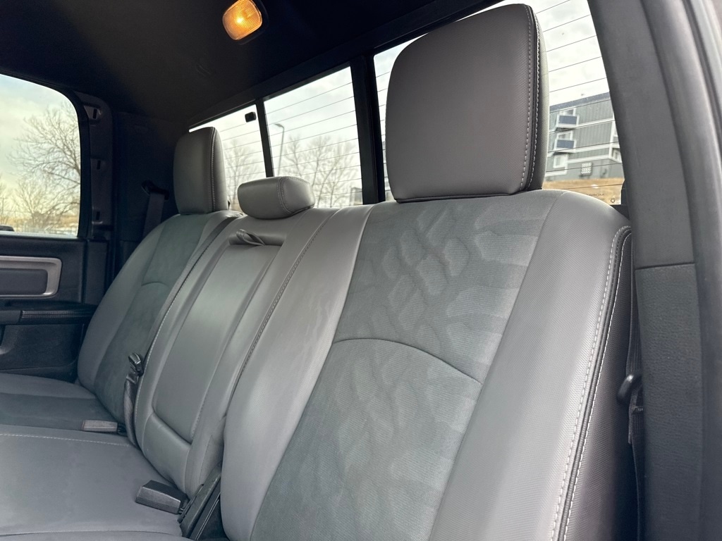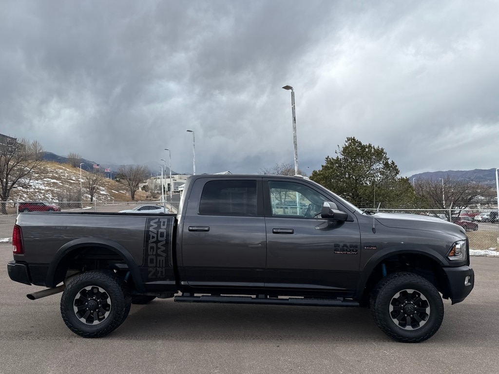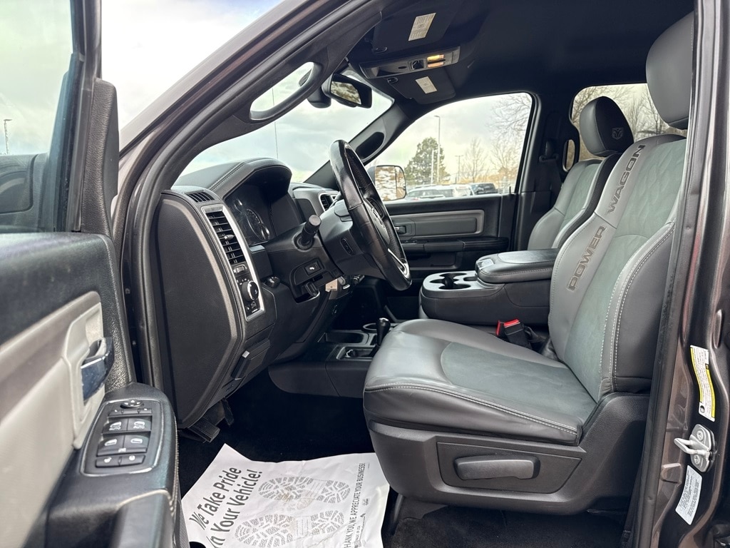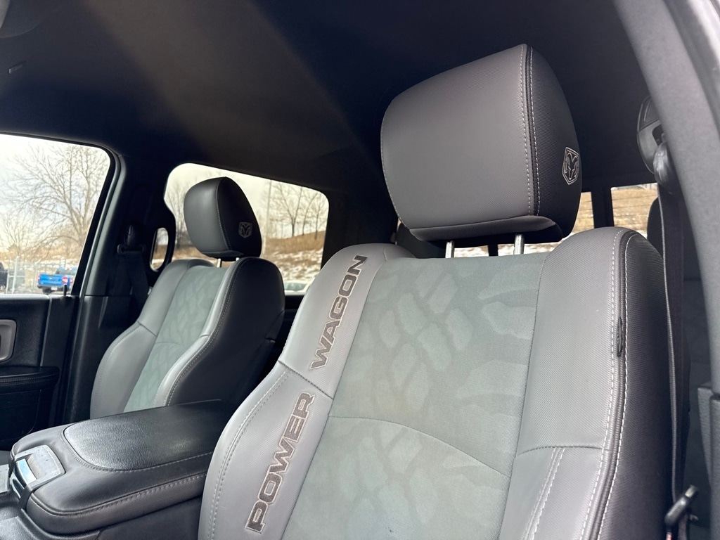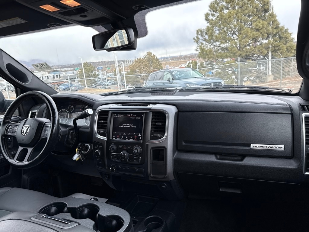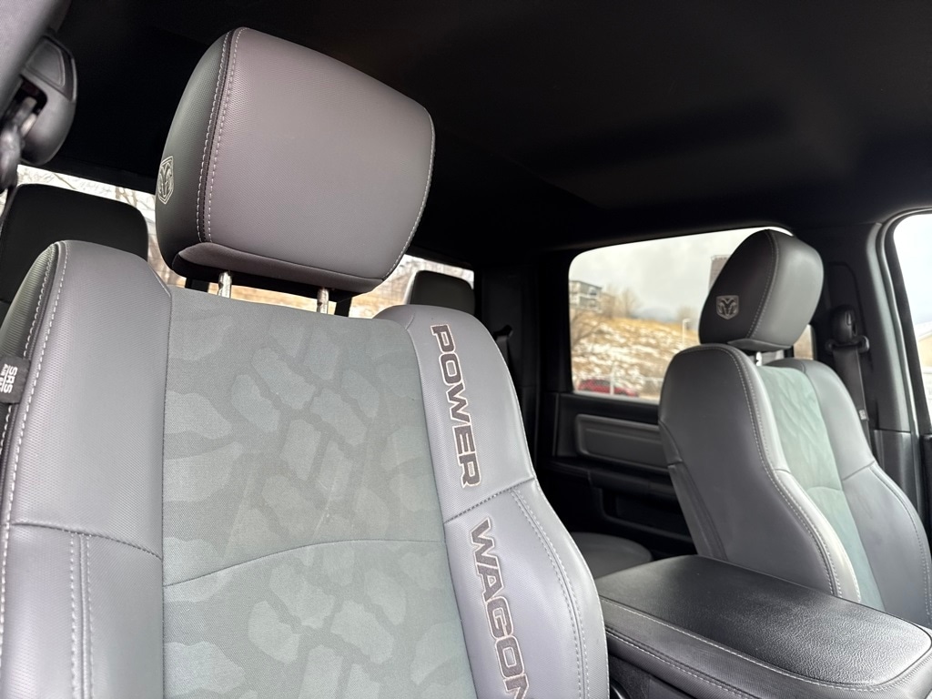 Quick Order Package 22P Power Wagon (Flat Black 6.4L Hemi Badge, Flat Black Ram 2500 Badge, and Front Armrest w/Cupholders), Ram Certified, 1-Year SiriusXM Guardian Trial, 4-Wheel Disc Brakes, 4.10 Axle Ratio, 40/20/40 Split Bench Seat, 6 Speakers, 8.4" Touchscreen Display, ABS brakes, Air Conditioning, Air Conditioning ATC w/Dual Zone Control, Alloy wheels, AM/FM radio: SiriusXM, Apple CarPlay, Auto-dimming Rear-View mirror, Black Exterior Mirrors, Black Tubular Side Steps, Block heater, Brake assist, Charge Only Remote USB Port, Cloth Bench Seat w/Emboss Tread Pattern, Compass, Delay-off headlights, Driver door bin, Dual front impact airbags, Dual front side impact airbags, Electronic Stability Control, Exterior Mirrors Courtesy Lamps, Exterior Mirrors w/Heating Element, Exterior Mirrors w/Supplemental Signals, Folding Flat Load Floor Storage, For Details Visit DriveUconnect.com, Front anti-roll bar, Front Center Armrest w/Storage, Front fog lights, Front reading lights, Fully automatic headlights, Google Android Auto, GPS Antenna Input, HD Radio, Heated door mirrors, Illuminated entry, Integrated Center Stack Radio, Integrated Voice Command w/Bluetooth, Leather steering wheel, Locking Tailgate, Low tire pressure warning, Manufacturer's Statement of Origin, Media Hub (2 USB, AUX), Occupant sensing airbag, Outside temperature display, Overhead airbag, Overhead console, Panic alarm, ParkSense Rear Park Assist System, ParkView Rear Back-Up Camera, Passenger door bin, Passenger vanity mirror, Power Adjustable Pedals, Power Black Trailer Tow Mirrors, Power door mirrors, Power steering, Power windows, Radio data system, Radio: Uconnect 3 w/5" Display, Radio: Uconnect 4C w/8.4" Display, Rear 60/40 Split Folding Seat, Rear seat center armrest, Rear step bumper, Rear Window Defroster, Remote keyless entry, Remote Start System, SiriusXM Satellite Radio, Speed control, Split folding rear seat, Spray In Bedliner, Steering wheel mounted audio controls, Tachometer, Tilt steering wheel, Traction control, Trailer Tow Mirrors, Trip computer, USB Host Flip, Variably intermittent wipers, Vendor Painted Cargo Box Tracking, Voltmeter, and Wheels: 17" x 8.0" Aluminum w/Matte Black PockeT.
