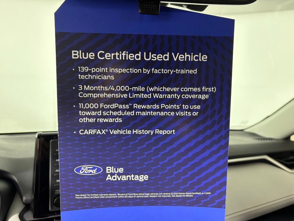 Ford Blue Certified includes:139 point vehicle inspection performed by an ASE Certified technician 3-month/4,000-mile Comprehensive Limited Warranty coverage that is fully competitive with other online retailers Blue Certification includes 11,000 FordPass Rewards Points For other manufacturers not listed above, Comprehensive Coverage is provided for 3 months or 4,000 miles, whichever comes first, from the signature date of