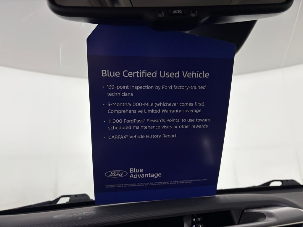 139 point vehicle inspection performed by an ASE Certified technician 3-month/4,000-mile Comprehensive Limited Warranty coverage that is fully competitive with other online retailers Blue Certification includes 11,000 FordPass Rewards Points For other manufacturers not listed above, Comprehensive Coverage is provided for 3 months or 4,000 miles, whichever comes first, from the signature date of the Ford Blue Advantage â" Blue Certified purchase. Comprehensive Limited Warranty covering 1,000+ components Travel expense reimbursement Rental car reimbursement SiriusXM 3 month tria. Recent Arrival! Odometer is 18221 miles below market average!