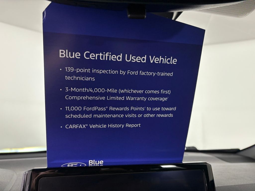 Ford Blue Certified includes:139 point vehicle inspection performed by an ASE Certified technician 3-month/4,000-mile Comprehensive Limited Warranty coverage that is fully competitive with other online retailers Blue Certification includes 11,000 FordPass Rewards Points For other manufacturers not listed above, Comprehensive C