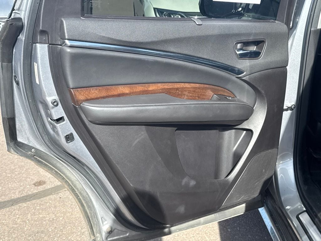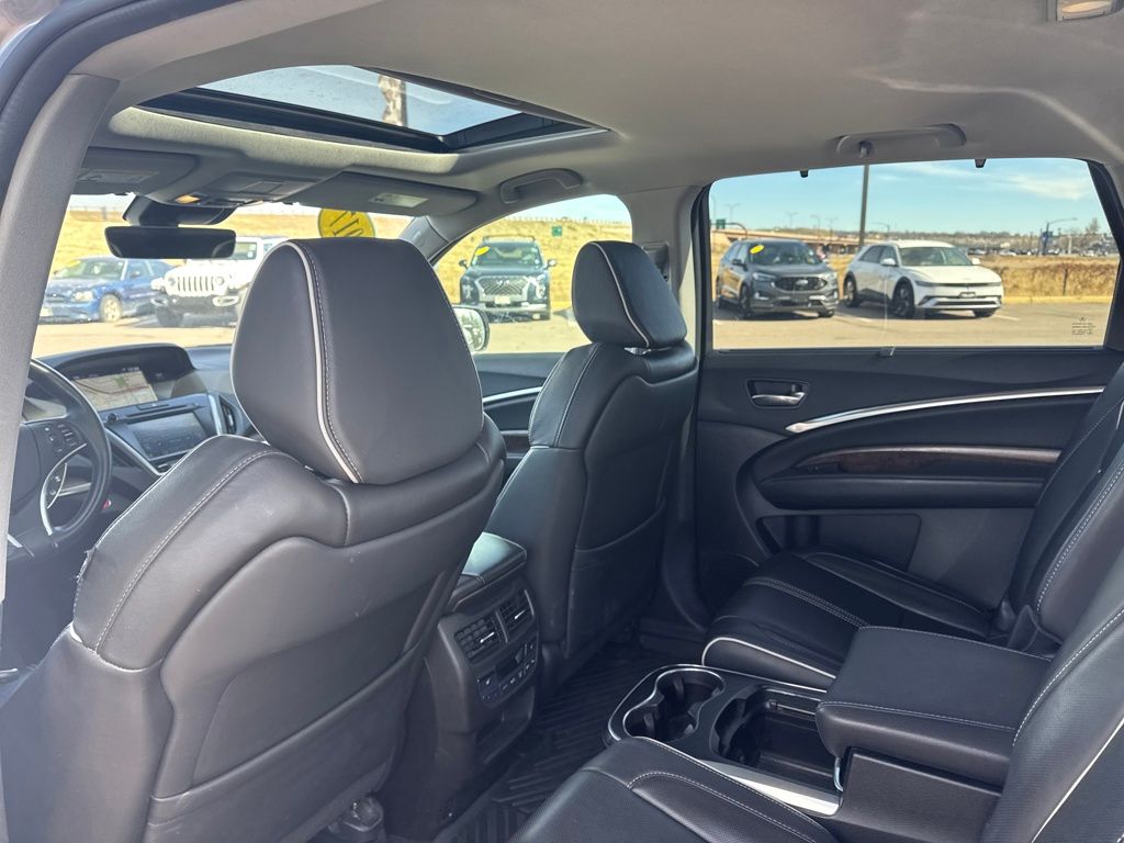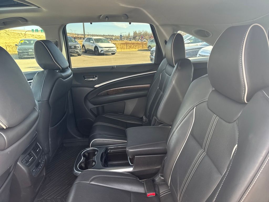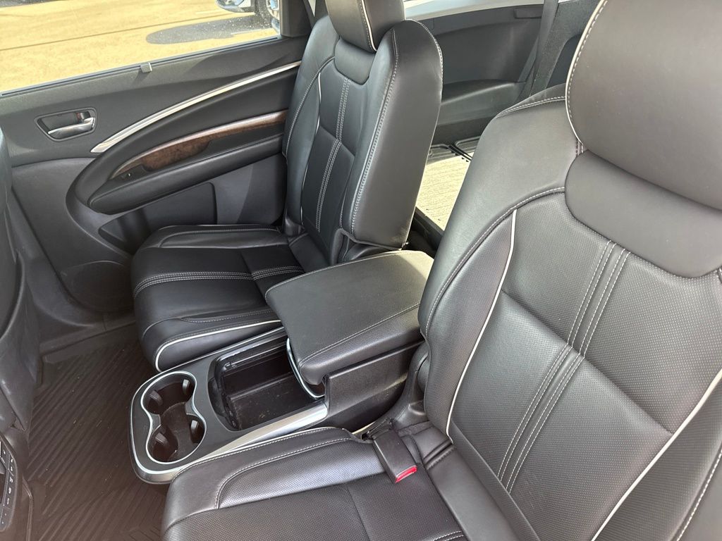 Black Leather, 12 Speakers, 3rd row seats: bench, 4-Wheel Disc Brakes, 4.33 Axle Ratio, ABS brakes, Adaptive suspension, Air Conditioning, Alloy wheels, AM/FM radio: SiriusXM, Anti-whiplash front head restraints, Audio memory, Auto High-beam Headlights, Auto tilt-away steering wheel, Auto-dimming door mirrors, Auto-dimming Rear-View mirror, Automatic temperature control, Brake assist, Bumpers: body-color, CD player, Compass, Delay-off headlights, Driver door bin, Driver vanity mirror, Dual front impact airbags, Dual front side impact airbags, Electronic Stability Control, Emergency communication system: AcuraLink, Exterior Parking Camera Rear, Four wheel independent suspension, Front anti-roll bar, Front Bucket Seats, Front Center Armrest, Front dual zone A/C, Front fog lights, Front reading lights, Garage door transmitter: HomeLink, Genuine wood console insert, Genuine wood dashboard insert, Genuine wood door panel insert, Heated & Ventilated Front Sport Seats, Heated door mirrors, Heated front seats, Heated rear seats, Heated steering wheel, HVAC memory, Illuminated entry, Knee airbag, Lane Departure Warning System, Leather steering wheel, Low tire pressure warning, Memory seat, Navigation System, Occupant sensing airbag, Outside temperature display, Overhead airbag, Overhead console, Panic alarm, Passenger door bin, Passenger vanity mirror, Perf Milano Leather w/Contrast Stitching & Piping, Power door mirrors, Power driver seat, Power Liftgate, Power moonroof, Power passenger seat, Power steering, Power windows, Premium audio system: Acura/ELS Surround, Radio data system, Radio: Acura/ELS Studio Premium Audio System, Rain sensing wipers, Rear air conditioning, Rear anti-roll bar, Rear reading lights, Rear seat center armrest, Rear window defroster, Rear window wiper, Remote keyless entry, Roof rack: rails only, Security system, Speed control, Speed-sensing steering, Speed-Sensitive Wipers, Split folding rear seat, Spoiler, Steering wheel memory, Steering wheel mounted audio controls, Tachometer, Telescoping steering wheel, Tilt steering wheel, Traction control, Trip computer, Turn signal indicator mirrors, Variably intermittent wipers, Ventilated front seats, Ventilated rear seats, and Wheels: 20" x 8J Aluminum-Alloy.