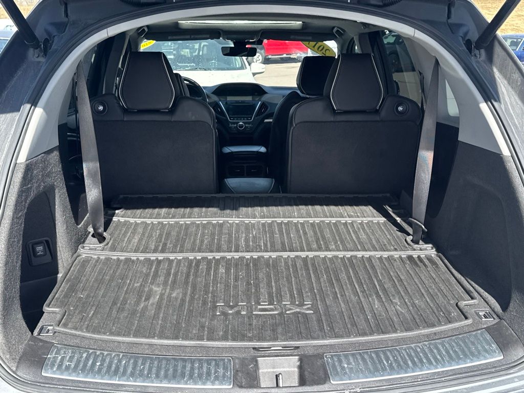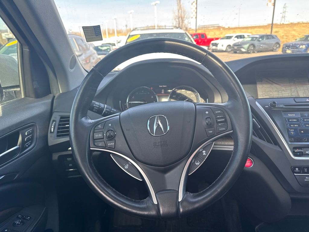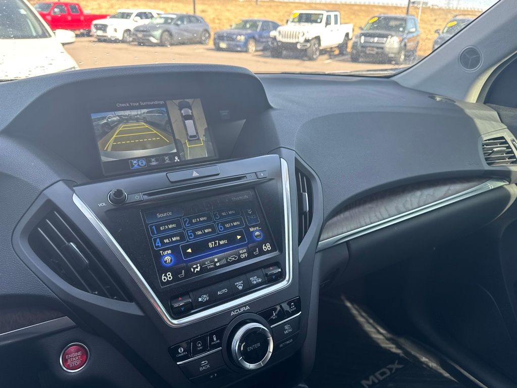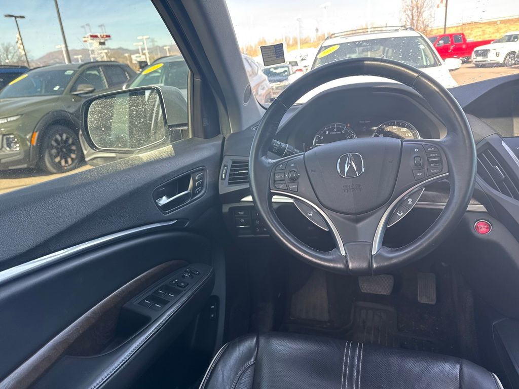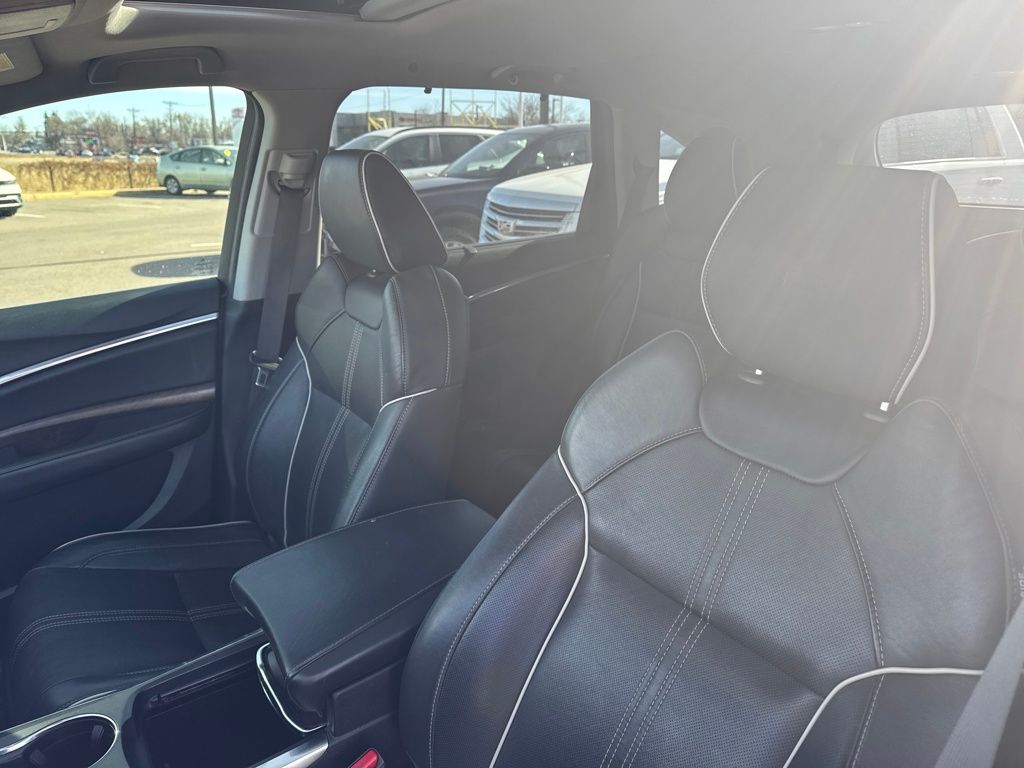 Black Leather, 12 Speakers, 3rd row seats: bench, 4-Wheel Disc Brakes, 4.33 Axle Ratio, ABS brakes, Adaptive suspension, Air Conditioning, Alloy wheels, AM/FM radio: SiriusXM, Anti-whiplash front head restraints, Audio memory, Auto High-beam Headlights, Auto tilt-away steering wheel, Auto-dimming door mirrors, Auto-dimming Rear-View mirror, Automatic temperature control, Brake assist, Bumpers: body-color, CD player, Compass, Delay-off headlights, Driver door bin, Driver vanity mirror, Dual front impact airbags, Dual front side impact airbags, Electronic Stability Control, Emergency communication system: AcuraLink, Exterior Parking Camera Rear, Four wheel independent suspension, Front anti-roll bar, Front Bucket Seats, Front Center Armrest, Front dual zone A/C, Front fog lights, Front reading lights, Garage door transmitter: HomeLink, Genuine wood console insert, Genuine wood dashboard insert, Genuine wood door panel insert, Heated & Ventilated Front Sport Seats, Heated door mirrors, Heated front seats, Heated rear seats, Heated steering wheel, HVAC memory, Illuminated entry, Knee airbag, Lane Departure Warning System, Leather steering wheel, Low tire pressure warning, Memory seat, Navigation System, Occupant sensing airbag, Outside temperature display, Overhead airbag, Overhead console, Panic alarm, Passenger door bin, Passenger vanity mirror, Perf Milano Leather w/Contrast Stitching & Piping, Power door mirrors, Power driver seat, Power Liftgate, Power moonroof, Power passenger seat, Power steering, Power windows, Premium audio system: Acura/ELS Surround, Radio data system, Radio: Acura/ELS Studio Premium Audio System, Rain sensing wipers, Rear air conditioning, Rear anti-roll bar, Rear reading lights, Rear seat center armrest, Rear window defroster, Rear window wiper, Remote keyless entry, Roof rack: rails only, Security system, Speed control, Speed-sensing steering, Speed-Sensitive Wipers, Split folding rear seat, Spoiler, Steering wheel memory, Steering wheel mounted audio controls, Tachometer, Telescoping steering wheel, Tilt steering wheel, Traction control, Trip computer, Turn signal indicator mirrors, Variably intermittent wipers, Ventilated front seats, Ventilated rear seats, and Wheels: 20" x 8J Aluminum-Alloy.