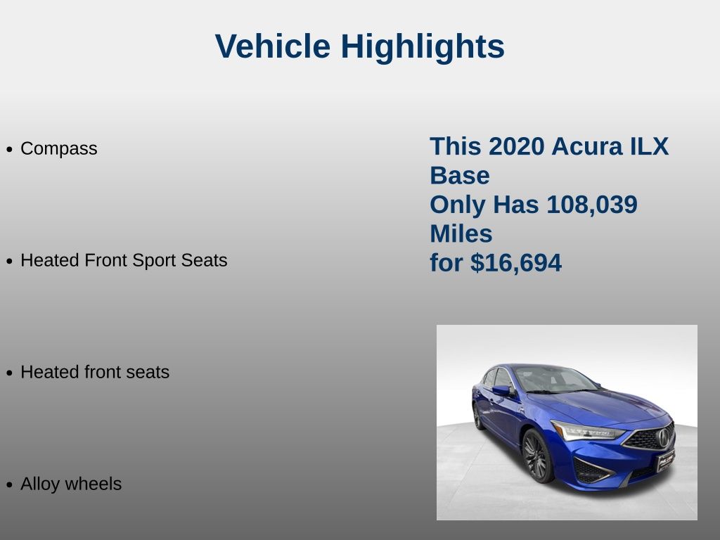 Blue 2020 Acura ILX Technology & A-Spec Packages FWD 8-Speed Dual-Clutch 2.4L I4 DOHC i-VTEC 16V 24/34 City/Highway MPG