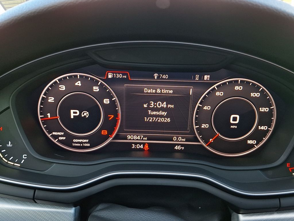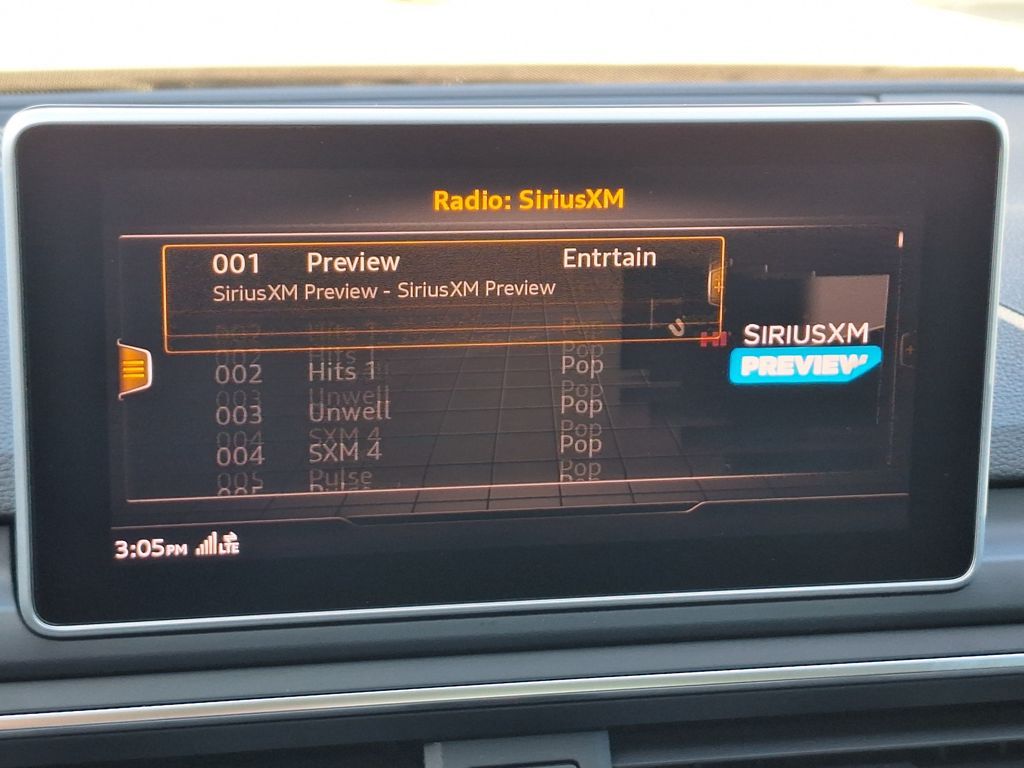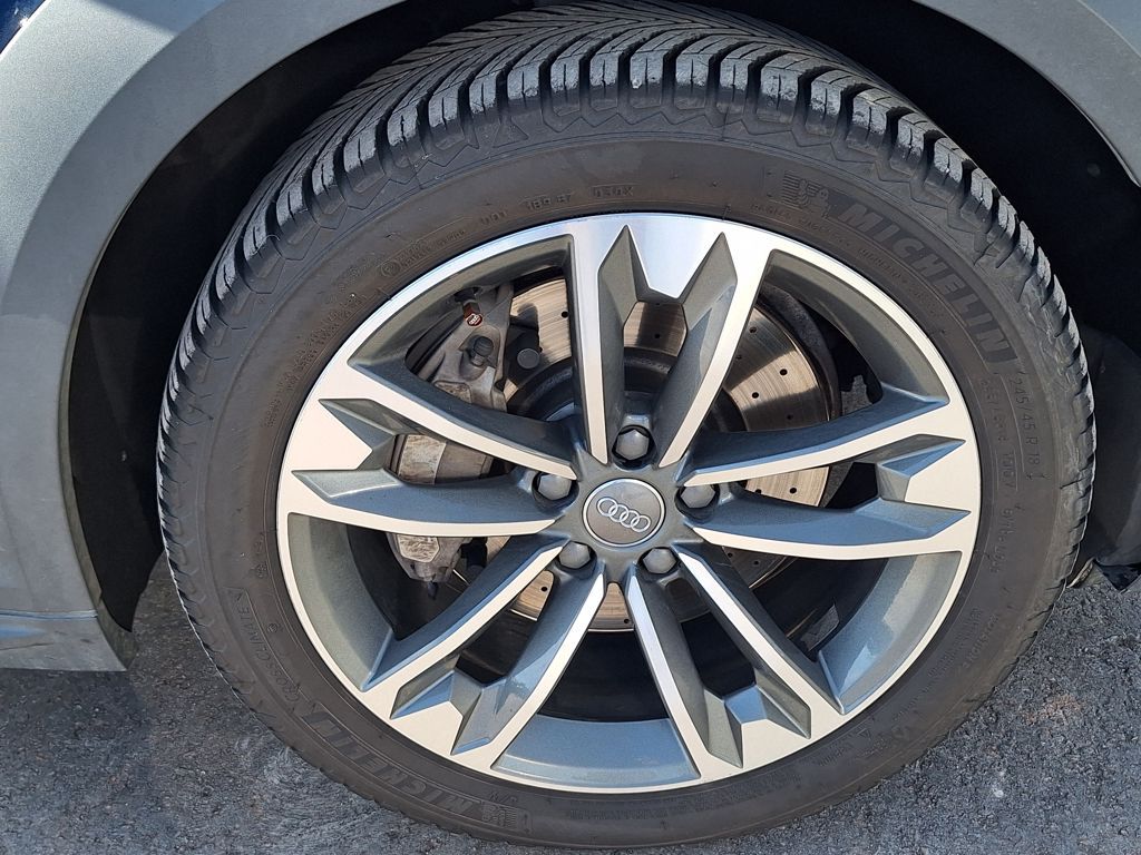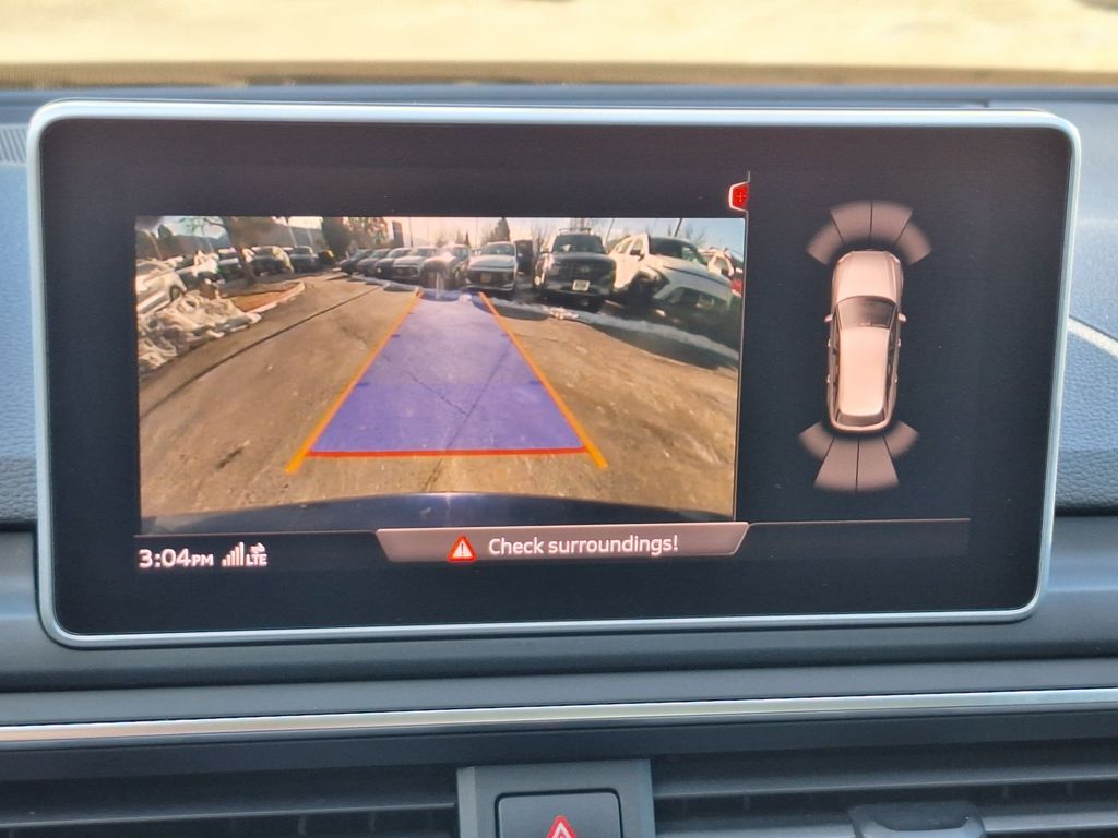 ABS brakes, Alloy wheels, Compass, Electronic Stability Control, Front dual zone A/C, Heated door mirrors, Heated Front Seats, Heated front seats, Illuminated entry, Low tire pressure warning, Power Liftgate, Power moonroof, Remote keyless entry, Traction control, 10 Speakers, 4-Wheel Disc Brakes, Adaptive suspension, Air Conditioning, AM/FM radio, Audi smartphone interface (Apple CarPlay/Android Auto), Auto-dimming Rear-View mirror, Automatic temperature control, Brake assist, Bumpers: body-color, Delay-off headlights, Driver door bin, Driver vanity mirror, Dual front impact airbags, Dual front side impact airbags, Emergency communication system: Audi connect CARE, Exterior Parking Camera Rear, Four wheel independent suspension, Front anti-roll bar, Front Bucket Seats, Front Center Armrest, Front fog lights, Front reading lights, Fully automatic headlights, Garage door transmitter: HomeLink, Headlight cleaning, High intensity discharge headlights: Xenon plus, Knee airbag, Leather Seating Surfaces, Leather Shift Knob, Leather steering wheel, Occupant sensing airbag, Outside temperature display, Overhead airbag, Overhead console, Panic alarm, Passenger door bin, Passenger vanity mirror, Power door mirrors, Power driver seat, Power passenger seat, Power steering, Power windows, Radio data system, Radio: Audi Sound System, Rain sensing wipers, Rear air conditioning, Rear anti-roll bar, Rear fog lights, Rear reading lights, Rear seat center armrest, Rear window defroster, Rear window wiper, Remote CD player, Roof rack: rails only, Speed control, Speed-sensing steering, Speed-Sensitive Wipers, Split folding rear seat, Spoiler, Steering wheel mounted audio controls, Tachometer, Telescoping steering wheel, Tilt steering wheel, Trip computer, Turn signal indicator mirrors, Variably intermittent wipers, and Wheels: 7.5" x 18" 5-V-Spoke Design.