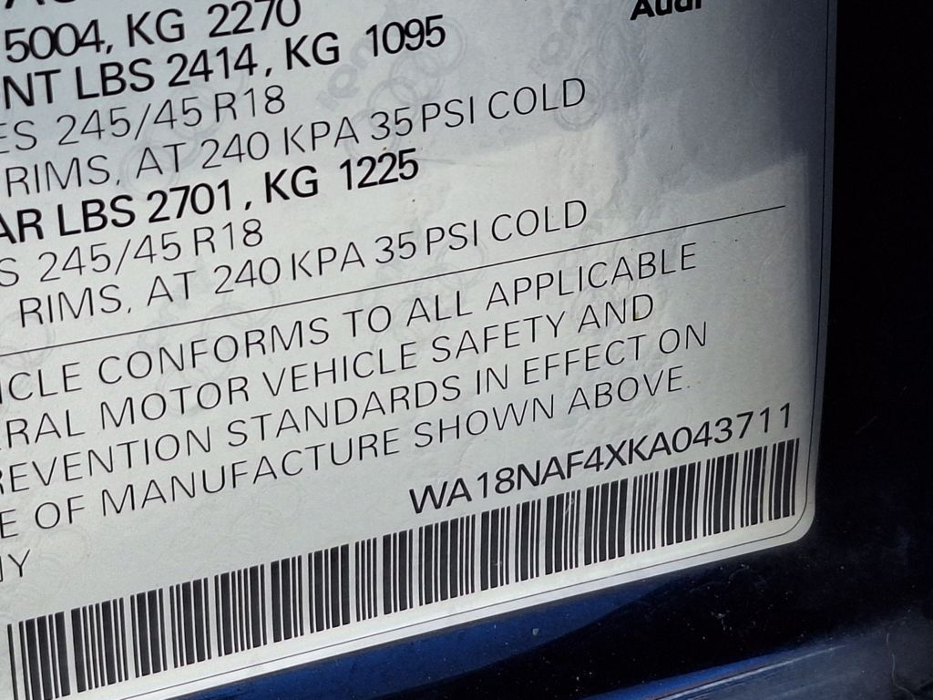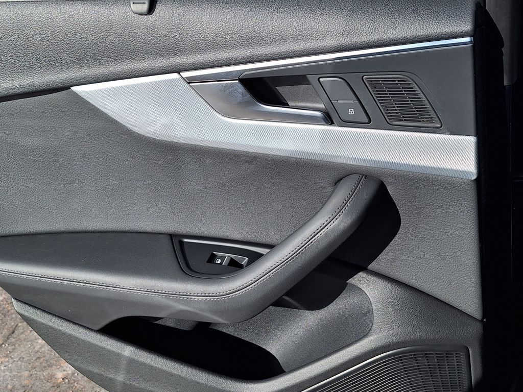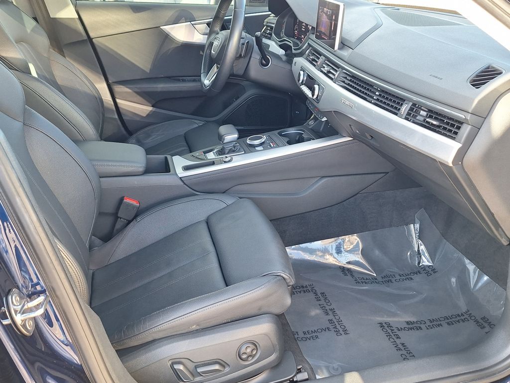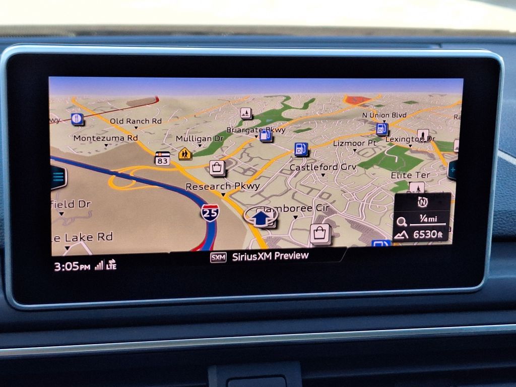 ABS brakes, Alloy wheels, Compass, Electronic Stability Control, Front dual zone A/C, Heated door mirrors, Heated Front Seats, Heated front seats, Illuminated entry, Low tire pressure warning, Power Liftgate, Power moonroof, Remote keyless entry, Traction control, 10 Speakers, 4-Wheel Disc Brakes, Adaptive suspension, Air Conditioning, AM/FM radio, Audi smartphone interface (Apple CarPlay/Android Auto), Auto-dimming Rear-View mirror, Automatic temperature control, Brake assist, Bumpers: body-color, Delay-off headlights, Driver door bin, Driver vanity mirror, Dual front impact airbags, Dual front side impact airbags, Emergency communication system: Audi connect CARE, Exterior Parking Camera Rear, Four wheel independent suspension, Front anti-roll bar, Front Bucket Seats, Front Center Armrest, Front fog lights, Front reading lights, Fully automatic headlights, Garage door transmitter: HomeLink, Headlight cleaning, High intensity discharge headlights: Xenon plus, Knee airbag, Leather Seating Surfaces, Leather Shift Knob, Leather steering wheel, Occupant sensing airbag, Outside temperature display, Overhead airbag, Overhead console, Panic alarm, Passenger door bin, Passenger vanity mirror, Power door mirrors, Power driver seat, Power passenger seat, Power steering, Power windows, Radio data system, Radio: Audi Sound System, Rain sensing wipers, Rear air conditioning, Rear anti-roll bar, Rear fog lights, Rear reading lights, Rear seat center armrest, Rear window defroster, Rear window wiper, Remote CD player, Roof rack: rails only, Speed control, Speed-sensing steering, Speed-Sensitive Wipers, Split folding rear seat, Spoiler, Steering wheel mounted audio controls, Tachometer, Telescoping steering wheel, Tilt steering wheel, Trip computer, Turn signal indicator mirrors, Variably intermittent wipers, and Wheels: 7.5" x 18" 5-V-Spoke Design.