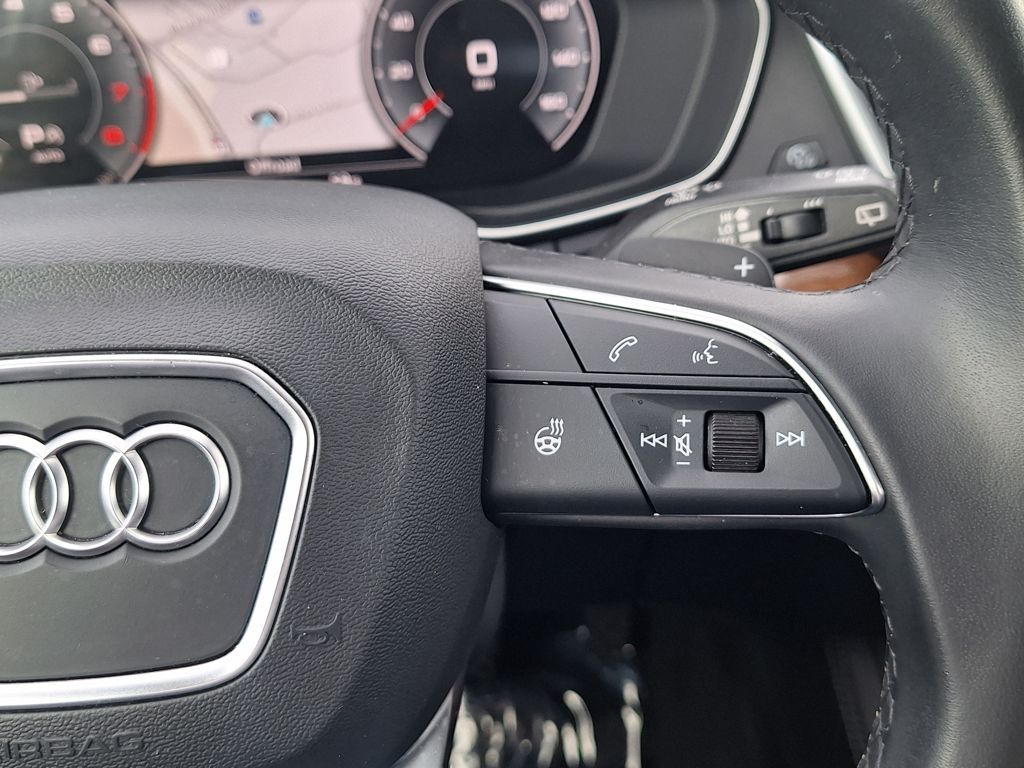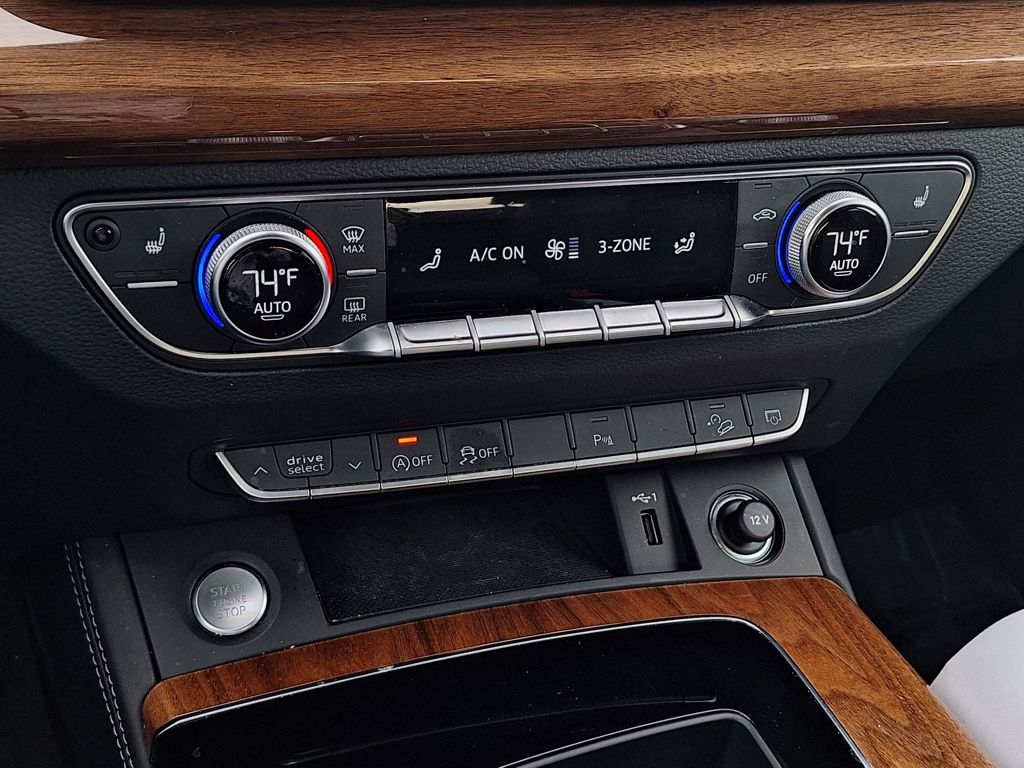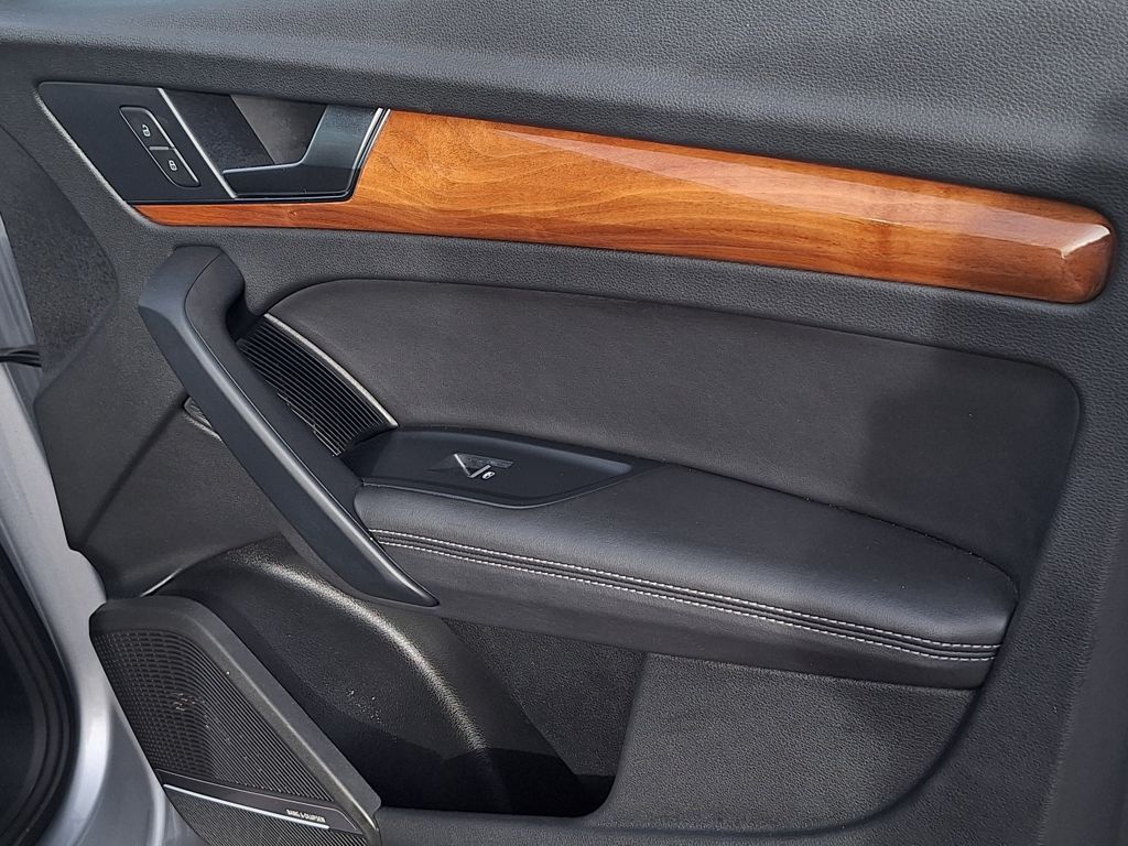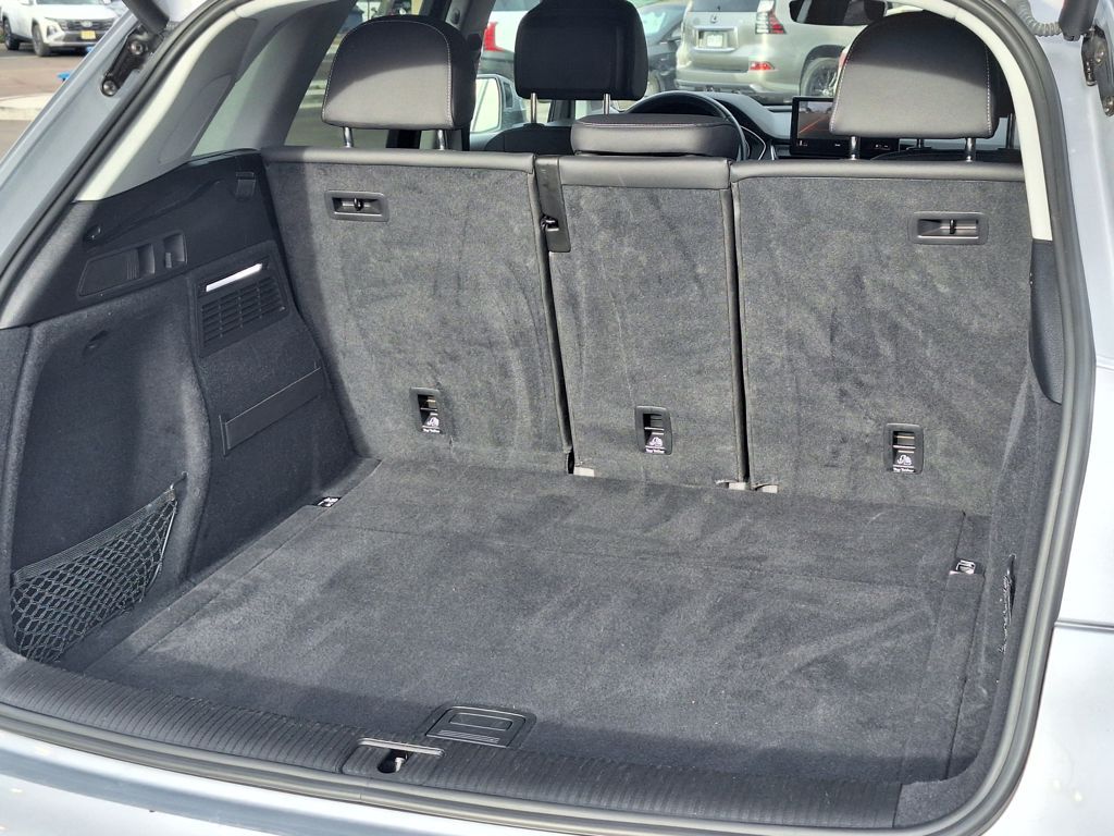 Black Leather, 10 Speakers, 4-Wheel Disc Brakes, 5.302 Axle Ratio, ABS brakes, Air Conditioning, Alloy wheels, AM/FM radio, Auto-dimming Rear-View mirror, Automatic temperature control, Brake assist, Bumpers: body-color, Compass, Delay-off headlights, Driver door bin, Driver vanity mirror, Dual front impact airbags, Dual front side impact airbags, Electronic Stability Control, Emergency communication system: Audi connect CARE, Exterior Parking Camera Rear, Four wheel independent suspension, Front anti-roll bar, Front Bucket Seats, Front Center Armrest, Front dual zone A/C, Front fog lights, Front reading lights, Garage door transmitter: HomeLink, Genuine wood console insert, Genuine wood dashboard insert, Genuine wood door panel insert, Heated 8-Way Power Front Bucket Seats, Heated door mirrors, Heated front seats, Illuminated entry, Leather Seating Surfaces, Leather Shift Knob, Low tire pressure warning, Occupant sensing airbag, Outside temperature display, Overhead airbag, Overhead console, Panic alarm, Passenger door bin, Passenger vanity mirror, Power door mirrors, Power driver seat, Power Liftgate, Power passenger seat, Power steering, Power windows, Radio data system, Radio: Audi Sound System, Rain sensing wipers, Rear air conditioning, Rear anti-roll bar, Rear fog lights, Rear reading lights, Rear seat center armrest, Rear window defroster, Rear window wiper, Remote keyless entry, Roof rack, Security system, Speed control, Speed-sensing steering, Speed-Sensitive Wipers, Split folding rear seat, Spoiler, Steering wheel mounted audio controls, Tachometer, Telescoping steering wheel, Tilt steering wheel, Traction control, Trip computer, Turn signal indicator mirrors, Variably intermittent wipers, and Wheels: 18" 5-Arm-Turbine Design.