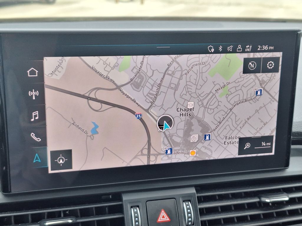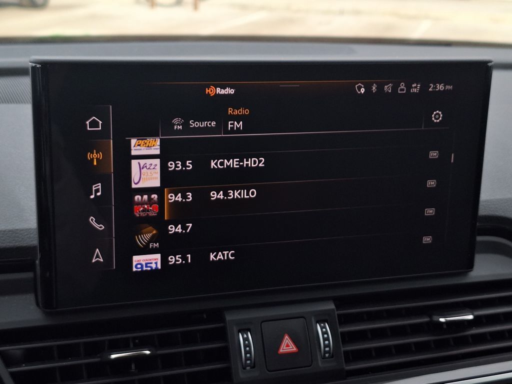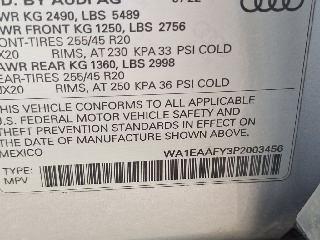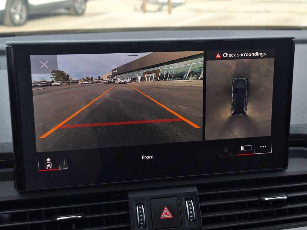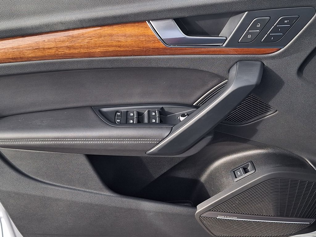 Black Leather, 10 Speakers, 4-Wheel Disc Brakes, 5.302 Axle Ratio, ABS brakes, Air Conditioning, Alloy wheels, AM/FM radio, Auto-dimming Rear-View mirror, Automatic temperature control, Brake assist, Bumpers: body-color, Compass, Delay-off headlights, Driver door bin, Driver vanity mirror, Dual front impact airbags, Dual front side impact airbags, Electronic Stability Control, Emergency communication system: Audi connect CARE, Exterior Parking Camera Rear, Four wheel independent suspension, Front anti-roll bar, Front Bucket Seats, Front Center Armrest, Front dual zone A/C, Front fog lights, Front reading lights, Garage door transmitter: HomeLink, Genuine wood console insert, Genuine wood dashboard insert, Genuine wood door panel insert, Heated 8-Way Power Front Bucket Seats, Heated door mirrors, Heated front seats, Illuminated entry, Leather Seating Surfaces, Leather Shift Knob, Low tire pressure warning, Occupant sensing airbag, Outside temperature display, Overhead airbag, Overhead console, Panic alarm, Passenger door bin, Passenger vanity mirror, Power door mirrors, Power driver seat, Power Liftgate, Power passenger seat, Power steering, Power windows, Radio data system, Radio: Audi Sound System, Rain sensing wipers, Rear air conditioning, Rear anti-roll bar, Rear fog lights, Rear reading lights, Rear seat center armrest, Rear window defroster, Rear window wiper, Remote keyless entry, Roof rack, Security system, Speed control, Speed-sensing steering, Speed-Sensitive Wipers, Split folding rear seat, Spoiler, Steering wheel mounted audio controls, Tachometer, Telescoping steering wheel, Tilt steering wheel, Traction control, Trip computer, Turn signal indicator mirrors, Variably intermittent wipers, and Wheels: 18" 5-Arm-Turbine Design.