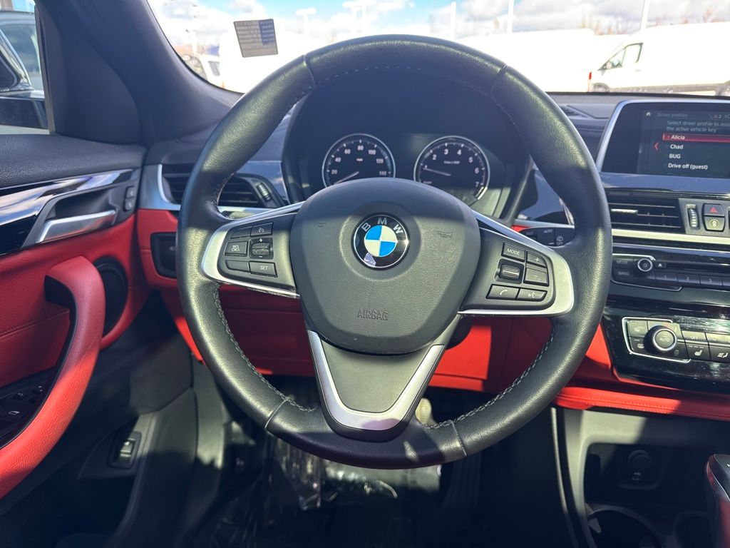 Convenience Package (Auto-Dimming Interior & Exterior Mirrors, Auto-Dimming Rear-View Mirror, Comfort Access Keyless Entry, Lumbar Support, Panoramic Moonroof, Power-Folding Mirrors, SiriusXM Satellite Radio, and Universal Garage-Door Opener), 3.20 Axle Ratio, 4-Wheel Disc Brakes, 7 Speakers, ABS brakes, Air Conditioning, Alloy wheels, AM/FM radio, Apple CarPlay, Apple CarPlay Compatibility, Automatic temperature control, Brake assist, Bumpers: body-color, CD player, Compass, Delay-off headlights, Driver door bin, Driver vanity mirror, Dual front impact airbags, Dual front side impact airbags, DVD Area Coding (North America), Electronic Stability Control, Emergency communication system: BMW Assist eCall, Exterior Parking Camera Rear, Four wheel independent suspension, Front anti-roll bar, Front Bucket Seats, Front Center Armrest, Front dual zone A/C, Front fog lights, Front reading lights, Front Sport Bucket Seats, Heated door mirrors, Heated Front Seats, Heated Front Seats & Steering Wheel, Heated Steering Wheel, Hi-Fi Sound System, Illuminated entry, In-Dash CD Player, Knee airbag, Leather Shift Knob, Low tire pressure warning, Memory seat, Navigation System, Occupant sensing airbag, Outside temperature display, Overhead airbag, Panic alarm, Passenger door bin, Passenger vanity mirror, Power door mirrors, Power driver seat, Power Front Seats, Power Liftgate, Power passenger seat, Power steering, Power windows, Radio Control US, Radio data system, Radio: Professional w/Bluetooth/USB, Rain sensing wipers, Rear anti-roll bar, Rear reading lights, Rear seat center armrest, Rear window defroster, Rear window wiper, Remote keyless entry, Satin Aluminum Roof Rails, Security system, SensaTec Upholstery, Speed control, Speed-sensing steering, Speed-Sensitive Wipers, Split folding rear seat, Spoiler, Steering wheel mounted audio controls, Tachometer, Telescoping steering wheel, Tilt steering wheel, Traction control, Trip computer, Turn signal indicator mirrors, Variably intermittent wipers, and Wheels: 18" x 7.5" Y-Spoke (Style 466)