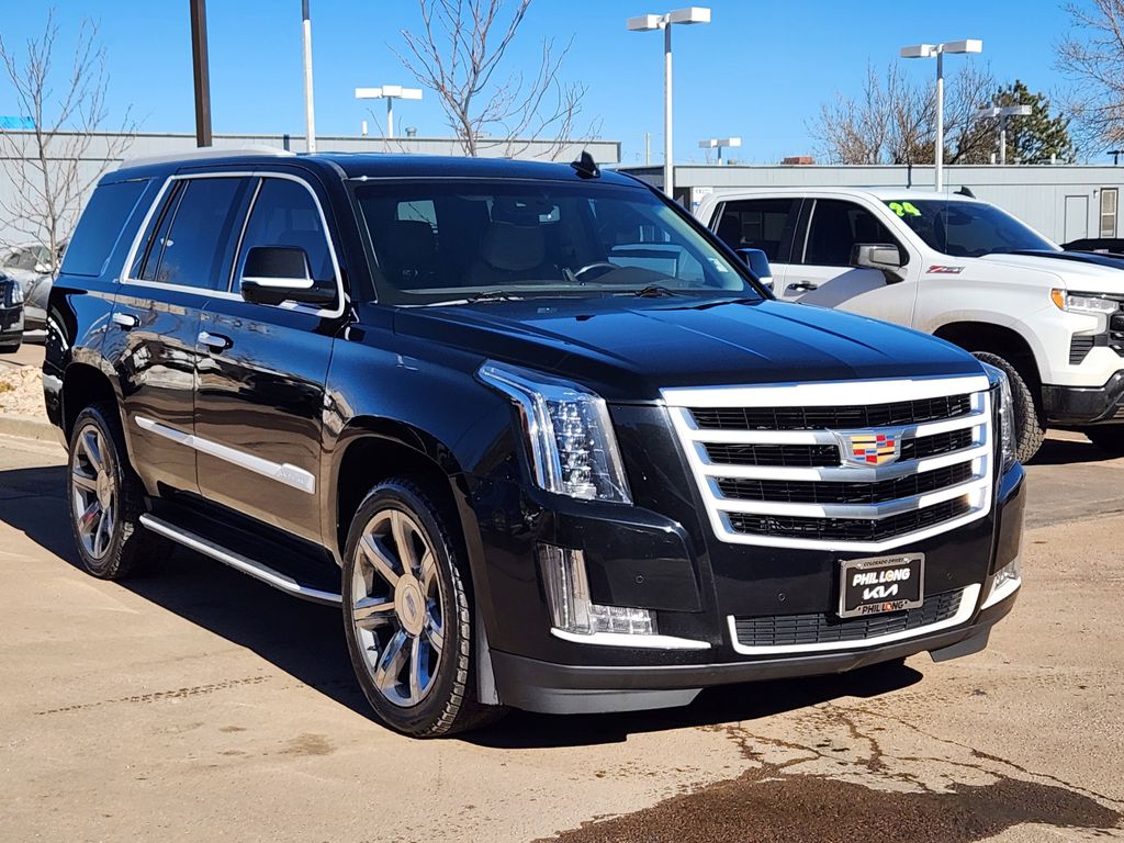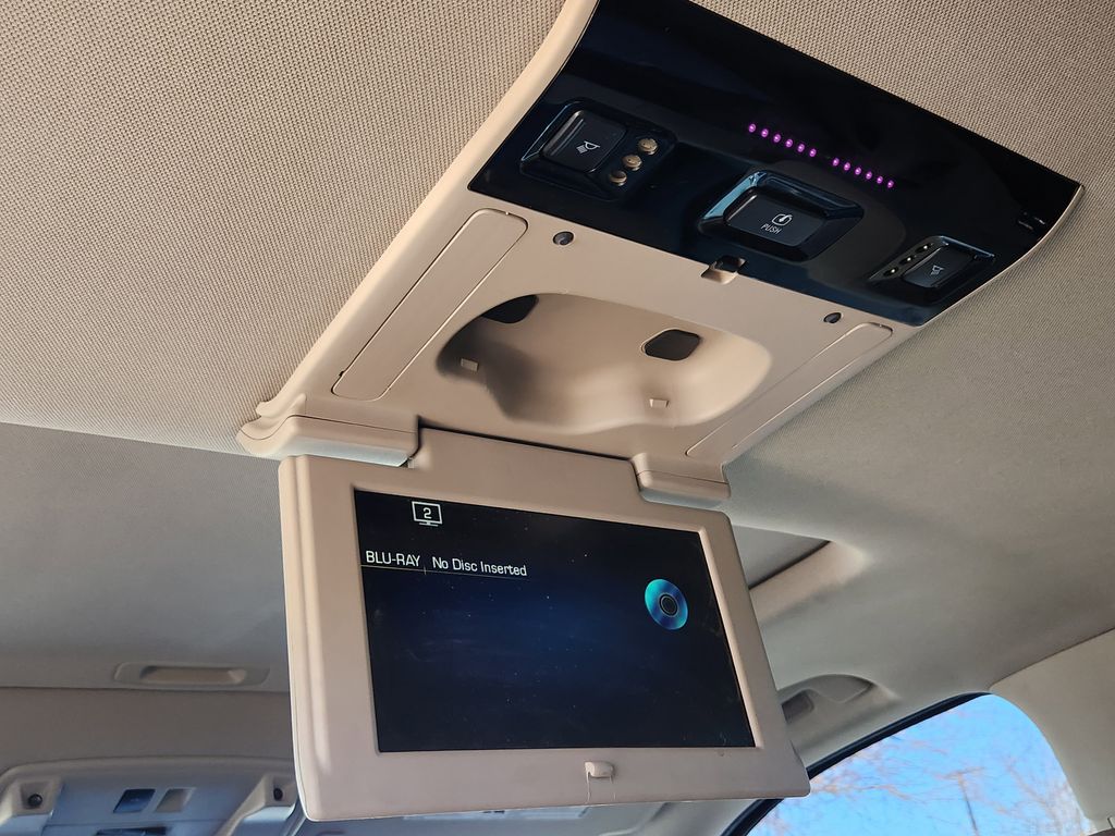 ENTERTAINMENT SYSTEM, REAR SEAT includes 9 screen DVD player (Blu-Ray capable) with remote control, two 2-channel wireless infrared headphones, auxiliary audio/video jacks on rear of center console, sound compression, CD-R and CR-R/W capability, LED backlighting display, MP3 capable, CADILLAC CUE INFORMATION AND MEDIA CONTROL SYSTEM WITH EMBEDDED NAVIGATION AM/FM stereo, 8 diagonal color information display featuring touch response, haptic feedback, gesture recognition and Natural Voice Recognition. Five USB ports, including one in the articulating storage door/bin, SD card slot and auxiliary audio port (STD), ENGINE, 6.2L V8 WITH ACTIVE FUEL MANAGEMENT Spark Ignition Direct Injection (SIDI) and Variable Valve Timing (VVT), includes aluminum block construction (420 hp [313.2 kW] @ 5600 rpm, 460 lb-ft of torque [621 N-m] @ 4100 rpm) (STD), TRANSMISSION, 8-SPEED AUTOMATIC, 8L90 (STD). Cadillac Luxury with Black Raven exterior and Shale w/Cocoa Accents interior features a 8 Cylinder Engine with 420 HP at 5600 RPM*.