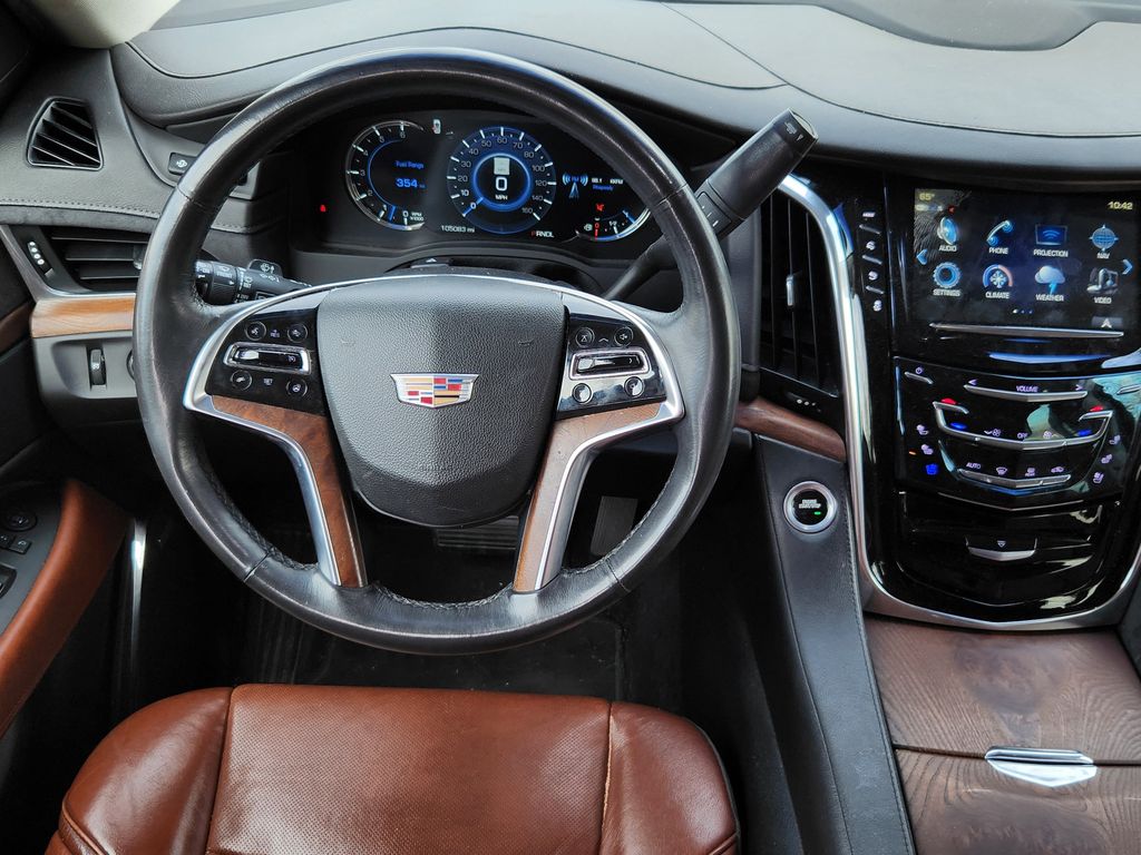 ONE OWNER Black Raven 2018 Cadillac Escalade Premium Luxury 4WD 10-Speed Automatic with Overdrive 6.2L Variable Valve Timing V8 SIDI 4WD, Kona Brown With Jet Black Accents Leather, 12-Way Power Front Passenger Seat Adjuster, 2-Position Memory For Driver's Seat Adjuster, Adaptive Full-Speed Range Cruise Control, Automatic Safety Belt Tightening, Bose Centerpoint 16 Speaker Surround Sound System, Driver Assist Package, Electronic Powered Parking Brake, Forward Collision Alert, Forward/Reverse Automatic Braking, Heated & Cooled Front Bucket Seats, Illuminated Door Handles, Inclination Sensor, IntelliBeam Automatic High Beam On/Off, Lane Change Alert w/Side Blind Zone Alert, Lane Keep Assist w/Lane Departure Warning, Navigation System, Power Tilt-Sliding Sunroof w/Express-Open/Close, Preferred Equipment Group 1SC, Rear Camera Mirror, Rear Camera Washer, Rear Cross-Traffic Alert, Rear Seat Entertainment System, Reconfigurable 4-Color Head-Up Display, Safety Alert Seat, Second Row Bucket Seats, Theft-Deterrent Alarm System, Theft-Deterrent Package, VAC Power 17" Disc Brakes, Vehicle Interior Movement Sensor.
