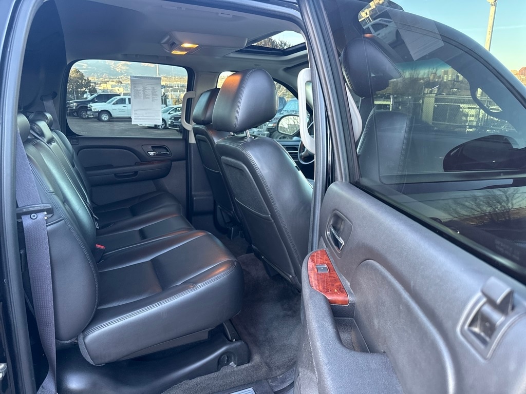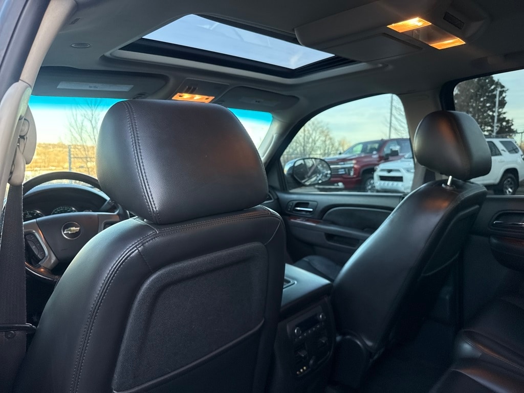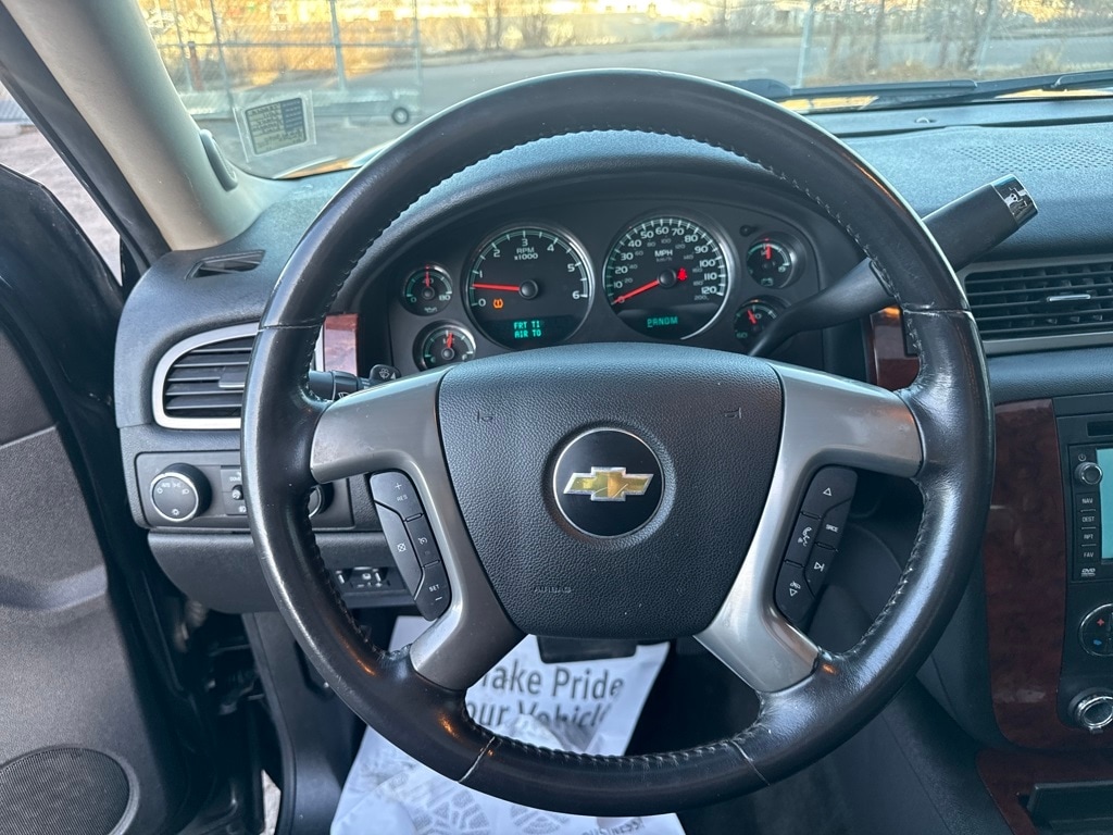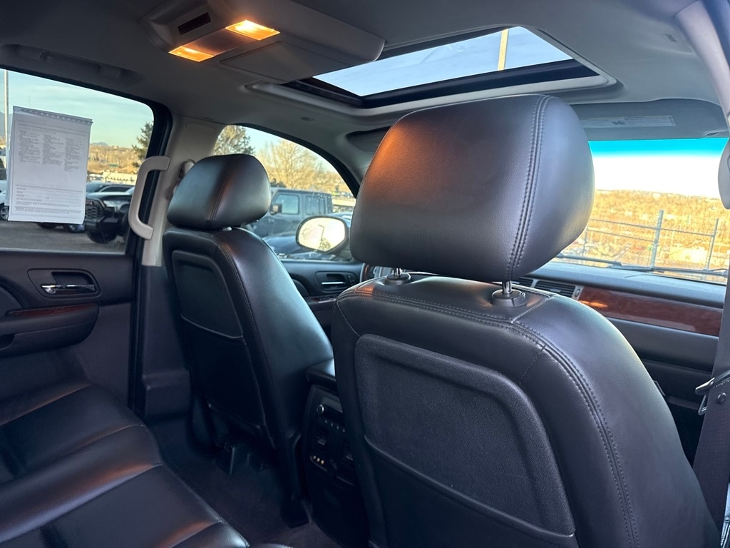 Autoride Suspension Package (Automatic Air Level Control), Heavy-Duty Trailering Package (Heavy-Duty Air-to-Oil External Engine Oil Cooler and Heavy-Duty Air-to-Oil External Transmission Oil Cooler), Preferred Equipment Group 1LZ (Auto-Dimming Inside Rear View Mirror, Bose Centerpoint Surround Sound 8-Speaker System, Bright Chrome Grille Insert, Chrome Door Handles, Color-Keyed Rear Fascia, Dual-Zone Automatic Climate Control, Front Halogen Fog Lamps, Heated & Cooled Driver & Front Passenger Seats, Heavy-Duty Rear Locking Differential, Power-Adjustable Heated Outside Mirrors, Power-Adjustable Pedals For Accelerator & Brake, Rear-View Camera System, Remote Vehicle Starter System, Ultrasonic Rear Parking Assist, and Universal Home Remote), Sun, Entertainment & Destinations Package (AM/FM Stereo w/MP3/CD/DVD/Navigation, Power Tilt-Sliding Sunroof w/Express-Open, Rear Seat Entertainment System, USB Port, and XM NavTraffic), 6-Speed Automatic, 4WD, 12-Way Power Driver Seat Adjuster, 20" x 8.5" Polished Aluminum Wheels, 4-Wheel Disc Brakes, 8 Speakers, ABS brakes, Adjustable pedals, Air Conditioning, Alloy wheels, AM/FM radio: XM, AM/FM Stereo w/MP3/CD/Navigation, Auto-dimming door mirrors, Auto-dimming Rear-View mirror, Auto-leveling suspension, Automatic temperature control, Body-Colored Exterior Components, Bodyside moldings, Brake assist, Bumpers: body-color, CD player, Compass, Custom Perforated Leather Appointed Seat Trim, Delay-off headlights, Driver door bin, Driver vanity mirror, Dual front impact airbags, Dual front side impact airbags, Electronic Stability Control, Emergency communication system: OnStar Directions & Connections, Exterior Parking Camera Rear, Floor Console, Front anti-roll bar, Front Bucket Seats, Front Center Armrest, Front Console Organizer, Front dual zone A/C, Front fog lights, Front License Plate Bracket, Front Passenger Seat Adjusters, Front reading lights, Front Reclining Bucket Seats, Front wheel independent suspension, Fully automatic headlights, Garage door transmitter, Heated door mirrors, Heated front seats, Illuminated entry, Integrated Trailer Brake Controller, Low tire pressure warning, Memory seat, Navigation System, Occupant sensing airbag, Outside temperature display, Overhead airbag, Overhead console, Panic alarm, Passenger door bin, Passenger vanity mirror, Pedal memory, Polished Exhaust Tips, Power door mirrors, Power driver seat, Power passenger seat, Power steering, Power windows, Radio data system, Rear anti-roll bar, Rear audio controls, Rear reading lights, Rear seat center armrest, Rear step bumper, Rear window defroster, Remote keyless entry, Roof rack, Security system, Speed control, Split folding rear seat, Steering wheel mounted audio controls, Tachometer, Theft-Deterrent Wheel, Tilt steering wheel, Traction control, Trip computer, Turn signal indicator mirrors, Variably intermittent wipers, Ventilated front seats, and Voltmeter.