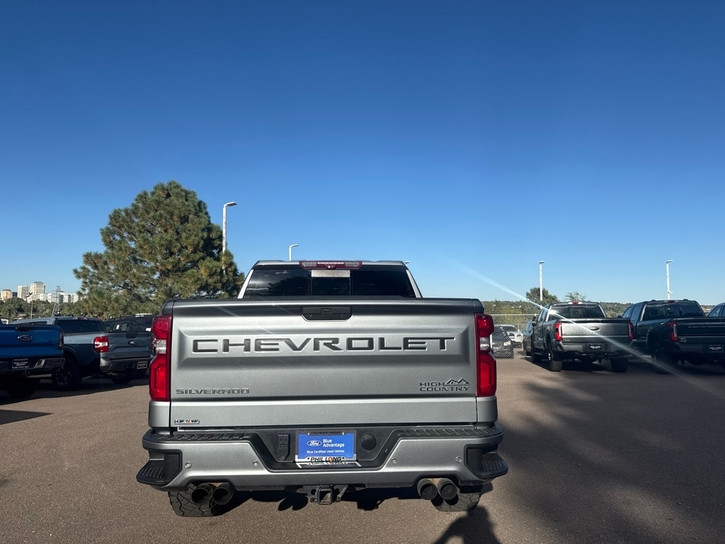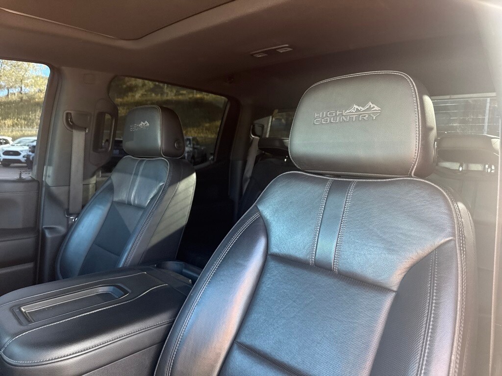 High Country Deluxe (All-Weather Floor Liner (LPO) and Power Sunroof), Preferred Equipment Group 3LZ (10-Way Power Driver Seat w/Lumbar, 10-Way Power Passenger Seat Adjuster w/Lumbar, 12-Volt Rear Auxiliary Power Outlet, 120-Volt Bed Mounted Power Outlet, 120-Volt Instrument Panel Power Outlet, 2nd Row Heated Outboard Seats, 4G LTE Wi-Fi Hot Spot Capable, 8" Driver Information Center, Advanced Trailering System, Auto-Dimming Inside Rear-View Mirror, Auxiliary External Transmission Oil Cooler, Bluetooth® For Phone, Chevrolet Connected Access Capable, Chevytec Spray-On Black Bedliner, Chrome Assist Steps, Chrome Grille, Chrome Recovery Hooks, Color-Keyed Carpeting Floor Covering, Compass, Deep-Tinted Glass, Driver Memory, Dual Exhaust w/Polished Outlets, Electric Rear-Window Defogger, Electrical Lock Control Steering Column, Floor Mounted Center Console, Front Carpeted Floor Mats, Front LED Fog Lamps, HD Radio, HD Rear Vision Camera, Heated Driver & Front Outboard Passenger Seats, Heated Steering Wheel, Heavy-Duty Rear Locking Differential, Hitch Guidance, Hitch Guidance w/Hitch View, Integrated Trailer Brake Controller, Keyless Open & Start, Lane Change Alert w/Side Blind Zone Alert, Leather Wrapped Steering Wheel, LED Cargo Area Lighting, Manual Tilt/Telescoping Steering Column, OnStar & Chevrolet Connected Services Capable, Outside Heated Power-Adjustable Mirrors, Painted Mirror Caps, Power Door Locks, Power Front Passenger Windows w/Express Up/Down, Power Front Windows w/Driver Express Up/Down, Power Rear Windows w/Express Down, Power Sliding Rear Window w/Rear Defogger, Rear Carpeted Floor Mats, Rear Cross Traffic Alert, Rear Dual USB Charging-Only Ports, Rear Wheelhouse Liners, Remote Vehicle Starter System, SiriusXM w/360L, Steering Wheel Audio Controls, Steering Wheel Mounted Electronic Cruise Control, Theft Deterrent System (Unauthorized Entry), Ultrasonic Front & Rear Park Assist, Universal Home Remote, Ventilated Driver & Front Passenger Seats, and Wireless Charging), Safety Package II (Adaptive Cruise Control - Camera, Automatic Emergency Braking, Following Distance Indicator, Forward Collision Alert, Front Pedestrian Braking, IntelliBeam Automatic High Beam On/Off, Lane Keep Assist w/Lane Departure Warning, and Safety Alert Seat), Technology Package (15" Diagonal Multicolor Head-Up Display, Bed View Camera, HD Surround Vision w/2 Trailer View Camera Provisions, and Rear Camera Mirror), Trailering Package, Up-Level Rear Seat w/Storage Package, 10-Speed Automatic, 4WD, Jet Black Leather, 170 Amps Alternator, 3.23 Rear Axle Ratio, 4-Wheel Disc Brakes, 7 Speakers, ABS brakes, Air Conditioning, Alloy wheels, AM/FM radio: SiriusXM with 360L, Apple CarPlay/Android Auto, Auto-dimming door mirrors, Auto-dimming Rear-View mirror, Automatic temperature control, Brake assist, Bumpers: body-color, Delay-off headlights, Driver door bin, Driver vanity mirror, Dual front impact airbags, Dual front side impact airbags, Electronic Stability Control, Front anti-roll bar, Front Bucket Seats, Front Center Armrest, Front dual zone A/C, Front fog lights, Front License Plate Kit, Front reading lights, Front wheel independent suspension, Fully automa