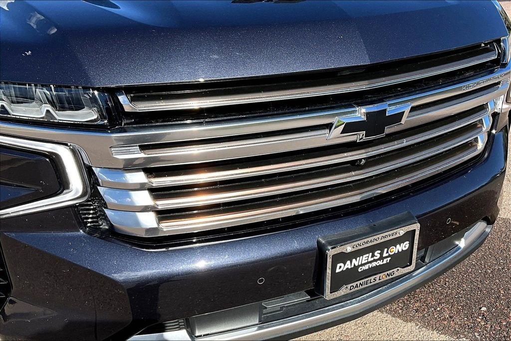 Tahoe High Country, 4D Sport Utility, EcoTec3 6.2L V8, 10-Speed Automatic with Overdrive, 4WD, Dark Ash Metallic, Jet Black Leather, 15 Diagonal Multi-Color Head-Up Display, 1st & 2nd Row Color-Keyed Carpeted Floor Mats, 2-Speed Active Electronic AutoTrac Transfer Case, 3rd Row 60/40 Power-Folding Split-Bench Seat, Bose 10-Speaker Centerpoint Surround Audio Sys Ft, Bright Front & Rear Door Sill Plates, Chrome Door Handles w/Body-Color Strip, Color-Keyed Carpeting Floor Covering, Driver & Front Outboard Passenger Airbags, Dual Exhaust System, Dual-Pane Power Panoramic Sunroof, Enhanced Automatic Emergency Braking, Enhanced Driver Information Center, Floor Console, Hands-Free Rear Power Programmable Liftgate, HD Surround Vision, Heated 2nd Row Outboard Seats, Heated Steering Wheel, Hill Descent Control, Infotainment Display, Inside Rearview Auto-Dimming Rear Camera Mirror, Lane Change Alert w/Side Blind Zone Alert, LED Daytime Running Lamps, Memory Settings, Outside Heated Power-Adjustable Mirrors, Power Release 2nd Row Bucket Seats, Power Tilt & Telescopic Steering Column, Power-Retractable Assist Steps, Preferred Equipment Group 3LZ, Premium Package 2, Rear Camera Mirror Washer, Rear Cross Traffic Alert, Rear Pedestrian Alert, Remote Start, Safety Alert Seat, SiriusXM Radio w/360L, Universal Home Remote, Wireless Charging, Wrapped Steering Wheel.Dark Ash Metallic 2023 Chevrolet Tahoe High Country 4WD 10-Speed Automatic with Overdrive EcoTec3 6.2L V8