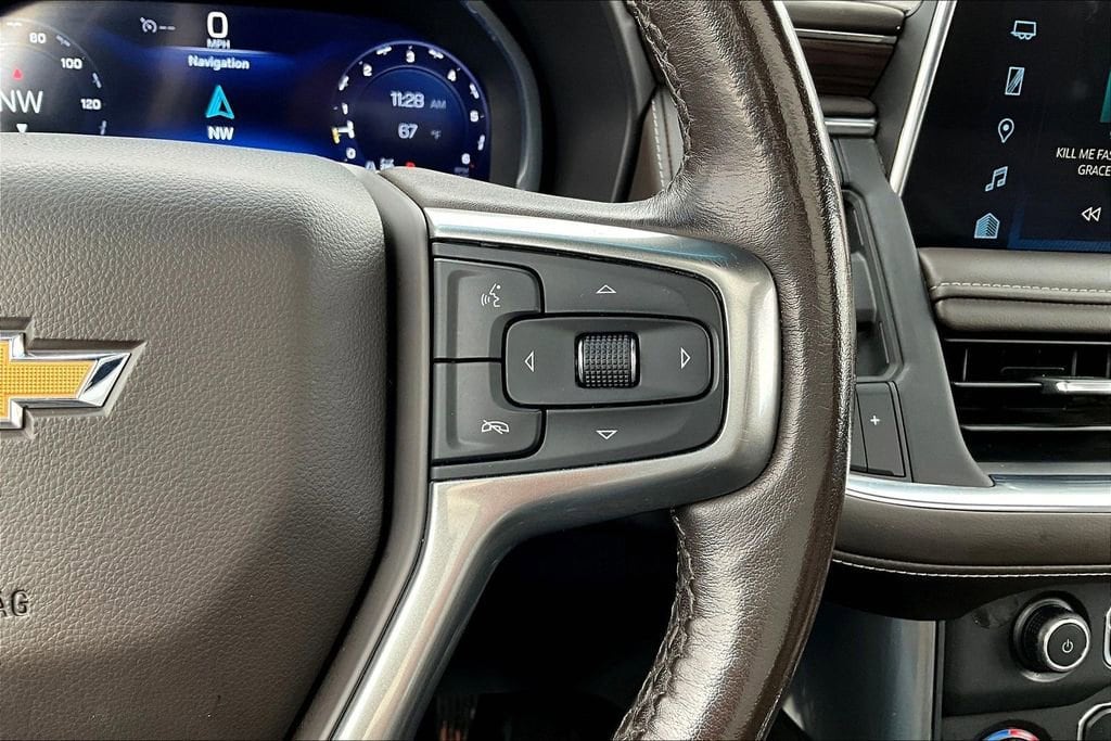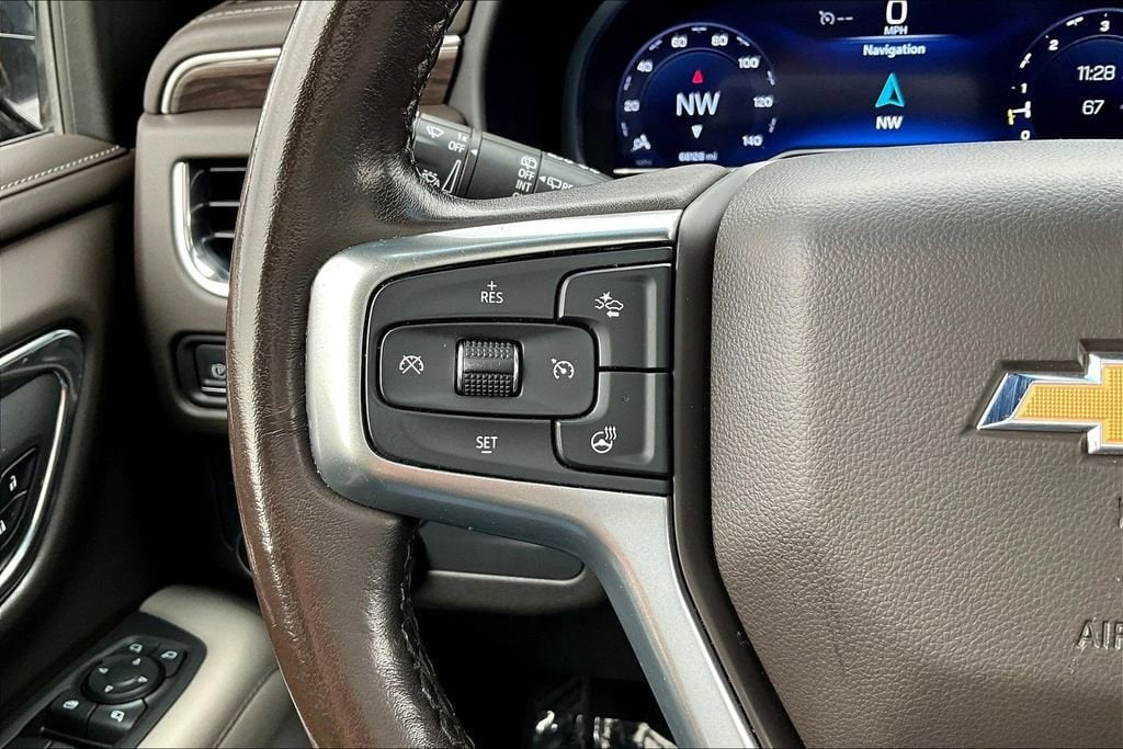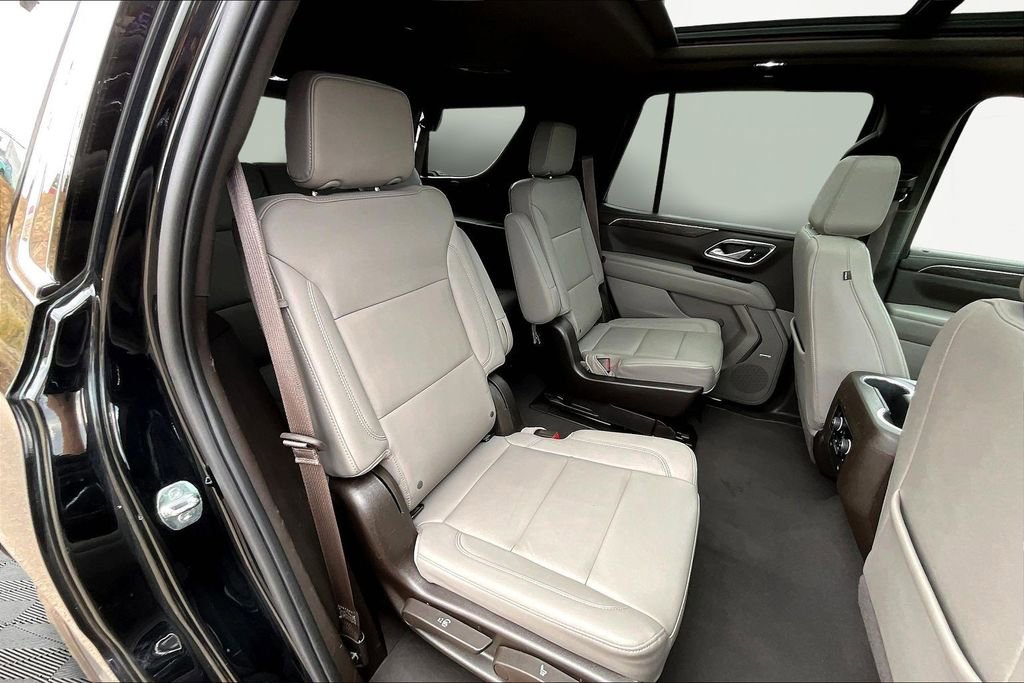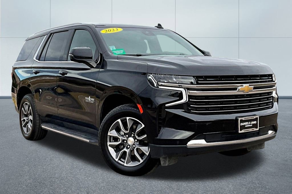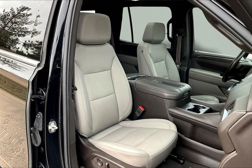 Tahoe LT, 4D Sport Utility, EcoTec3 5.3L V8, 10-Speed Automatic with Overdrive, 4WD, Black, Gideon/Very Dark Atmosphere Leather, 2nd Row Pwr Release 60/40 Split-Folding Bench Seat, 3rd Row 60/40 Power-Folding Split-Bench Seat, Driver Alert Package, Dual-Pane Power Panoramic Sunroof, HD Surround Vision, Heated 2nd Row Outboard Seats, Heated Steering Wheel, Lane Change Alert w/Side Blind Zone Alert, License Plate Front Mounting Package, LT Signature Plus Package, Luxury Package, Memory Settings, Outside Heated Power-Adjustable Mirrors, Power Tilt & Telescopic Steering Column, Rear Cross Traffic Alert, Rear Pedestrian Alert, Texas Edition, Texas Edition Badging.Black 2023 Chevrolet Tahoe LT 4WD 10-Speed Automatic with Overdrive EcoTec3 5.3L V8