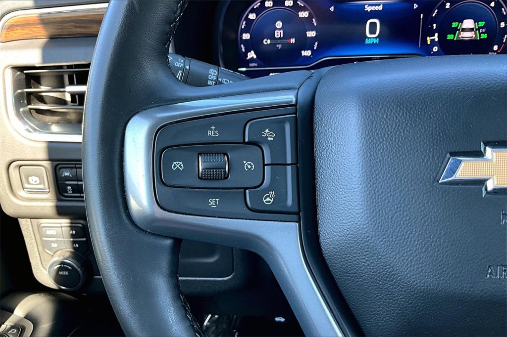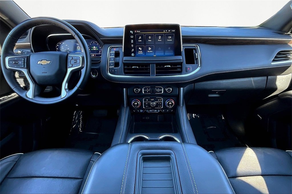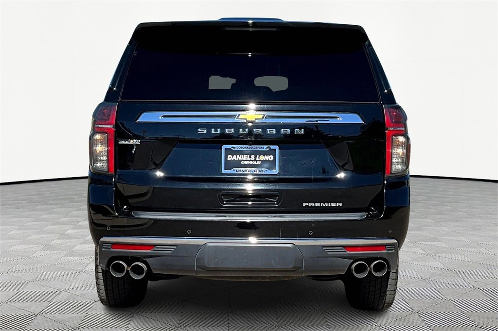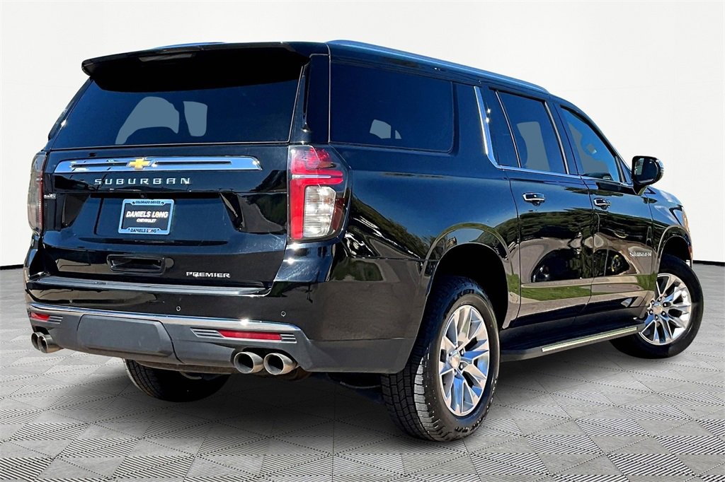 Suburban Premier, 4D Sport Utility, EcoTec3 5.3L V8, 10-Speed Automatic with Overdrive, 4WD, Black, Black Leather, 12-Way Power Driver & Passenger Seat Adjusters, 1st & 2nd Row Color-Keyed Carpeted Floor Mats, 2-Speed Active Electronic AutoTrac Transfer Case, 3rd Row 60/40 Power-Folding Split-Bench, Auto-Dimming Inside Rear-View Mirror, Bose 10-Speaker Surround w/CenterPoint, Bright Front & Rear Door Sill Plates, Chrome Door Handles w/Body-Color Strip, Chrome Mirror Caps, Color-Keyed Carpeting Floor Covering, Driver & Front Outboard Passenger Airbags, Dual Exhaust System, Enhanced Driver Information Center, Floor Console, Hands-Free Rear Power Programmable Liftgate, Heated 2nd Row Outboard Seats, Heated Driver & Front Passenger Seats, Heated Steering Wheel, Hill Descent Control, Infotainment Display, Lane Change Alert w/Side Blind Zone Alert, LED Daytime Running Lamps, Memory Settings, Navigation System, Outside Heated Power-Adjustable Mirrors, Perforated Heated & Ventilated Seats, Power Release 2nd Row Bucket Seats, Power Tilt & Telescopic Steering Column, Preferred Equipment Group 1LZ, Rear Cross Traffic Alert, Remote Start, Safety Alert Seat, SiriusXM w/360L, Universal Home Remote, Wireless Charging, Wrapped Steering Wheel.