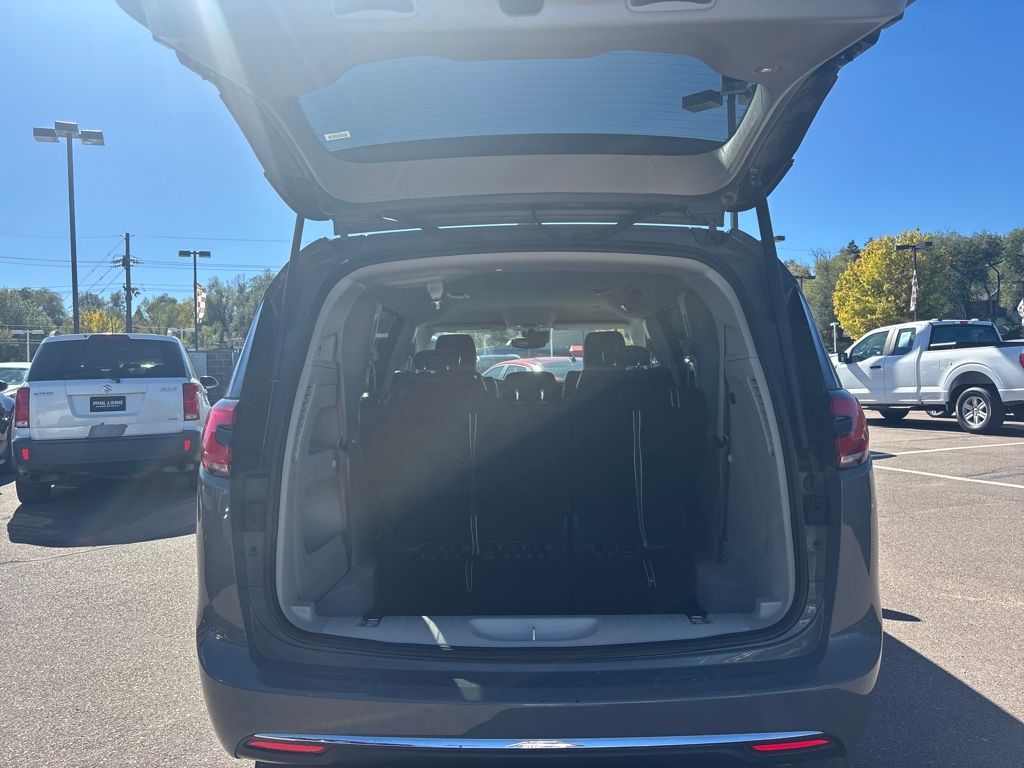Quick Order Package 27L, Safety Sphere Unavailable (ParkSense Rear Park Assist w/Stop and ParkView Rear Back-Up Camera), 10.1" Touchscreen Display, 17" x 7.0" Aluminum Wheels, 3.25 Axle Ratio, 3rd row seats: split-bench, 4-Wheel Disc Brakes, 6 Speakers, ABS brakes, Air Conditioning, Alloy wheels, AM/FM radio: SiriusXM, Apple CarPlay, Apple CarPlay/Android Auto, Auto-dimming Rear-View mirror, Automatic temperature control, Black Seats, Brake assist, Bumpers: body-color, Compass, Delay-off headlights, Disassociated Touchscreen Display, Driver door bin, Driver vanity mirror, Driver's Seat Mounted Armrest, Dual front impact airbags, Dual front side impact airbags, Electronic Stability Control, For More Info, Call 800-643-2112, Four wheel independent suspension, Front anti-roll bar, Front Bucket Seats, Front dual zone A/C, Front fog lights, Front reading lights, Fully automatic headlights, Garage door transmitter, Google Android Auto, GPS Antenna Input, Heated door mirrors, Heated front seats, Heated steering wheel, Illuminated entry, Integrated Active Noise Cancellation, Integrated Center Stack Radio, Knee airbag, Low tire pressure warning, Memory seat, Occupant sensing airbag, Outside temperature display, Overhead airbag, Overhead console, Panic alarm, ParkSense Rear Park Assist Unavailable, Passenger door bin, Passenger seat mounted armrest, Passenger vanity mirror, Perforated Leather Trim Bucket Seats, Power door mirrors, Power driver seat, Power Liftgate, Power steering, Power windows, Radio data system, Radio: Uconnect 5 w/10.1" Display, Rain sensing wipers, Rear air conditioning, Rear reading lights, Rear window defroster, Rear window wiper, Reclining 3rd row seat, Remote keyless entry, Roof rack, Security system, SiriusXM Radio Service, SiriusXM Satellite Radio, Speed control, Split folding rear seat, Spoiler, Steering wheel mounted audio controls, Tachometer, Telescoping steering wheel, Tilt steering wheel, Touring Suspension, Traction control, Trip computer, Turn signal indicator mirrors, USB Host Flip, Variably intermittent wipers, and Voltmeter.