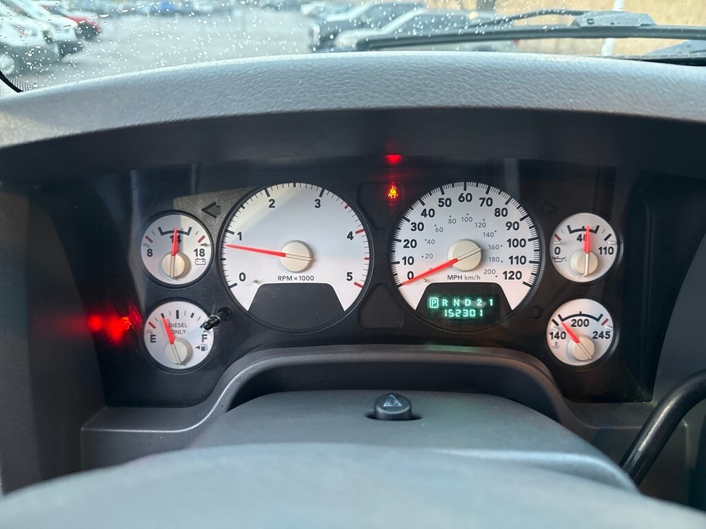 Cummins 600 5.9L I6 DI 24V High-Output Turbodiesel, 4WD, 3.73 Axle Ratio, 4-Wheel Disc Brakes, 750 Amp Maintenance Free Battery, ABS brakes, Air Conditioning, CD player, Compass, Delay-off headlights, Driver door bin, Dual front impact airbags, Electronically Controlled Throttle, Front anti-roll bar, Front Center Seat Cushion Storage, Front reading lights, Heated door mirrors, Illuminated entry, Mini Floor Console, Outside temperature display, Overhead console, Panic alarm, Passenger door bin, Passenger vanity mirror, Power door mirrors, Power Fold-Away Trailer Tow Mirrors, Power steering, Power windows, Rear 60/40 Split Folding Seat, Rear Anti-Spin Differential Axle, Rear reading lights, Rear seat center armrest, Rear step bumper, Remote keyless entry, Speed control, Speed-Sensitive Wipers, Split folding rear seat, Tachometer, Tilt steering wheel, Tow Hooks, Trip computer, Variably intermittent wipers, and Voltmeter.