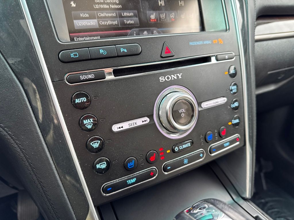 4WD, 12 Speakers, 3.16 Axle Ratio, 3rd row seats: split-bench, 4-Wheel Disc Brakes, ABS brakes, Adjustable pedals, Air Conditioning, Alloy wheels, AM/FM radio: SiriusXM, Auto High-beam Headlights, Auto tilt-away steering wheel, Auto-dimming door mirrors, Auto-dimming Rear-View mirror, Automatic temperature control, Brake assist, Bumpers: body-color, CD player, Compass, Delay-off headlights, Driver door bin, Driver vanity mirror, Dual front impact airbags, Dual front side impact airbags, Electronic Stability Control, Emergency communication system: 911 Assist, Exterior Parking Camera Rear, Four wheel independent suspension, Front anti-roll bar, Front Bucket Seats, Front Center Armrest, Front dual zone A/C, Front fog lights, Front reading lights, Fully automatic headlights, Garage door transmitter, Genuine wood dashboard insert, Genuine wood door panel insert, Heated door mirrors, Heated front seats, Heated rear seats, Heated steering wheel, Illuminated entry, Knee airbag, Lane Departure Warning System, Leather steering wheel, Low tire pressure warning, Memory seat, Navigation System, Nirvana Multi Contour Leather Cooled Bucket Seats, Occupant sensing airbag, Outside temperature display, Overhead airbag, Overhead console, Panic alarm, Passenger door bin, Passenger vanity mirror, Pedal memory, Power door mirrors, Power driver seat, Power Liftgate, Power moonroof, Power passenger seat, Power steering, Power windows, Premium audio system: Sony, Radio data system, Radio: Premium Sound from Sony, Rain sensing wipers, Rear air conditioning, Rear anti-roll bar, Rear reading lights, Rear seat center armrest, Rear window defroster, Rear window wiper, Remote keyless entry, Roof rack: rails only, Security system, Speed control, Speed-sensing steering, Speed-Sensitive Wipers, Split folding rear seat, Spoiler, Steering wheel memory, Steering wheel mounted audio controls, SYNC w/MyFord Touch, Tachometer, Telescoping steering wheel, Tilt steering wheel, Traction control, Trip computer, Turn signal indicator mirrors, Variably intermittent wipers, Ventilated front seats, and Wheels: 20" Bright Machined Face Aluminum.