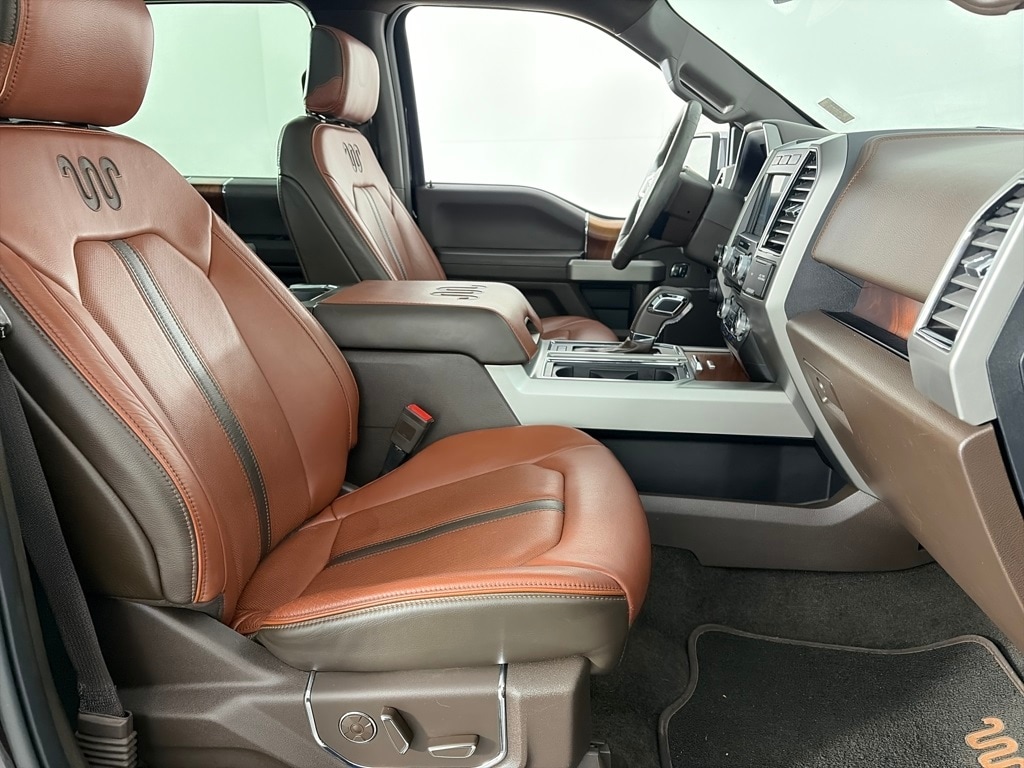EQUIPMENT GROUP 601A LUXURY Power-Deployable Running Boards, Replaces step bar, Wheels: 20 Machined-Aluminum, light Caribou painted pockets and Caribou wheel ornament w/Caribou King Ranch logo, Tailgate Step w/Tailgate Lift Assist, Tires: P275/55R20 OWL Automatic Transmission, 275/65R18 OWL all-terrain spare tire, Inflatable Rear Safety Belts, Blind Spot Information System (BLIS), cross-traffic alert and trailer tow monitoring (BLIS sensor in LED taillamp), Multi-Contour Driver & Passenger Seats, Active Motion, KING RANCH CHROME APPEARANCE PACKAGE 2 chrome front tow hooks and tailgate applique, Chrome Door Handles w/Body-Color Strap, Chrome Front & Rear Bumpers, Bright Belt Moldings, Tires: P275/55R20 OWL Automatic Transmission, 275/65R18 OWL all-terrain spare tire, Wheels: 20 Chrome-Like PVD, Caribou wheel ornaments w/King Ranch logo, Chrome Skull Caps on Exterior Mirrors, TECHNOLOGY PACKAGE Lane-Keeping System, 360 camera w/split-view display and dynamic hitch assist, Active Park Assist, TWIN PANEL MOONROOF, MAX TRAILER TOW PACKAGE max towing capability up to 13,200 lbs, and upgraded rear bumper, Pro Trailer Backup Assist, Electronic Locking w/3.55 Axle Ratio, Extended Range 36 Gallon Fuel Tank, Higher-Capacity Radiator, Higher-Power Cooling Fans, Upgraded Front Stabilizer Bar, ADAPTIVE CRUISE CONTROL stop-and-go and pre-collision assist w/pedestrian detection, ENGINE: 3.5L V6 ECOBOOST auto start-stop technology, GVWR: 6,750 lbs Payload Package, TRANSMISSION: ELECTRONIC 10-SPEED AUTOMATIC selectable drive modes: normal/tow-haul/snow-wet/EcoSelect/sport (STD). Ford King Ranch with Magma Red/Stone Gray exterior and Java interior features a V6 Cylinder Engine with 395 HP at 5750 RPM*.