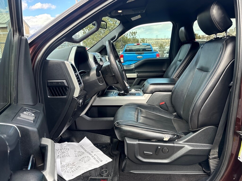 Equipment Group 502A Luxury (110V/400W Outlet, BLIS Blind Spot Information System, and Reverse Sensing System), GVWR: 7,050 lbs Payload Package, Lariat Sport Appearance Package (2-Bar Body-Color Grille w/4 Minor Bars, Accent-Color Angular Step Bars, Body-Color Front & Rear Bumpers, Box Side Decals, Single-Tip Chrome Exhaust, and Wheels: 18" 6-Spoke Machined-Aluminum), Trailer Tow Package (Class IV Trailer Hitch Receiver, Engine Oil Cooler, Pro Trailer Backup Assist, and Upgraded Front Stabilizer Bar), 4WD, 18" Machined-Aluminum Wheels, 3.31 Axle Ratio, 4-Wheel Disc Brakes, 7 Speakers, ABS brakes, Adjustable pedals, Air Conditioning, Alloy wheels, AM/FM radio: SiriusXM, AppLink/Apple CarPlay and Android Auto, Auto High-beam Headlights, Auto-dimming door mirrors, Auto-dimming Rear-View mirror, Automatic temperature control, Brake assist, Bumpers: chrome, Compass, Delay-off headlights, Driver door bin, Driver vanity mirror, Dual front impact airbags, Dual front side impact airbags, Electronic Stability Control, Emergency communication system: SYNC 3 911 Assist, Exterior Parking Camera Rear, Front anti-roll bar, Front Center Armrest w/Storage, Front dual zone A/C, Front fog lights, Front reading lights, Front wheel independent suspension, Fully automatic headlights, Heated door mirrors, Heated front seats, Illuminated entry, Leather-Trimmed 40/20/40 Front Seat, Low tire pressure warning, Memory seat, Occupant sensing airbag, Outside temperature display, Overhead airbag, Overhead console, Panic alarm, Passenger door bin, Passenger vanity mirror, Pedal memory, Power door mirrors, Power driver seat, Power passenger seat, Power steering, Power windows, Radio data system, Radio: AM/FM Stereo w/6 Speakers, Rear reading lights, Rear seat center armrest, Rear step bumper, Rear window defroster, Remote keyless entry, Security system, SiriusXM Radio, Speed control, Speed-sensing steering, Split folding rear seat, Steering wheel mounted audio controls, SYNC 3, Tachometer, Telescoping steering wheel, Tilt steering wheel, Traction control, Trip computer, Turn signal indicator mirrors, Variably intermittent wipers, Ventilated front seats, and Voltmeter.