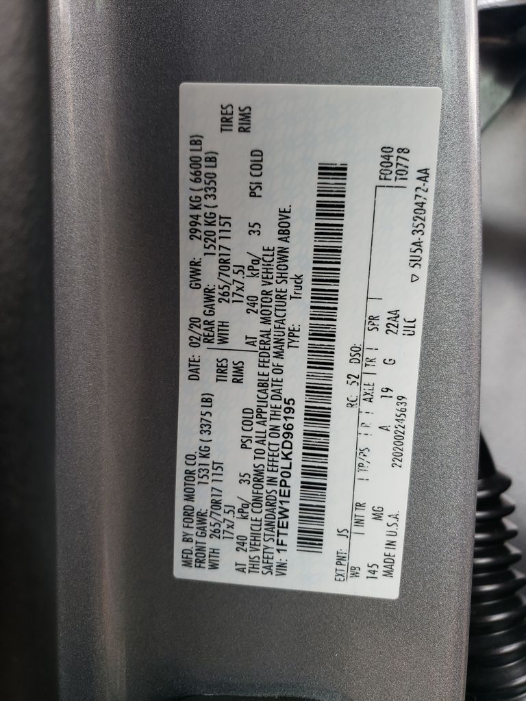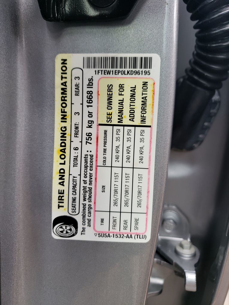 Silver 2020 Ford F-150 XLT 4WD 10-Speed Automatic 2.7L V6 EcoBoost 3.55 Axle Ratio, 4-Wheel Disc Brakes, ABS brakes, Cloth 40/20/40 Front Seat, Dual front impact airbags, Dual front side impact airbags, Equipment Group 300A Base, Fully automatic headlights, GVWR: 6,500 lbs Payload Package, Low tire pressure warning, Occupant sensing airbag, Speed control, Traction control.