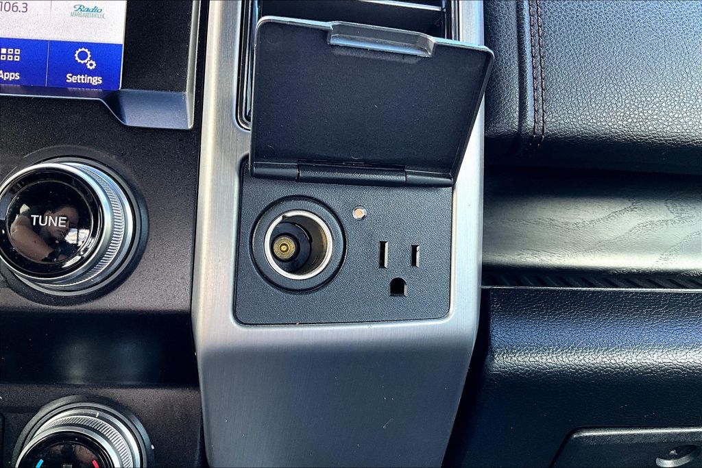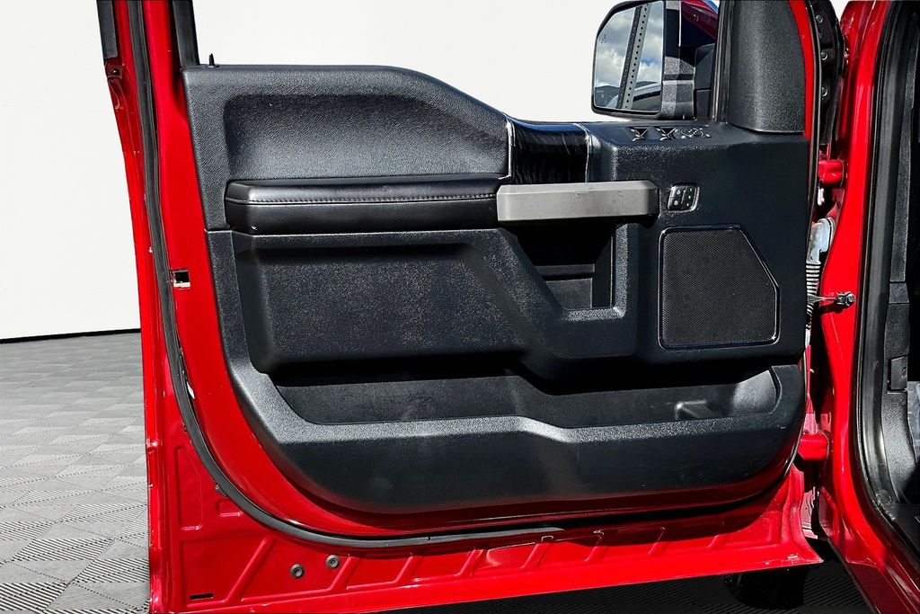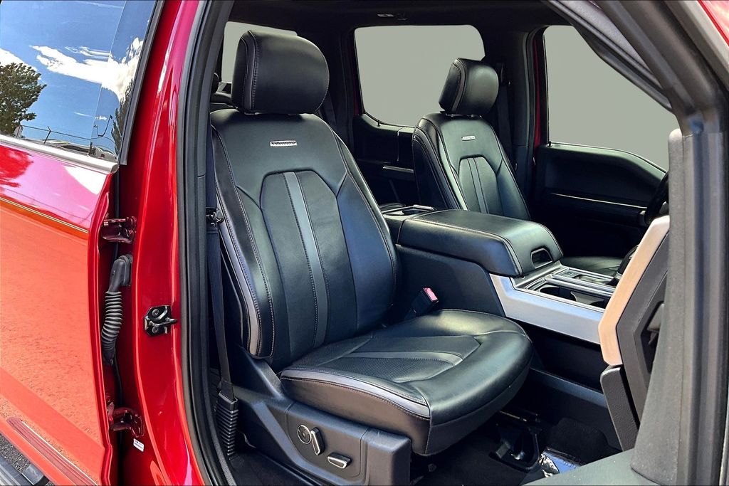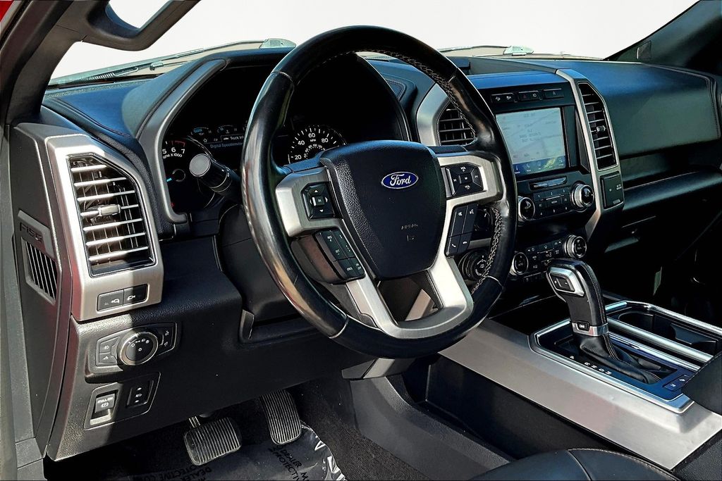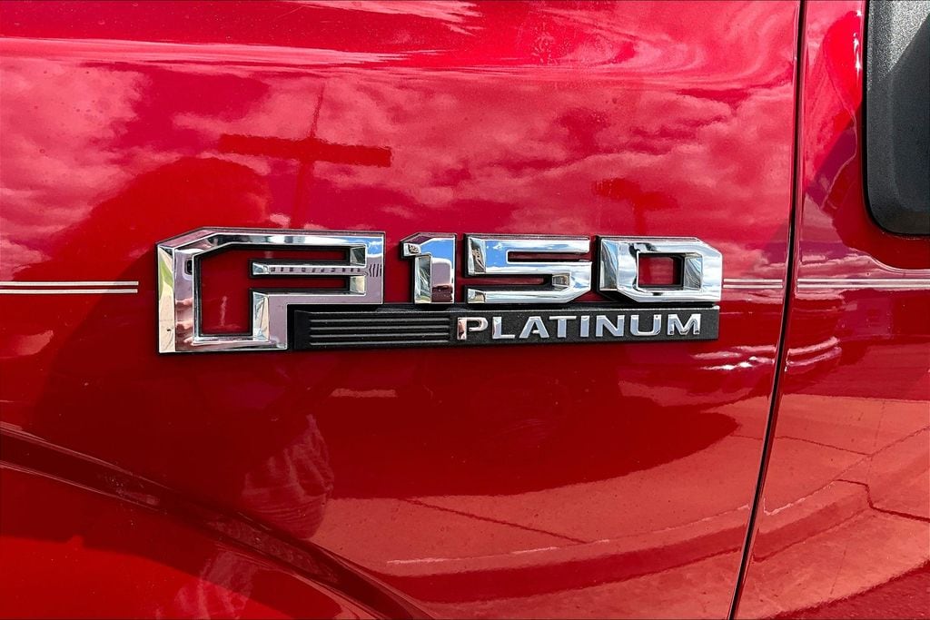 EQUIPMENT GROUP 701A LUXURY Technology Package, 360 Camera w/Split-View Display, dynamic hitch assist, Active Park Assist, Tailgate Step w/Tailgate Lift Assist, Ford Co-Pilot Assist, Adaptive Cruise Control, stop-and-go and pedestrian detection, TWIN PANEL MOONROOF, MAX TRAILER TOW PACKAGE max towing capability up to 13,200 lbs, and upgraded rear bumper, Pro Trailer Backup Assist, Integrated Trailer Brake Controller, Electronic Locking w/3.55 Axle Ratio, Extended Range 36 Gallon Fuel Tank, Engine Oil Cooler, Upgraded Front Stabilizer Bar, FX4 OFF-ROAD PACKAGE Off-Road Tuned Front Shock Absorbers, Skid Plates, fuel tank, transfer case and front differential, 4x4 FX4 Off-Road Bodyside Decal, Hill Descent Control, Electronic Locking w/3.31 Axle Ratio, Tray Style Floor Liner, ENGINE: 3.5L V6 ECOBOOST auto start-stop technology, TOUGH BED SPRAY-IN BEDLINER, TRANSMISSION: ELECTRONIC 10-SPEED AUTOMATIC selectable drive modes: normal/tow-haul/snow-wet/EcoSelect/sport (STD). Ford Platinum with Rapid Red Metallic Tinted Clearcoat exterior and Black interior features a V6 Cylinder Engine with 395 HP at 5750 RPM*.