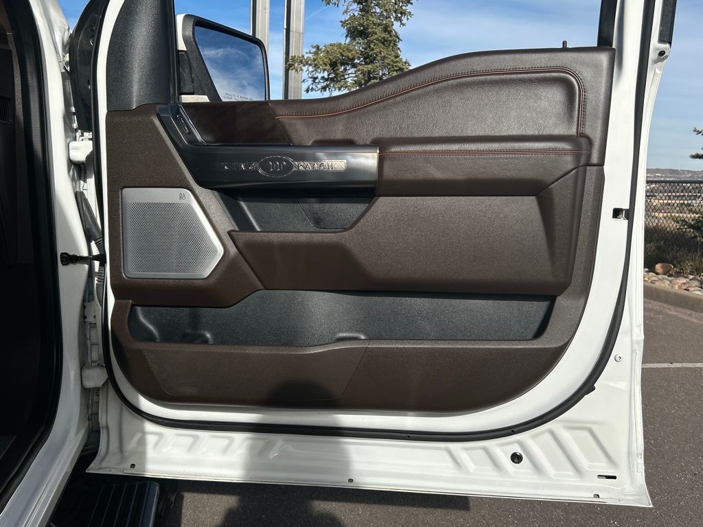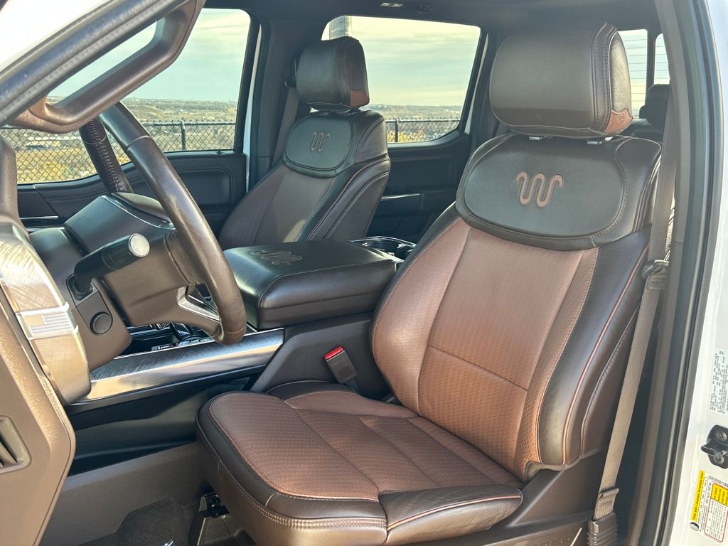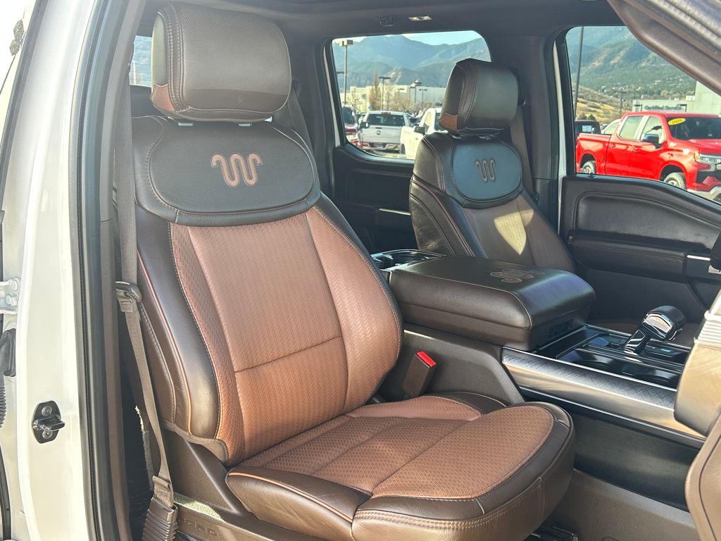 EQUIPMENT GROUP 601A HIGH Radio: B&O Unleashed Sound System by Bang & Olufsen, HD Radio and 18 speakers including subwoofer, Tires: 275/60R20 OWL Automatic Transmission, 275/65R18 OWL all-terrain spare tire, Power-Deployable Running Boards, Replaces step bar, Wheels: 20 Machined-Aluminum, light Caribou painted pockets and King Ranch ornament, Bed Utility Package, BoxLink, 4 premium locking cleats, LED Box Lighting, Tailgate Step w/Tailgate Work Surface, Power Tailgate, Multi-Contour Driver & Passenger Seats, Active Motion, TWIN PANEL MOONROOF, 360 DEGREE CAMERA trailer reverse guidance, ENGINE: 3.5L V6 ECOBOOST, TRANSMISSION: ELECTRONIC 10-SPEED AUTOMATIC selectable drive modes: normal, ECO, sport, tow/haul, slippery, deep snow/sand and mud/rut (STD). Ford King Ranch with Star White Metallic Tri-Coat/Stone Gray exterior and Java interior features a V6 Cylinder Engine with 400 HP at 6000 RPM*.