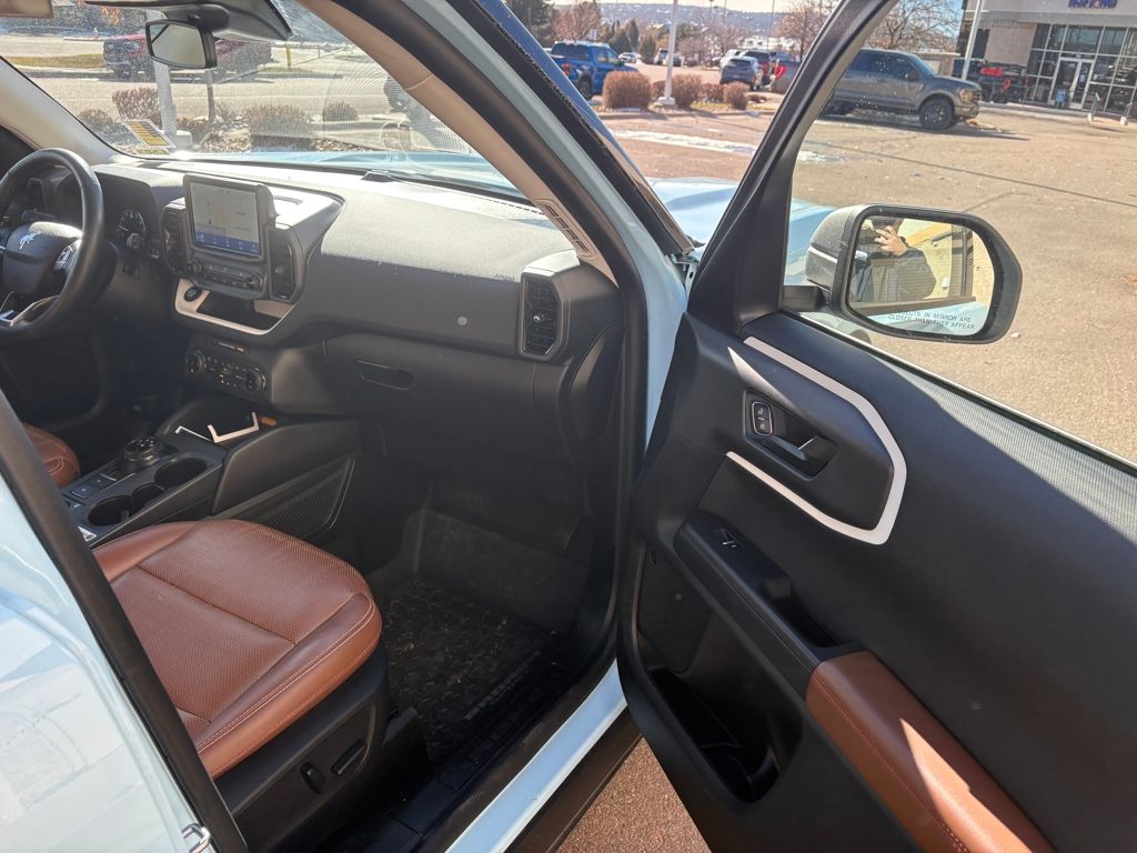I got a 2025 Big Bend with the black diamond off road package. The steel modular front and rear in combination with bush guard gives this year model. A very aggressive off road look. With the ability to easily mount accessories and power them with the factory installed auxiliary switches. Hitch receiver seamlessly mounted into the rear steel bumper flanked by some very chunky recovery points. The upgraded aluminum rims wrapped with Continental all-terrains. It make this the most capable bronco sport yet. The interior of the 2025 has been updated with a new 13 inch touchscreen with Android Auto and apple car play. The lines of the dash flow elegantly from the new infotainment screen to the new all digital 12 inch gauge chaster. Toggling through the different modes on the gauge chaster is very intuitive, and all the displays are laid out very cleanly. Moving from gauge chaster the center storage cubby just below the infotainment screen there is a wireless charger and USB/ USB-c ports. The passenger side of that same cubby gets a handle and a matching one on the roof just in case the driver bucks a little too much. The passenger also gets a mesh storage area. That leads us to the fact this vehicle has tons of storage options all throughout. You have pockets on the sides of the front two seat big enough for the latest new phones. Very generous door storage on all four doors plus huge glove box and center console with 12 volt outlet. The back side of the center console has air vents and another 12 volt outlet plus a 110 outlet. Now getting to the cargo area it is massive for a crossover SUV. With off road package you get a cargo management system and a very nice rubber mat. Under that there is a full size tire plus scissor jack and funnel to use with the capless filler system. On the liftgate there isa pair of very bright led lights turned on with a switch in the cargo area. This feature packed vehicle has tons awesome gadgets and hidden a little homages I spend all day just talk that. At the end of the day it is car. So how does it drive. It is wonderful, the steering and pedal response is beautiful. Rides very smooth and little to no road noise going down the highway. The active cruise control and co-pilot 360 have been very handy. The car literally drives itself most of the time. There is not enough good things I could same about this car. I love it and you pick one too. You will see what I mean.