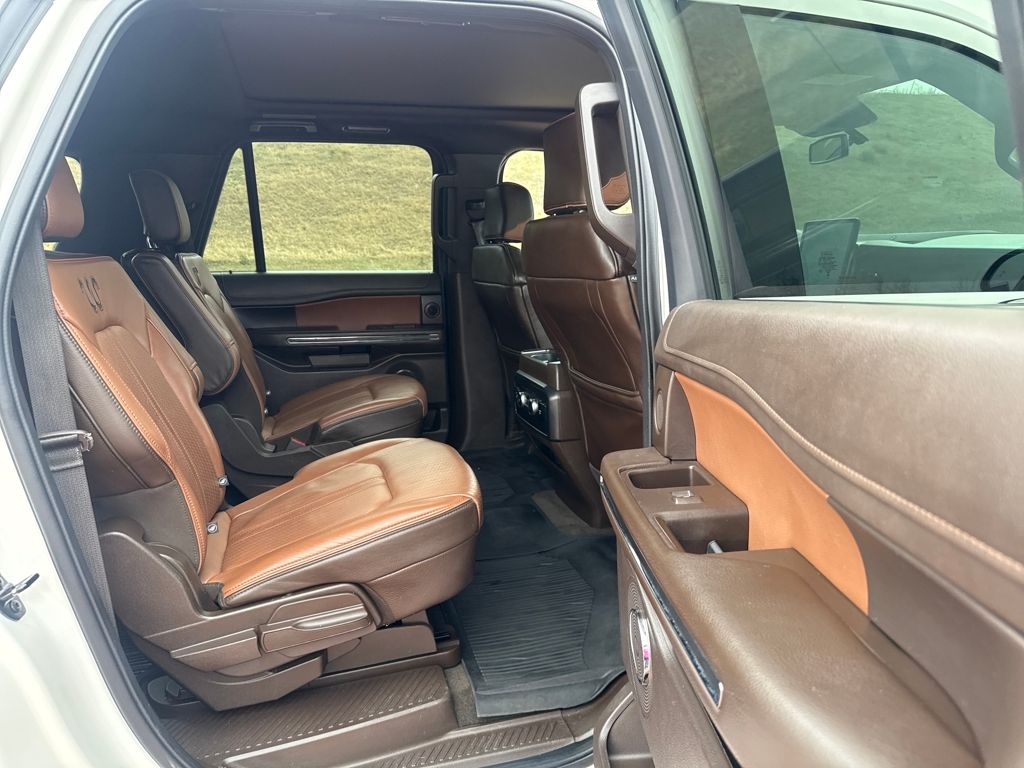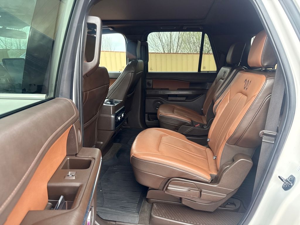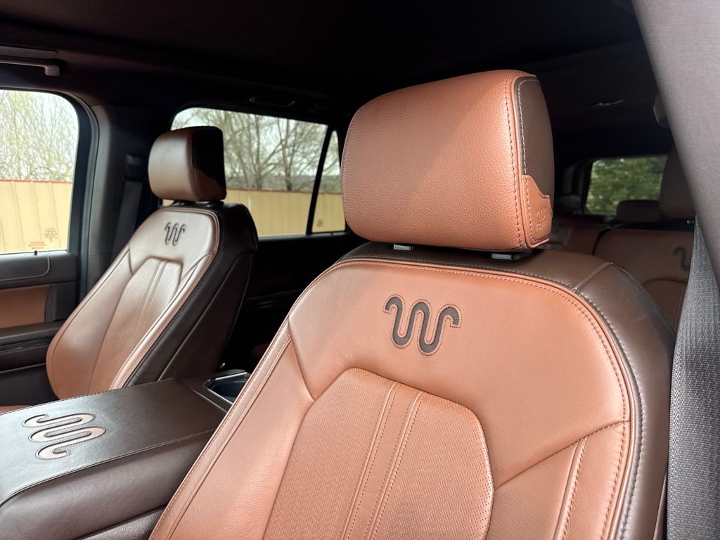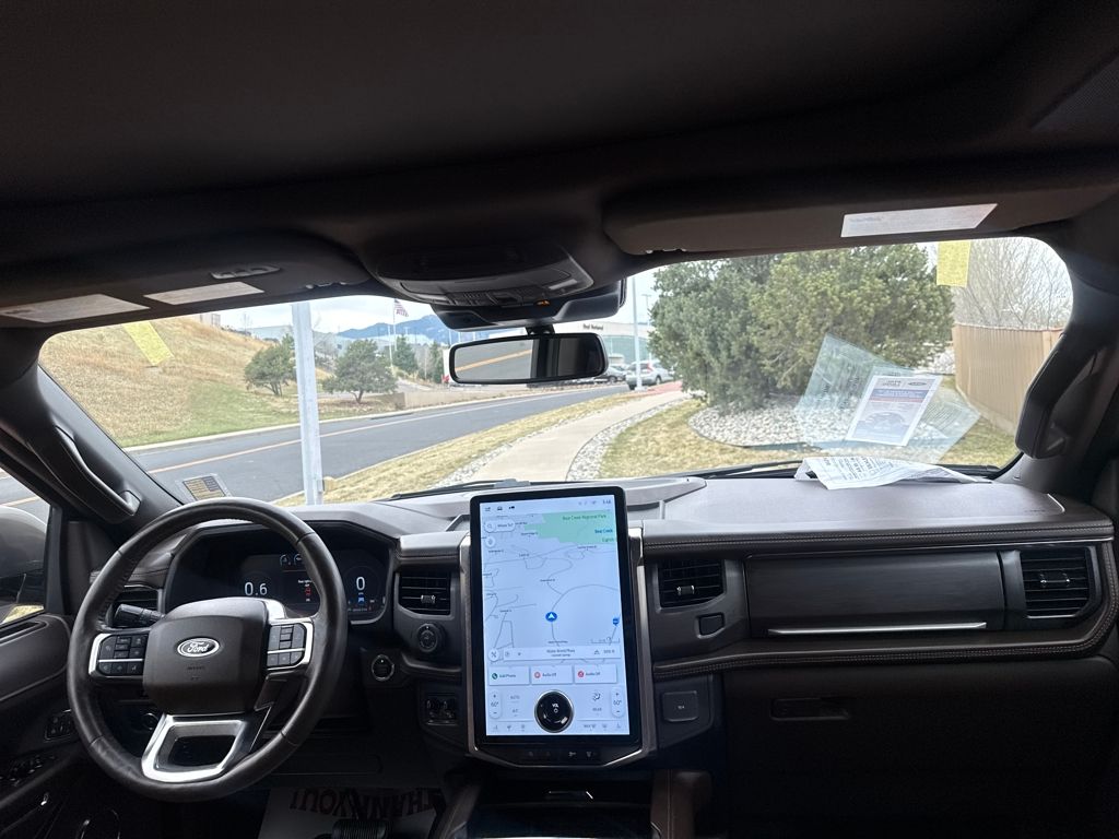 Equipment Group 400A Standard Package, Heavy-Duty Trailer Tow Package (26mm Engine Radiator, 3.73 Axle Ratio, 360-Degree Camera w/Trailer Reverse Guidance, Integrated Trailer Brake Controller, and Pro Trailer Backup Assist), 22 Speakers, Bumpers: body-color, Navigation system: Connected Navigation, Power door mirrors, 3rd row seats: split-bench, 4-Wheel Disc Brakes, ABS brakes, Adjustable pedals, Advanced Cargo Manager, Air Conditioning, Alloy wheels, AM/FM radio: SiriusXM with 360L, Auto High-beam Headlights, Auto-dimming door mirrors, Auto-dimming Rear-View mirror, Automatic temperature control, Black Roof-Rail Crossbars, Brake assist, Compass, Continuous Controlled Damping (CCD), Delay-off headlights, Driver door bin, Driver vanity mirror, Dual front impact airbags, Dual front side impact airbags, Electronic Stability Control, Emergency communication system: SYNC 4 911 Assist, Exterior Parking Camera Rear, Four wheel independent suspension, Front anti-roll bar, Front Bucket Seats, Front Center Armrest, Front dual zone A/C, Front fog lights, Front License Plate Bracket, Front reading lights, Fully automatic headlights, Garage door transmitter, Genuine wood console insert, Genuine wood dashboard insert, Genuine wood door panel insert, Hands-Free Foot-Activated Liftgate Removal (DISC), Heated door mirrors, Heated front seats, Heated rear seats, Heated steering wheel, Heated/Vent Prem Del Rio Lthr Fr Captain's Chairs, Illuminated entry, Leather steering wheel, Low tire pressure warning, Memory seat, Occupant sensing airbag, Outside temperature display, Overhead airbag, Overhead console, Panic alarm, Passenger door bin, Passenger vanity mirror, Pedal memory, Power driver seat, Power Liftgate, Power moonroof, Power passenger seat, Power steering, Power windows, Radio data system, Radio: B&O Unleashed Sound System by Bang & Olufsen, Rain sensing wipers, Rear air conditioning, Rear anti-roll bar, Rear reading lights, Rear window defroster, Rear window wiper, Reclining 3rd row seat, Remote keyless entry, Second Row Power Windows Removal, Security system, SiriusXM w/360L, Speed control, Speed-sensing steering, Speed-Sensitive Wipers, Split folding rear seat, Spoiler, Steering wheel memory, Steering wheel mounted audio controls, SYNC 4 w/Enhanced Voice Recognition, Tachometer, Telescoping steering wheel, Tilt steering wheel, Traction control, Trip computer, Turn signal indicator mirrors, Variably intermittent wipers, Ventilated front seats, Voltmeter, and Wheels: 22" 6-Spoke Polished Aluminum.