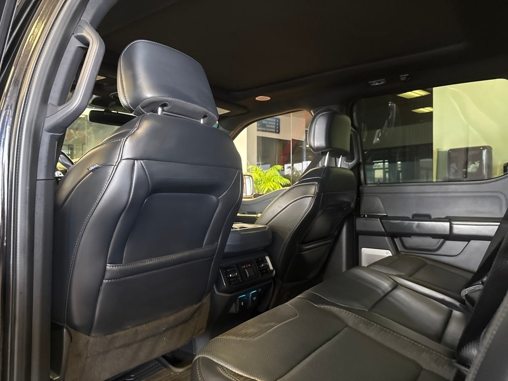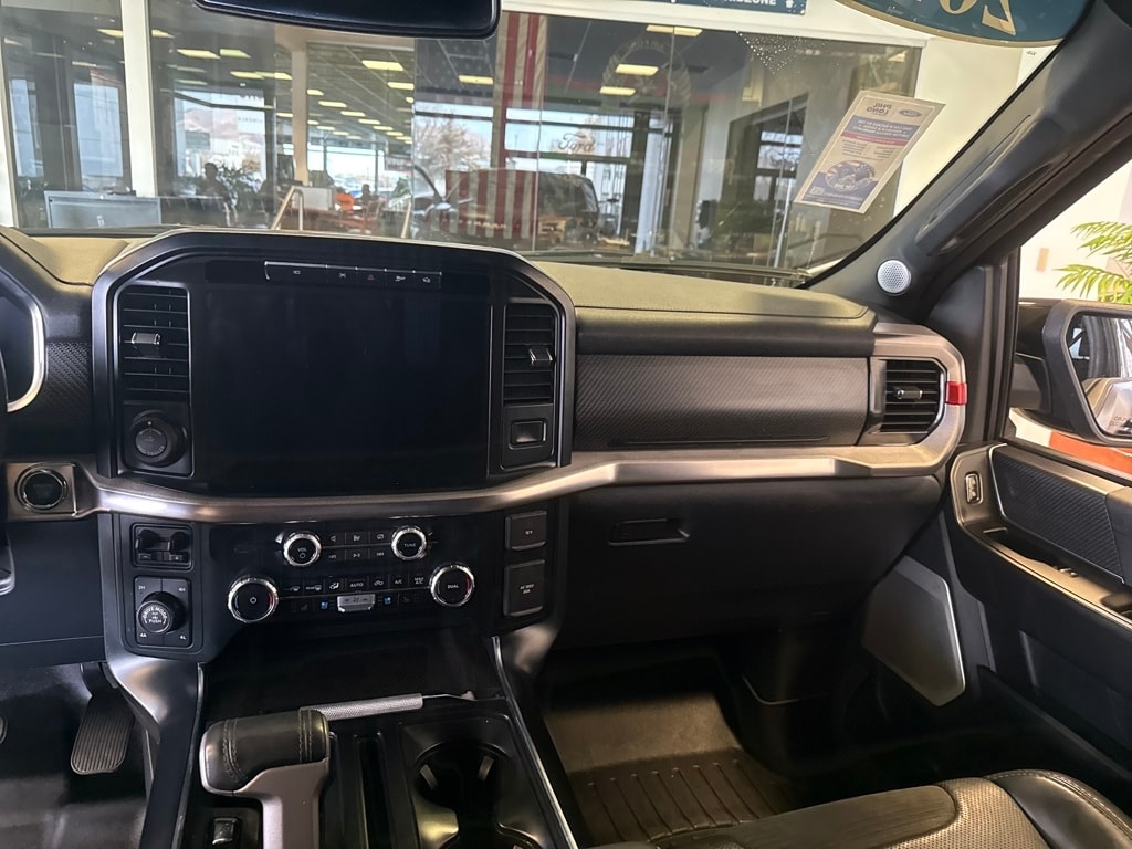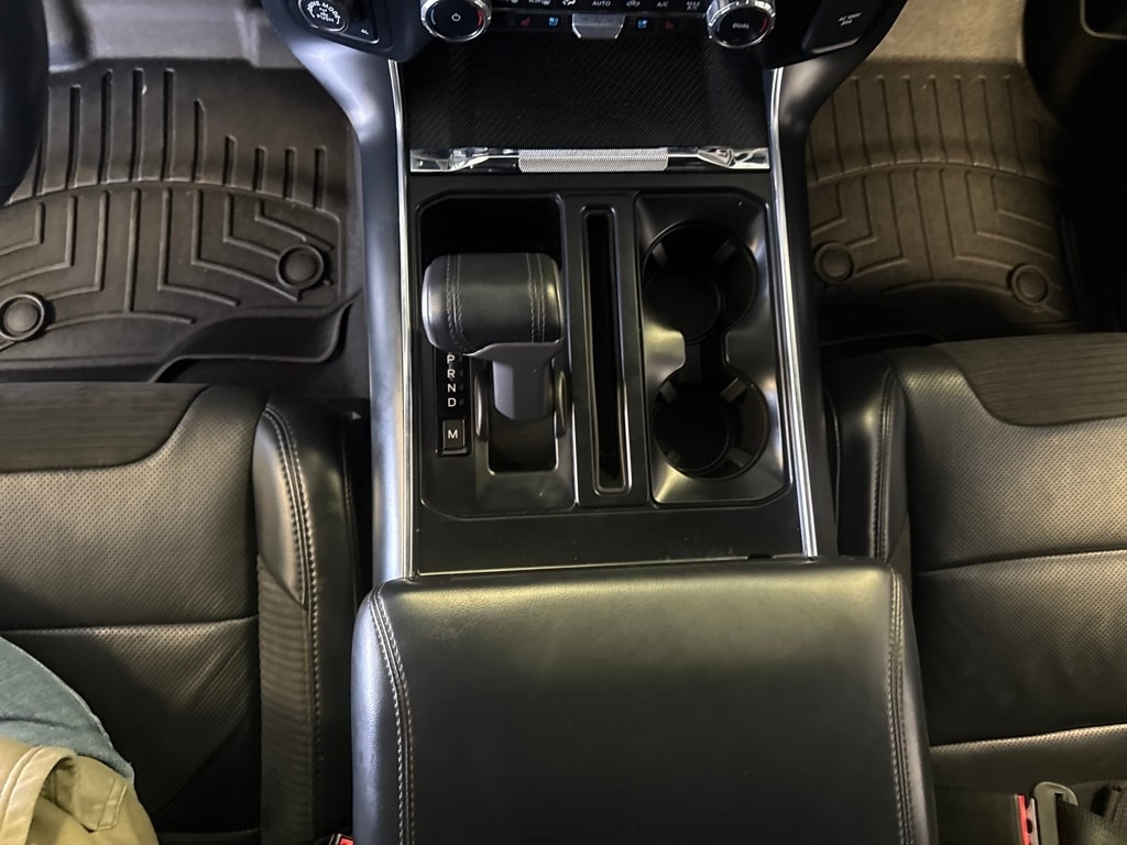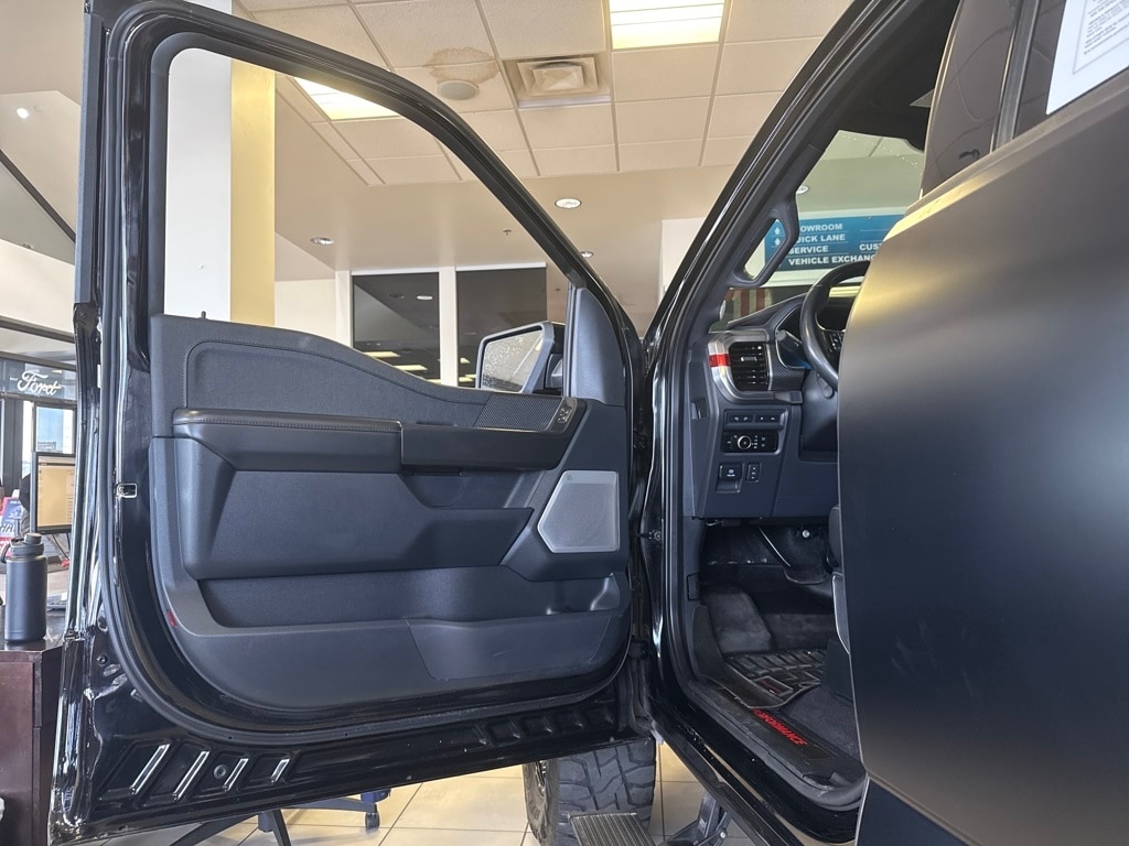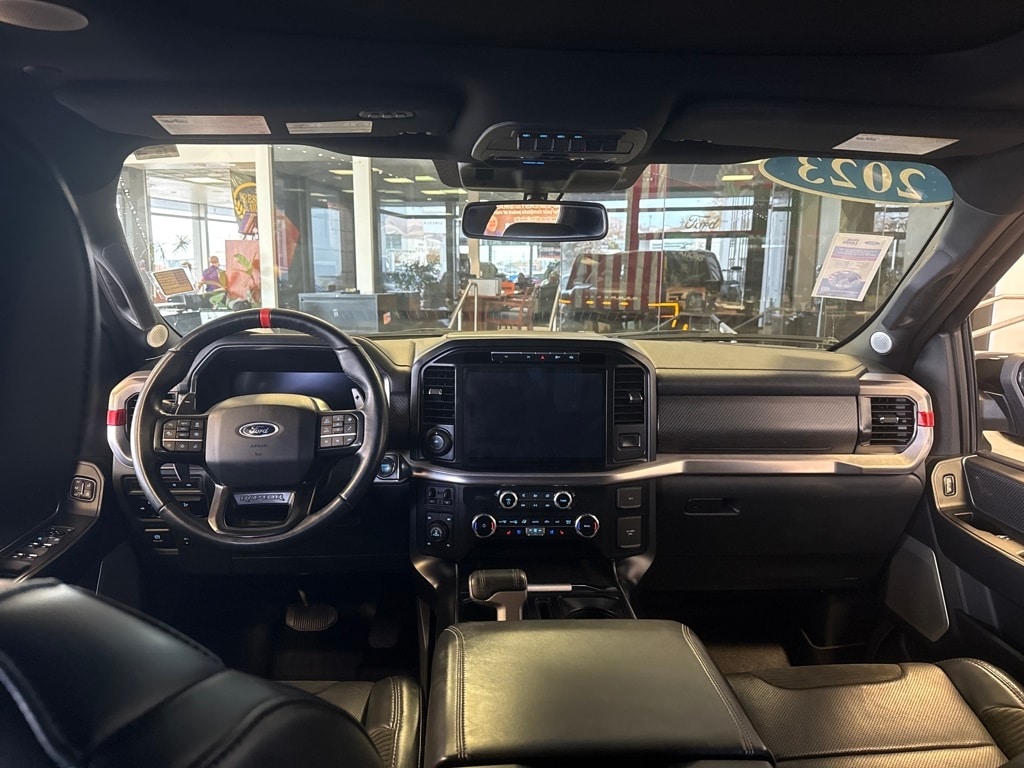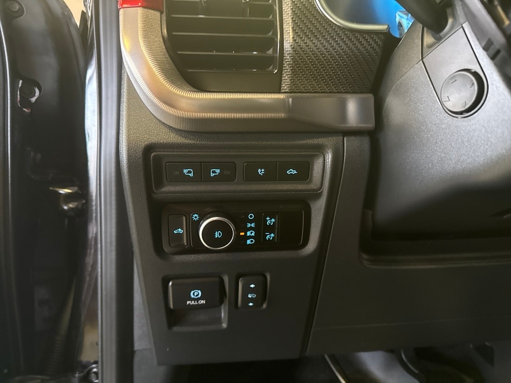 Equipment Group 801A Standard, GVWR: 7,300 lbs Payload Package, Moonroof & Tailgate (Power Tailgate and Twin Panel Moonroof), Raptor Carbon Fiber Package, 4WD, 17" Cast Aluminum Wheels, 17" Forged Aluminum Bead-Lock Capable Wheels, 18 Speakers, 4-Wheel Disc Brakes, ABS brakes, Adaptive suspension, Adjustable pedals, Air Conditioning, Alloy wheels, AM/FM radio: SiriusXM with 360L, Auto High-beam Headlights, Auto Start-Stop Removal (DISC), Auto tilt-away steering wheel, Auto-dimming door mirrors, Auto-dimming Rear-View mirror, Automatic temperature control, Brake assist, Bumpers: body-color, Compass, Delay-off headlights, Driver door bin, Driver vanity mirror, Dual front impact airbags, Dual front side impact airbags, Electronic Locking w/4.10 Axle Ratio, Electronic Stability Control, Emergency communication system, Exterior Parking Camera Rear, Front anti-roll bar, Front Bucket Seats, Front Center Armrest, Front dual zone A/C, Front fog lights, Front reading lights, Front wheel independent suspension, Fully automatic headlights, Garage door transmitter, Heated door mirrors, Heated front seats, Heated rear seats, Heated steering wheel, Illuminated entry, In-Vehicle Safe By Console Vault, Inclination/Intrusion Sensor Removal, Lane Departure Warning System, Leather Trim Seats w/Heated 2nd Row, Low tire pressure warning, Memory seat, Navigation system: Connected Navigation, Occupant sensing airbag, Outside temperature display, Overhead airbag, Overhead console, Panic alarm, Partitioned Lockable Fold-Flat Storage, Passenger door bin, Passenger vanity mirror, Pedal memory, Power door mirrors, Power driver seat, Power passenger seat, Power steering, Power windows, Pro Power Onboard - 2KW, Radio data system, Radio: B&O Unleashed Sound System by Bang & Olufsen, Rain sensing wipers, Rear reading lights, Rear step bumper, Rear window defroster, Remote keyless entry, Security system, Speed control, Speed-sensing steering, Split folding rear seat, Steering Wheel Heat Removal (DISC), Steering wheel memory, Steering wheel mounted audio controls, SYNC 4 w/Enhanced Voice Recognition, Tachometer, Telescoping steering wheel, Tilt steering wheel, Traction control, Trip computer, Turn signal indicator mirrors, Variably intermittent wipers, and Ventilated front seats.