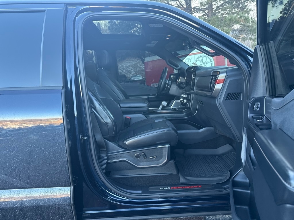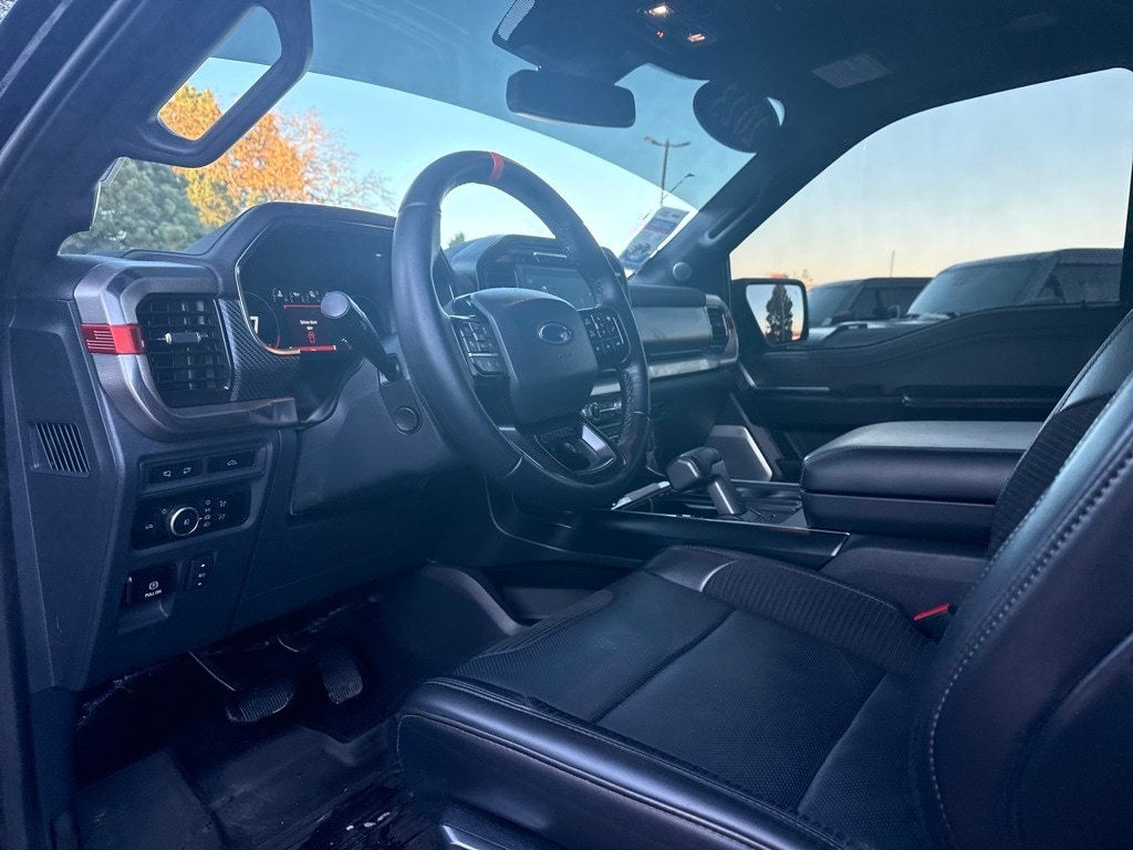 Equipment Group 801A Standard, GVWR: 7,300 lbs Payload Package, Moonroof & Tailgate (Power Tailgate and Twin Panel Moonroof), Raptor Carbon Fiber Package, Raptor Exterior Graphics Package, 4WD, 17" Cast Aluminum Wheels, 17" Forged Aluminum Bead-Lock Capable Wheels, 18 Speakers, 4-Wheel Disc Brakes, ABS brakes, Adaptive suspension, Adjustable pedals, Air Conditioning, Alloy wheels, AM/FM radio: SiriusXM with 360L, Auto High-beam Headlights, Auto Start-Stop Removal (DISC), Auto tilt-away steering wheel, Auto-dimming door mirrors, Auto-dimming Rear-View mirror, Automatic temperature control, Brake assist, Bumpers: body-color, Compass, Delay-off headlights, Driver door bin, Driver vanity mirror, Dual front impact airbags, Dual front side impact airbags, Electronic Locking w/4.10 Axle Ratio, Electronic Stability Control, Emergency communication system, Exterior Parking Camera Rear, Front anti-roll bar, Front Bucket Seats, Front Center Armrest, Front dual zone A/C, Front fog lights, Front License Plate Bracket, Front reading lights, Front wheel independent suspension, Fully automatic headlights, Garage door transmitter, Heated door mirrors, Heated front seats, Heated rear seats, Heated steering wheel, Illuminated entry, Inclination/Intrusion Sensor Removal, Lane Departure Warning System, Leather Trim Seats w/Heated 2nd Row, Low tire pressure warning, Memory seat, Navigation system: Connected Navigation, Occupant sensing airbag, Outside temperature display, Overhead airbag, Overhead console, Panic alarm, Passenger door bin, Passenger vanity mirror, Pedal memory, Power door mirrors, Power driver seat, Power passenger seat, Power steering, Power windows, Radio data system, Radio: B&O Unleashed Sound System by Bang & Olufsen, Rain sensing wipers, Rear reading lights, Rear step bumper, Rear window defroster, Remote keyless entry, Security system, Speed control, Speed-sensing steering, Split folding rear seat, Steering Wheel Heat Removal (DISC), Steering wheel memory, Steering wheel mounted audio controls, SYNC 4 w/Enhanced Voice Recognition, Tachometer, Telescoping steering wheel, Tilt steering wheel, Tough Bed Spray-In Bedliner, Traction control, Trip computer, Turn signal indicator mirrors, Variably intermittent wipers, and Ventilated front seats.