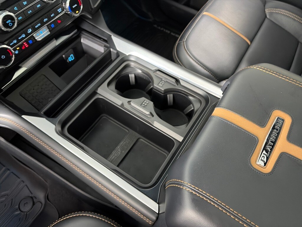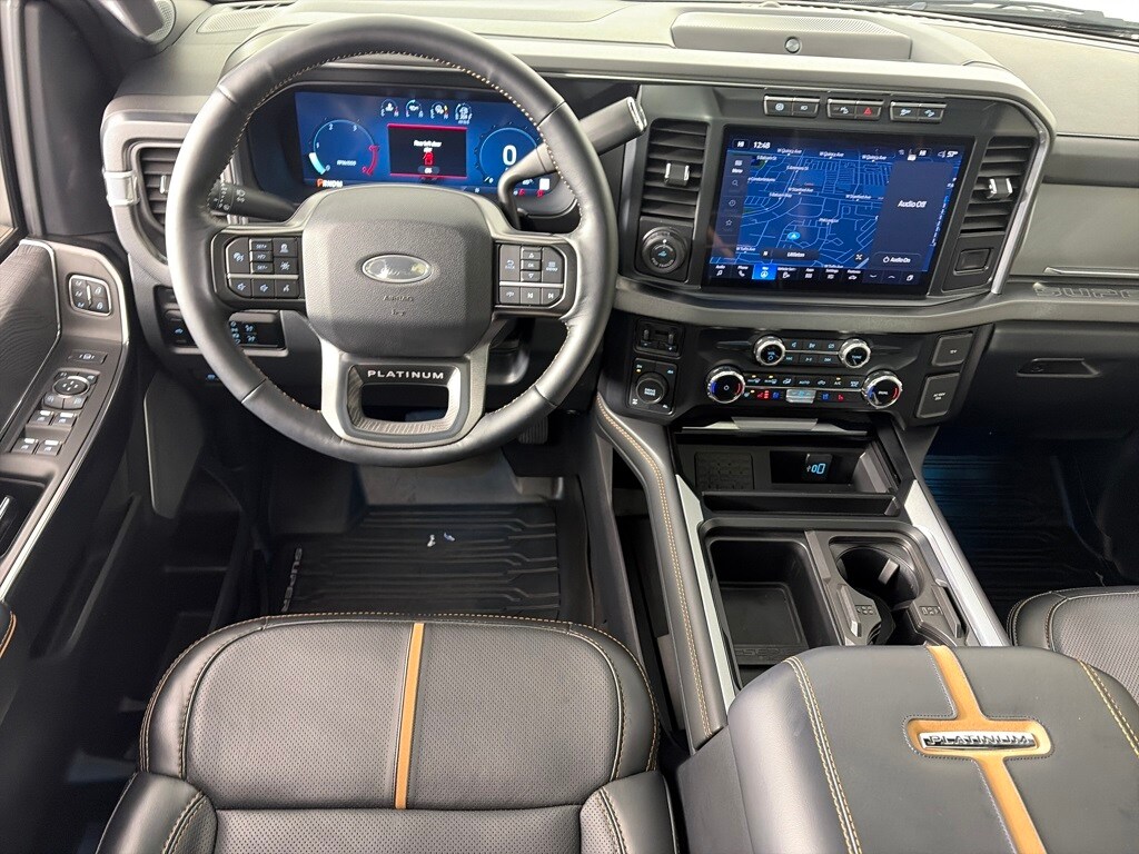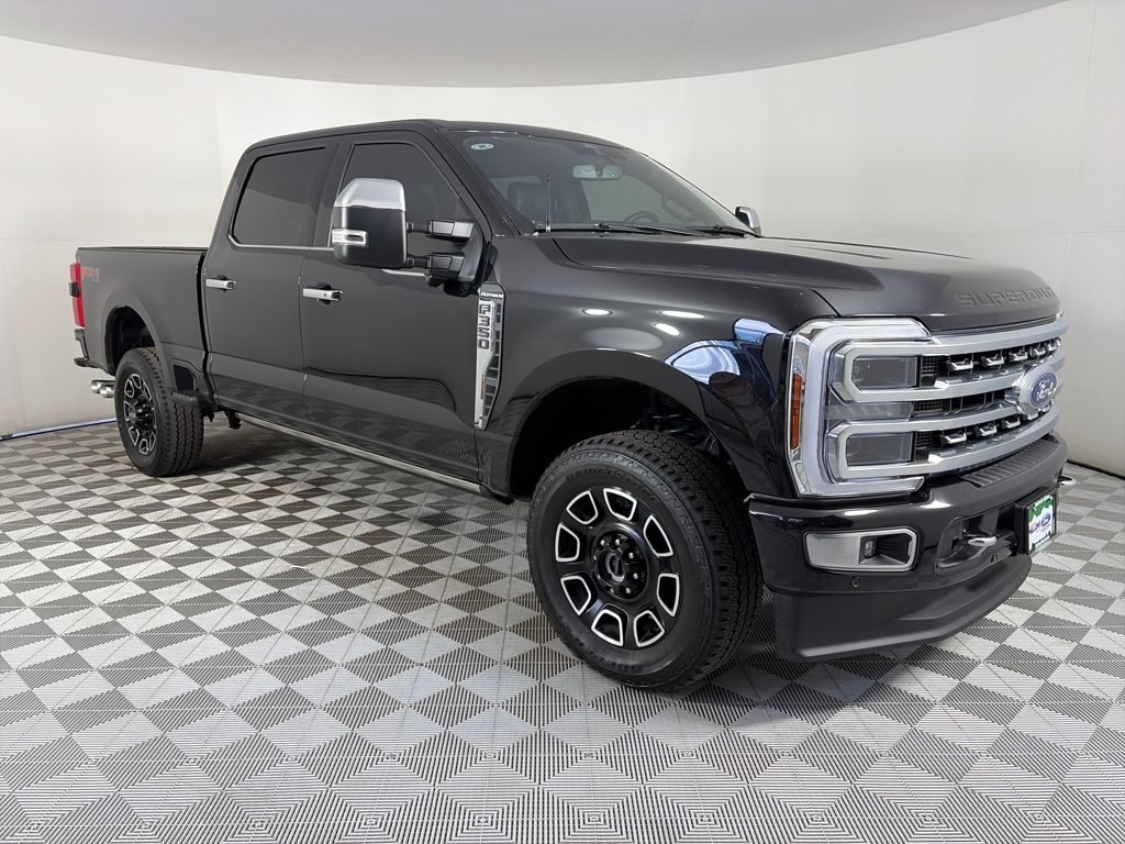 ENGINE: 6.7L 4V OHV POWER STROKE V8 TURBO DIESEL B20 manual push-button engine-exhaust braking, Operator Commanded Regeneration (OCR) and intelligent oil-life monitor, 34 Gallon Fuel Tank, GVWR: 12,000 lb Payload Package, 3.31 Axle Ratio, Dual 68 AH AGM 750 CCA Batteries, TWIN PANEL POWER MOONROOF map lights and moonroof switches, ELECTRONIC-LOCKING W/3.55 AXLE RATIO, TRANSMISSION: TORQSHIFT 10-SPEED AUTOMATIC SelectShift and selectable drive modes: normal, eco, slippery roads, tow/haul and off-road (STD). Ford Platinum with Agate Black exterior and Black Onyx interior features a 8 Cylinder Engine with 475 HP at 2600 RPM*.