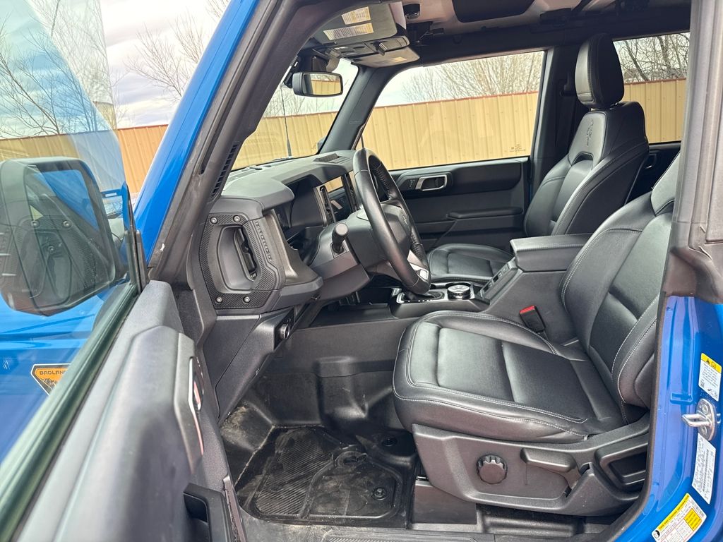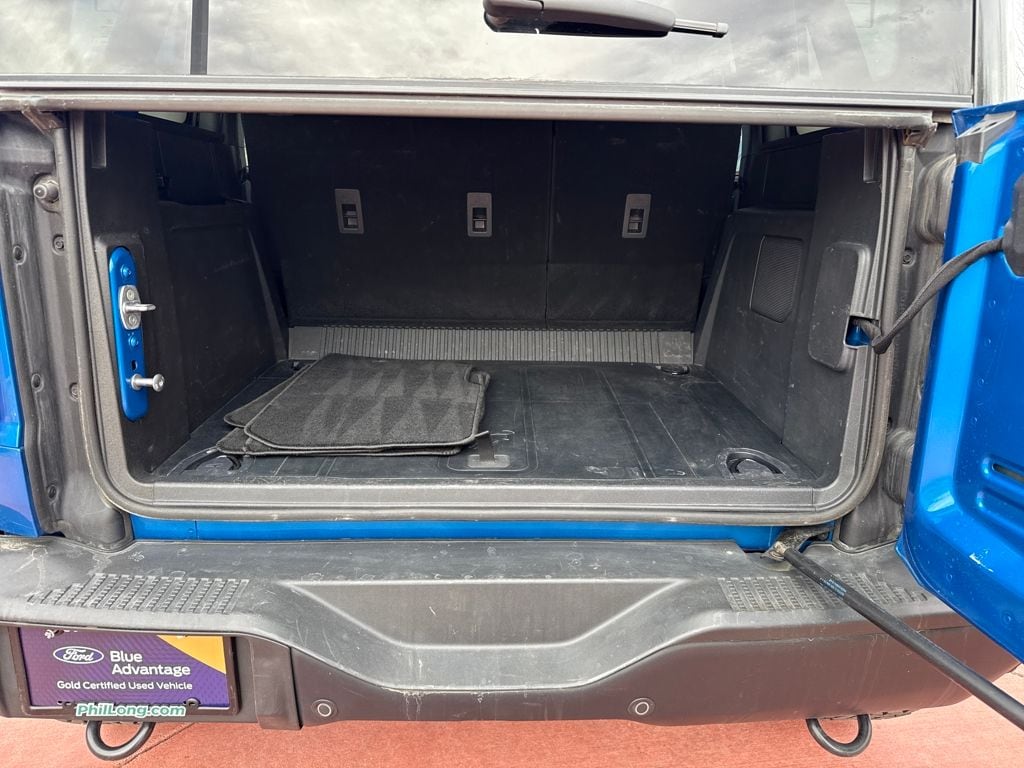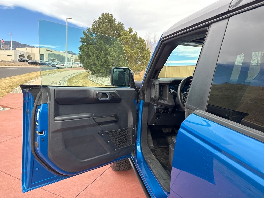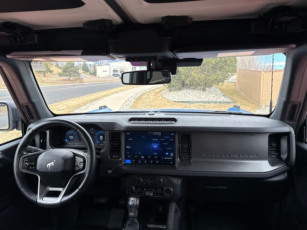 Equipment Group 332A Mid Package (2-Door Intelligent Access w/Lock/Unlock, Ambient Footwell Lighting, Connected Navigation, Dr & Pass Illuminated Sliding Visor Vanity Mirrors, Dual Smart Charging USB Ports, Dual-Zone Electronic Automatic Temperature Control, Front Row Heated Seats, Power Outlet - Back Side of Center Floor Console, and Rear Parking Sensors), 4.7 Axle Ratio, 7 Speakers, Air Conditioning, Alloy wheels, AM/FM radio: SiriusXM with 360L, AM/FM Stereo, Auto High-Beam Headlamps, Auto High-beam Headlights, Auto-dimming Rear-View mirror, BLIS Blind Spot Information System, Brake assist, Compass, Delay-off headlights, Driver door bin, Driver vanity mirror, Electronic Stability Control, Exterior Parking Camera Rear, Front Bucket Seats, Front Center Armrest, Front fog lights, Front reading lights, Fully automatic headlights, Hard Top Sound Deadening Headliner, Heated door mirrors, Heated front seats, Heated steering wheel, Illuminated entry, Internet access capable: FordPass Connect, Lane-Keeping System, Leather Shift Knob, Marine Grade Vinyl Heated Bucket Seats, Outside temperature display, Overhead console, Panic alarm, Passenger door bin, Passenger vanity mirror, Power door mirrors, Power steering, Power windows, Pre-Collision Assist w/Automatic Emergency Braking, Radio data system, Rear-View Camera, Rear-Window Defroster & Washer, Remote keyless entry, Security system, Shadow Black Painted Hard Top, SiriusXM w/360L, Speed control, Split folding rear seat, Steering wheel mounted audio controls, SYNC 4, Tachometer, Telescoping steering wheel, Tilt steering whee