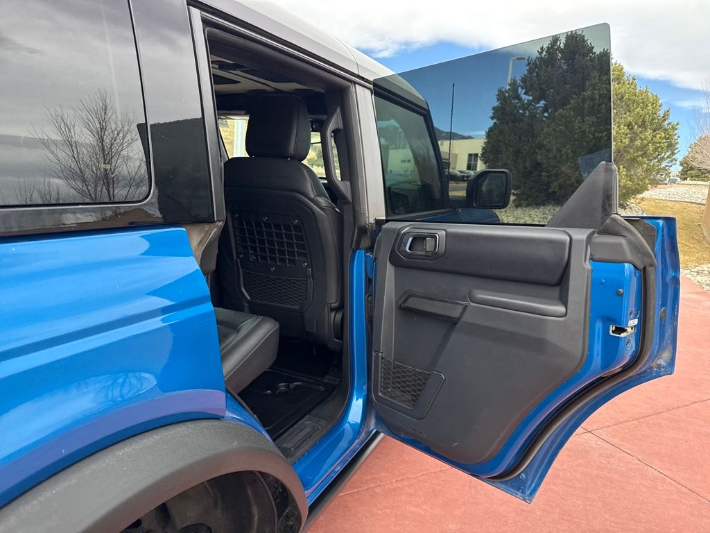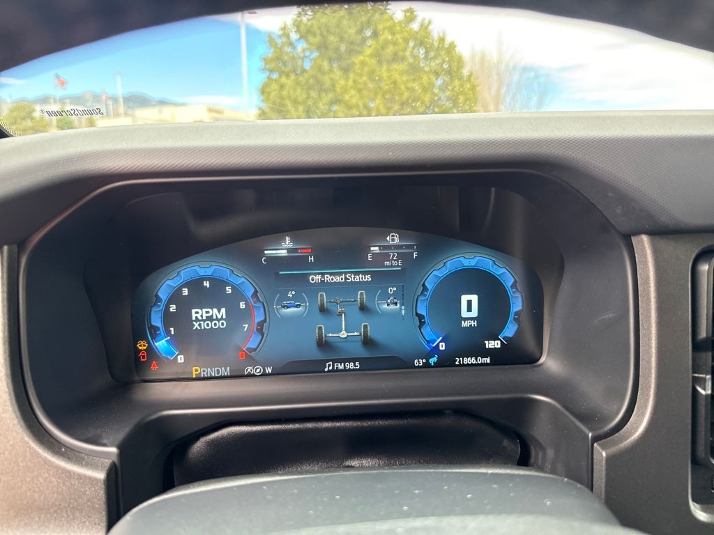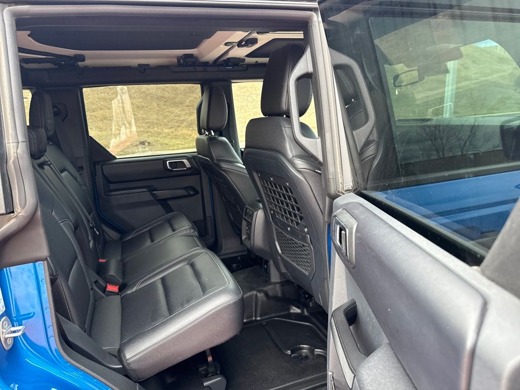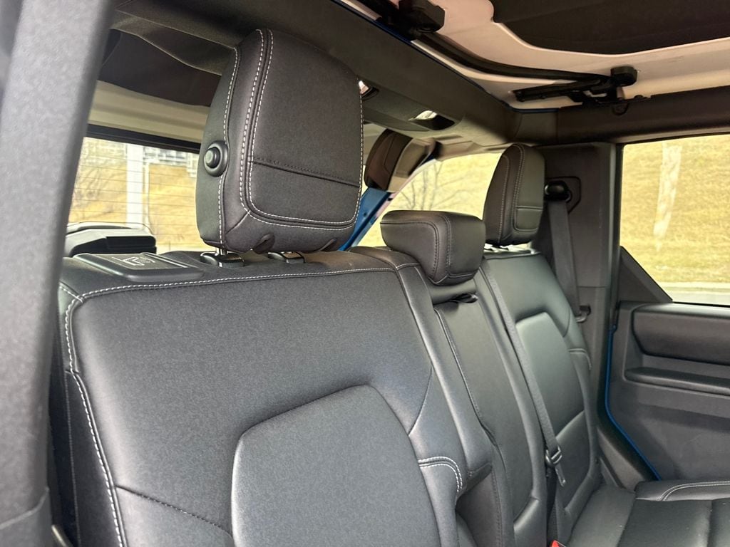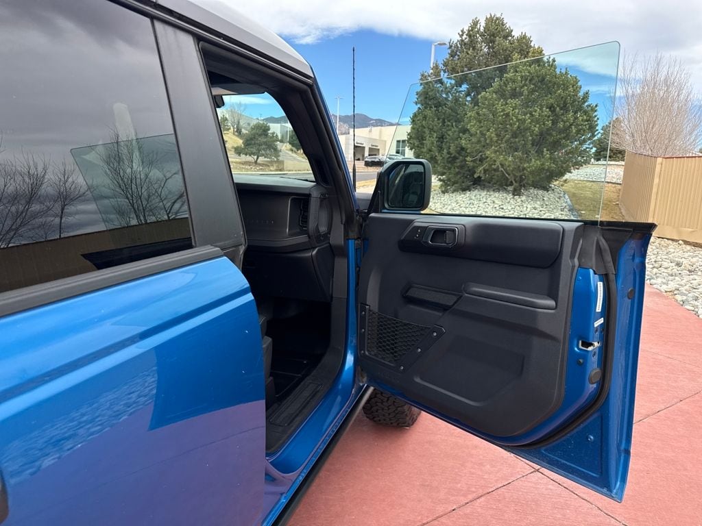 Equipment Group 332A Mid Package (2-Door Intelligent Access w/Lock/Unlock, Ambient Footwell Lighting, Connected Navigation, Dr & Pass Illuminated Sliding Visor Vanity Mirrors, Dual Smart Charging USB Ports, Dual-Zone Electronic Automatic Temperature Control, Front Row Heated Seats, Power Outlet - Back Side of Center Floor Console, and Rear Parking Sensors), 4.7 Axle Ratio, 7 Speakers, Air Conditioning, Alloy wheels, AM/FM radio: SiriusXM with 360L, AM/FM Stereo, Auto High-Beam Headlamps, Auto High-beam Headlights, Auto-dimming Rear-View mirror, BLIS Blind Spot Information System, Brake assist, Compass, Delay-off headlights, Driver door bin, Driver vanity mirror, Electronic Stability Control, Exterior Parking Camera Rear, Front Bucket Seats, Front Center Armrest, Front fog lights, Front reading lights, Fully automatic headlights, Hard Top Sound Deadening Headliner, Heated door mirrors, Heated front seats, Heated steering wheel, Illuminated entry, Internet access capable: FordPass Connect, Lane-Keeping System, Leather Shift Knob, Marine Grade Vinyl Heated Bucket Seats, Outside temperature display, Overhead console, Panic alarm, Passenger door bin, Passenger vanity mirror, Power door mirrors, Power steering, Power windows, Pre-Collision Assist w/Automatic Emergency Braking, Radio data system, Rear-View Camera, Rear-Window Defroster & Washer, Remote keyless entry, Security system, Shadow Black Painted Hard Top, SiriusXM w/360L, Speed control, Split folding rear seat, Steering wheel mounted audio controls, SYNC 4, Tachometer, Telescoping steering wheel, Tilt steering whee