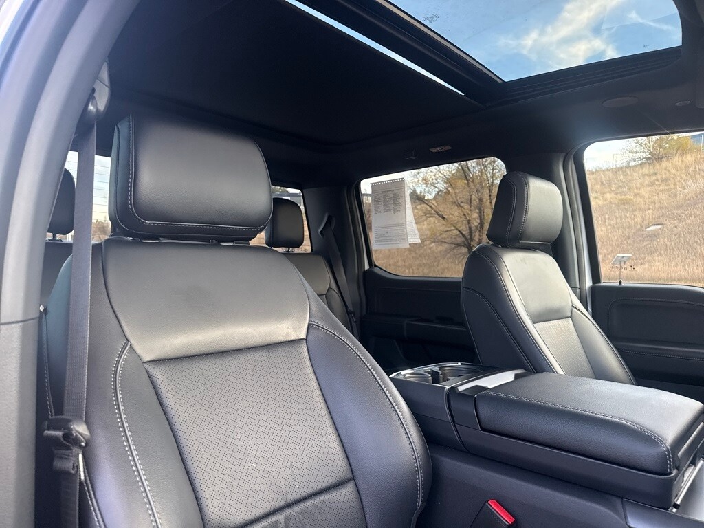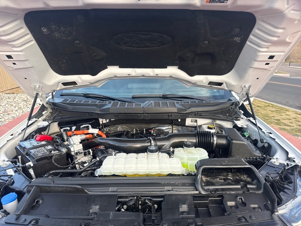 3.5L PowerBoost Full-Hybrid V6, 4WD, 3.31 Axle Ratio, 4-Wheel Disc Brakes, 8 Speakers, ABS brakes, ActiveX Trimmed Bucket Seats, Adjustable pedals, Air Conditioning, Alloy wheels, AM/FM radio: SiriusXM with 360L, Auto High-beam Headlights, Auto-dimming door mirrors, Auto-dimming Rear-View mirror, Automatic temperature control, Brake assist, Bumpers: chrome, Chrome wheels, Compass, Delay-off headlights, Driver door bin, Driver vanity mirror, Dual front impact airbags, Dual front side impact airbags, Electronic Stability Control, Emergency communication system: SYNC 4 911 Assist, Front anti-roll bar, Front Bucket Seats, Front Center Armrest, Front dual zone A/C, Front fog lights, Front reading lights, Front wheel independent suspension, Fully automatic headlights, Garage door transmitter, Heated door mirrors, Heated front seats, Heated steering wheel, Illuminated entry, Low tire pressure warning, Memory seat, Navigation system: Connected Navigation, Occupant sensing airbag, Outside temperature display, Overhead airbag, Overhead console, Panic alarm, Passenger door bin, Passenger vanity mirror, Pedal memory, Power door mirrors, Power driver seat, Power passenger seat, Power steering, Power windows, Radio data system, Radio: B&O Sound System by Bang & Olufsen, Rain sensing wipers, Rear reading lights, Rear seat center armrest, Rear step bumper, Rear window defroster, Remote keyless entry, Security system, Speed control, Split folding rear seat, Steering wheel mounted audio controls, SYNC 4 w/Enhanced Voice Recognition, Tachometer, Telescoping steering wheel, Tilt steering wheel, Traction control, Trip computer, Turn signal indicator mirrors, Variably intermittent wipers, Ventilated front seats, Voltmeter, and Wheels: 18" Chrome-Like PVD.
