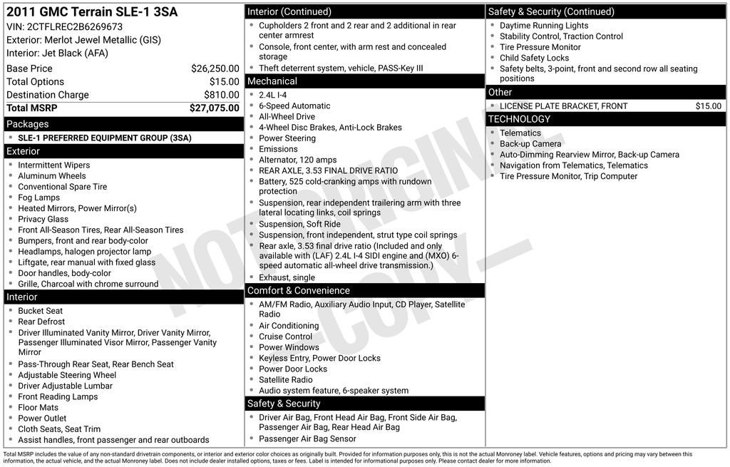 Odometer is 52549 miles below market average! Merlot Jewel Metallic 2011 GMC Terrain SLE-1 AWD 6-Speed Automatic 2.4L 4-Cylinder SIDI DOHC VVT 20/29 City/Highway MPG