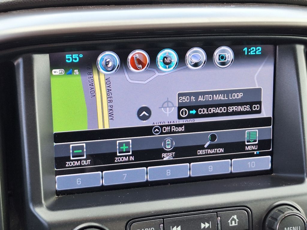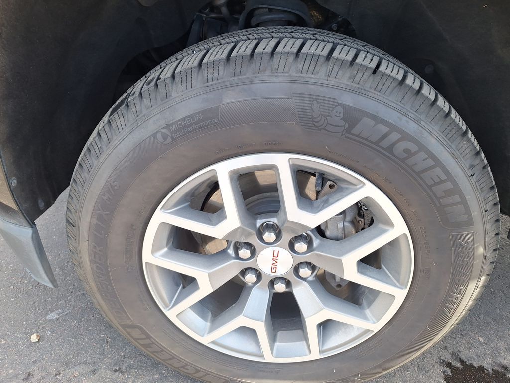 Trailering Package, 4WD, 3.42 Rear Axle Ratio, 4-Way Power Front Passenger Seat Adjuster, 4-Wheel Disc Brakes, 6 Speakers, ABS brakes, Air Conditioning, Alloy wheels, AM/FM radio: SiriusXM, Auto-dimming Rear-View mirror, Automatic temperature control, Black Spray-On Bedliner w/GMC Logo, Bose Premium 7-Speaker Audio System Feature, Bumpers: body-color, Compass, Delay-off headlights, Driver 4-Way Power Seat Adjuster, Driver door bin, Driver vanity mirror, Dual front impact airbags, Dual front side impact airbags, Electronic Stability Control, Exterior Parking Camera Rear, Front anti-roll bar, Front Bucket Seats, Front Center Armrest, Front fog lights, Front License Plate Kit, Front reading lights, Front wheel independent suspension, Fully automatic headlights, Heated door mirrors, Heated Driver & Front Passenger Seats, Heated front seats, Illuminated entry, Leather-Appointed Seat Trim, Low tire pressure warning, Occupant sensing airbag, Outside temperature display, Overhead airbag, Overhead console, Panic alarm, Passenger door bin, Passenger vanity mirror, Power door mirrors, Power Driver Lumbar Control Seat Adjuster, Power driver seat, Power Passenger Lumbar Control Seat Adjuster, Power passenger seat, Power steering, Power windows, Premium audio system: GMC Infotainment System, Radio data system, Radio: AM/FM Stereo w/8" Color Touch Navigation, Radio: AM/FM Stereo w/8" Color Touch Screen, Rear reading lights, Rear seat center armrest, Rear step bumper, Rear window defroster, Remote keyless entry, Security system, SiriusXM Satellite Radio, Speed control, Speed-sensing steering, Steering wheel mounted audio controls, Tachometer, Telescoping steering wheel, Tilt steering wheel, Tow/Haul Mode, Traction control, Trailering Assist Guideline Hitch Guidance, Trip computer, and Variably intermittent wipers.